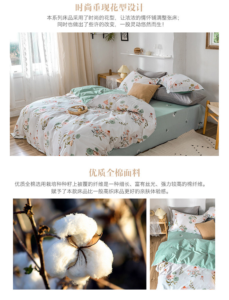 窝米 2020春夏新品全棉13372四件套小波西风系列小花花,小花花