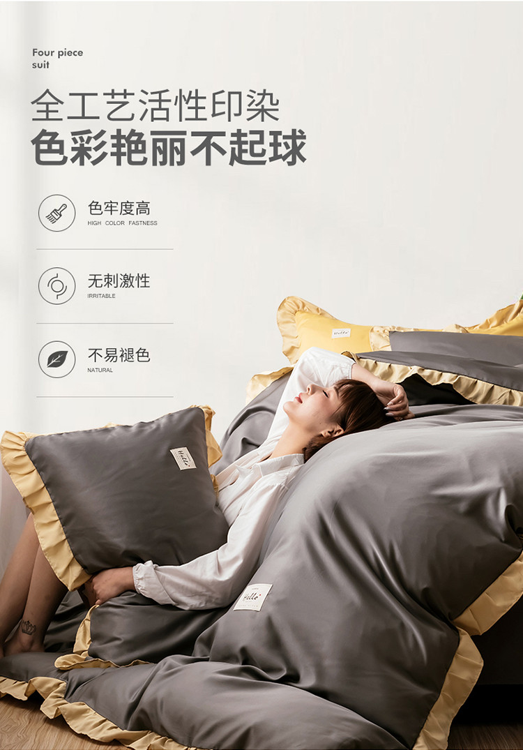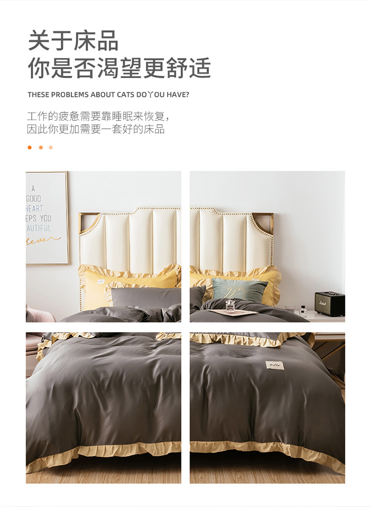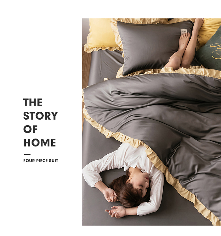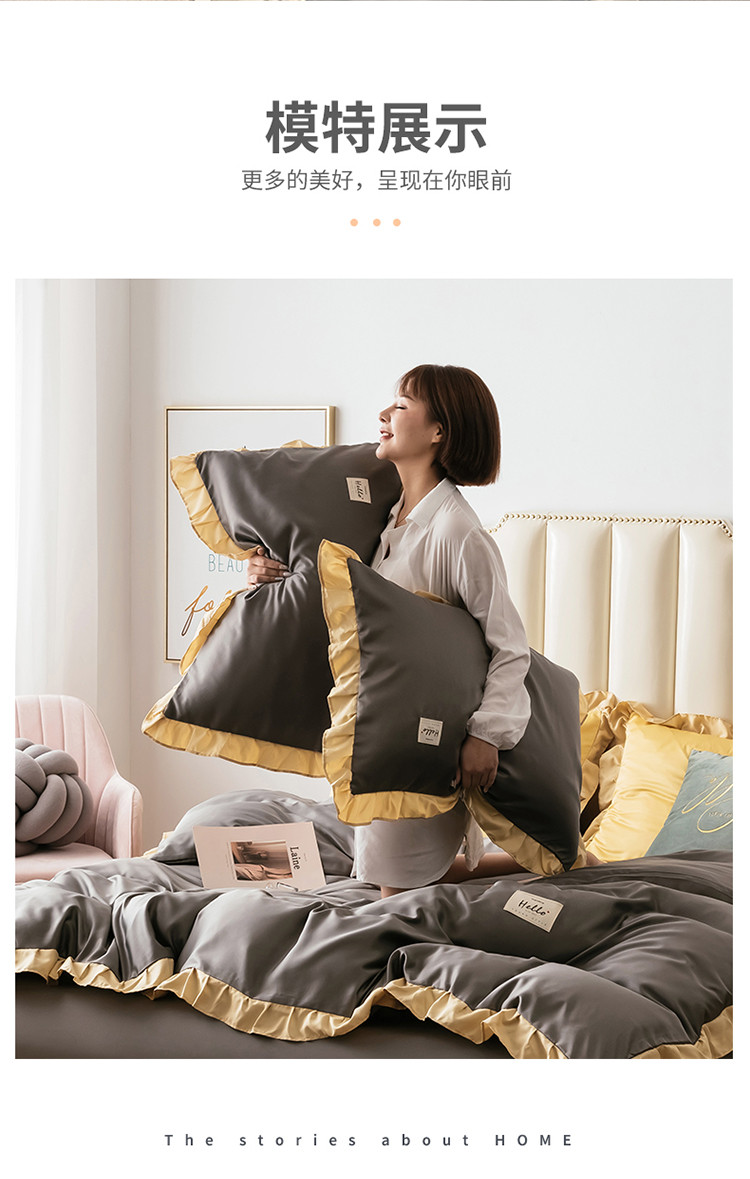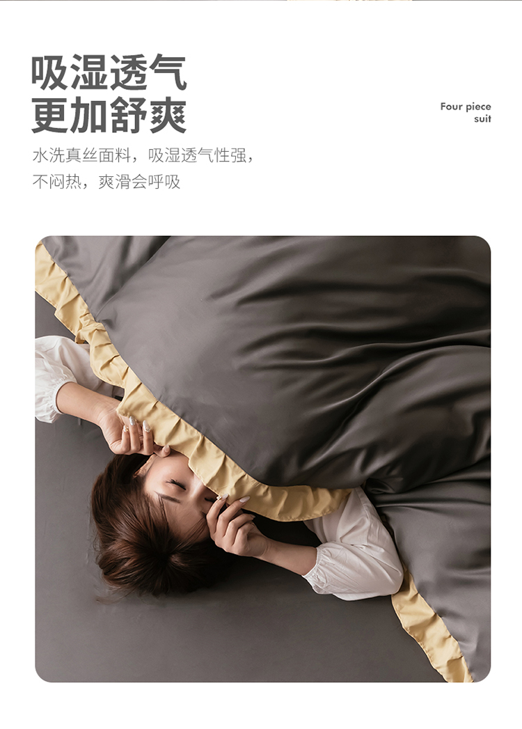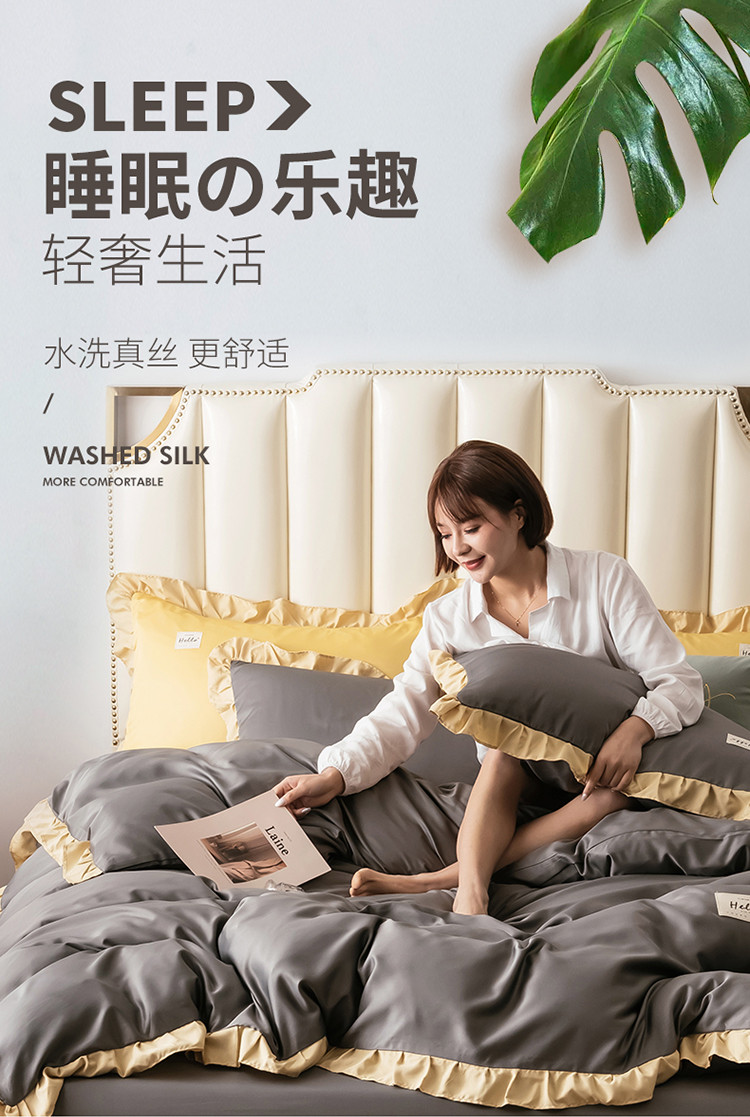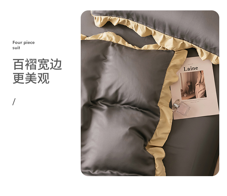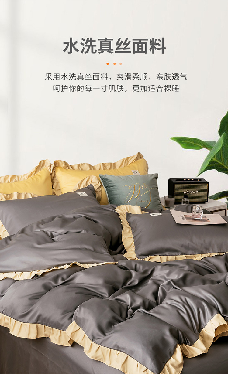 商品名称:芃成 2020新款水洗真丝库里南花边四件套 库里南-深灰