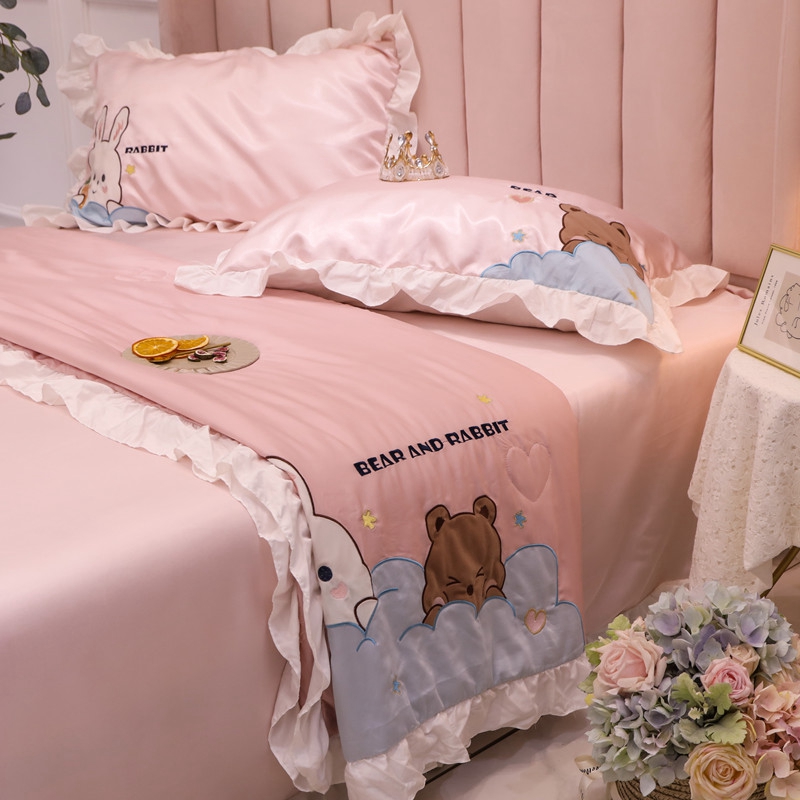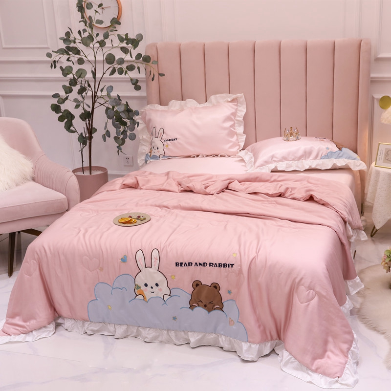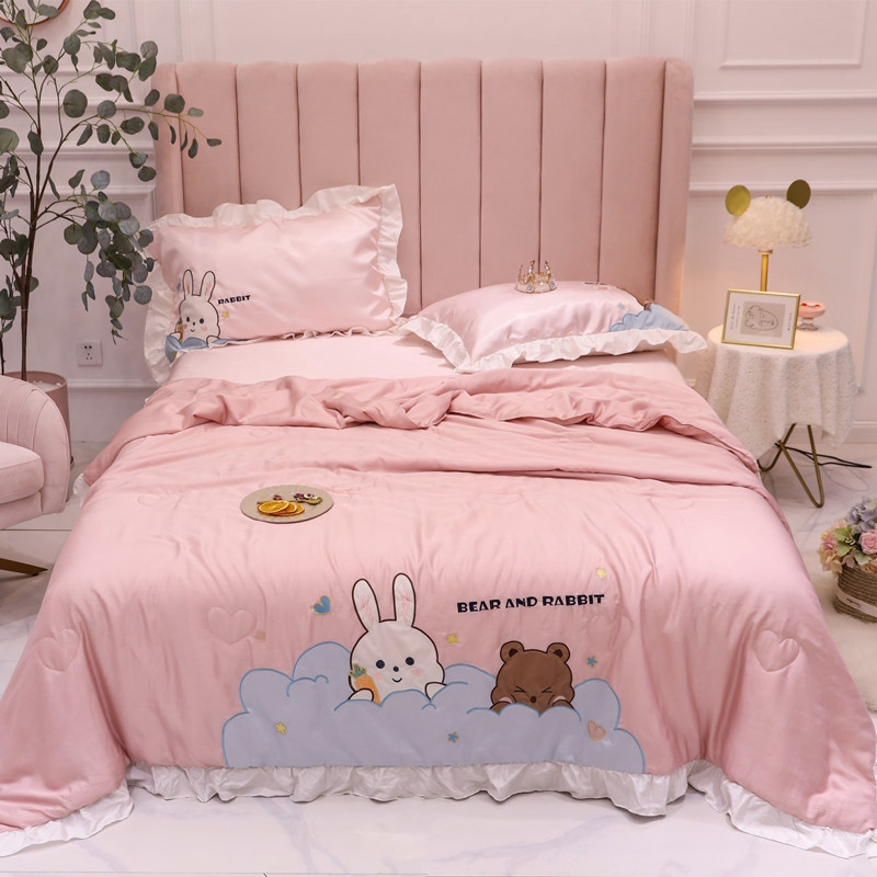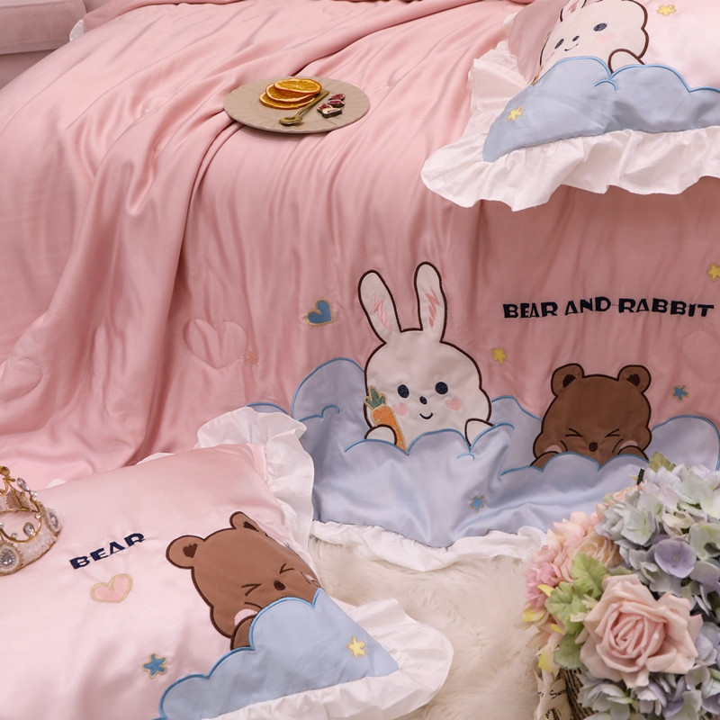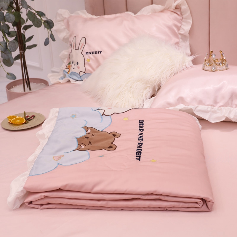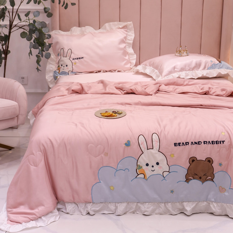 商品名称:星野 2020新款夏被凉席三件套 小兔与小熊的故事粉