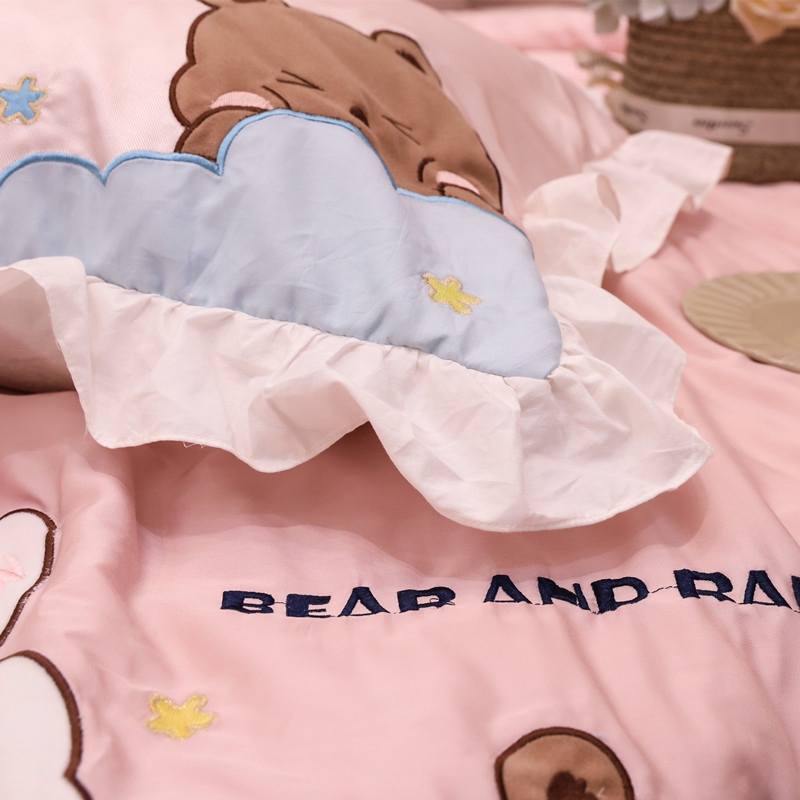(总)星野 2023新款40s水洗棉贴布绣四件套-多巴胺女孩,多巴胺女孩
