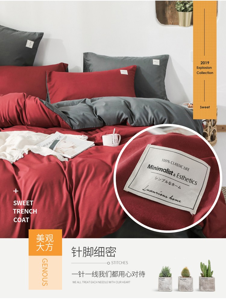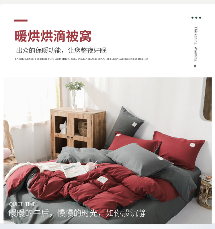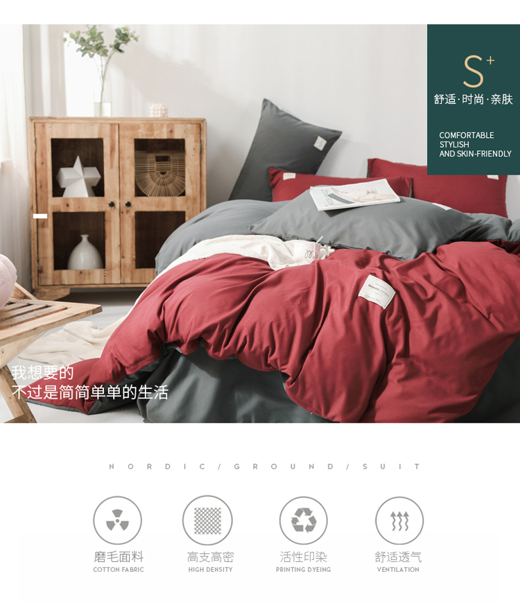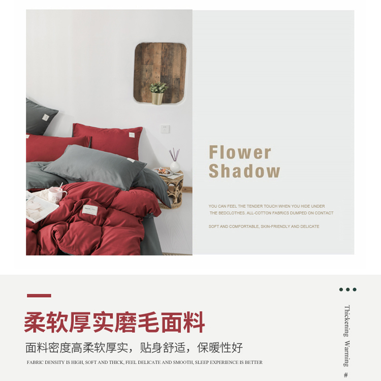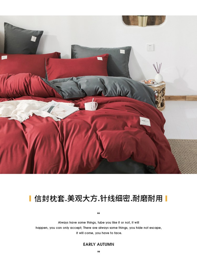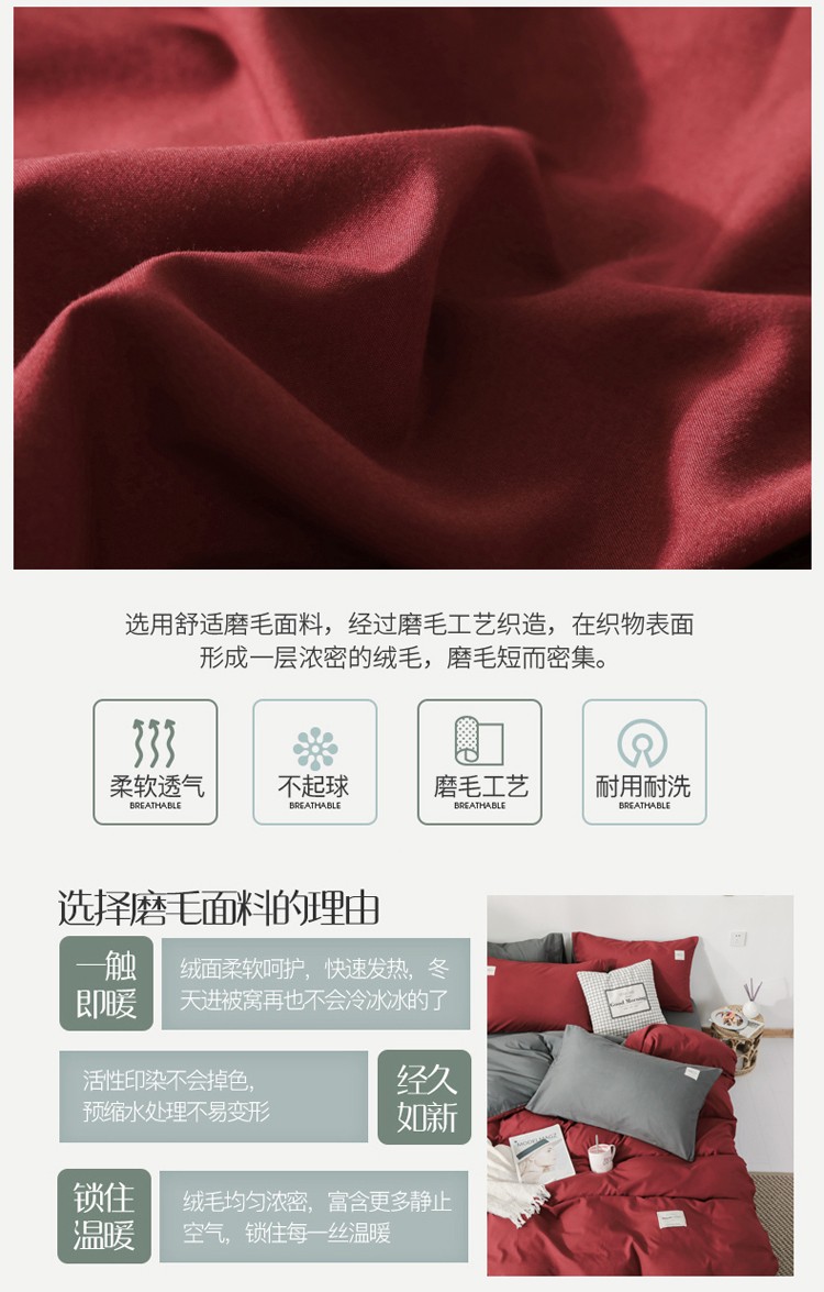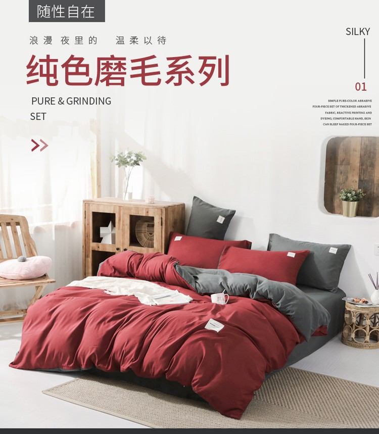 商品名称:米粒 2020新款纯色磨毛四件套 枣红+深灰