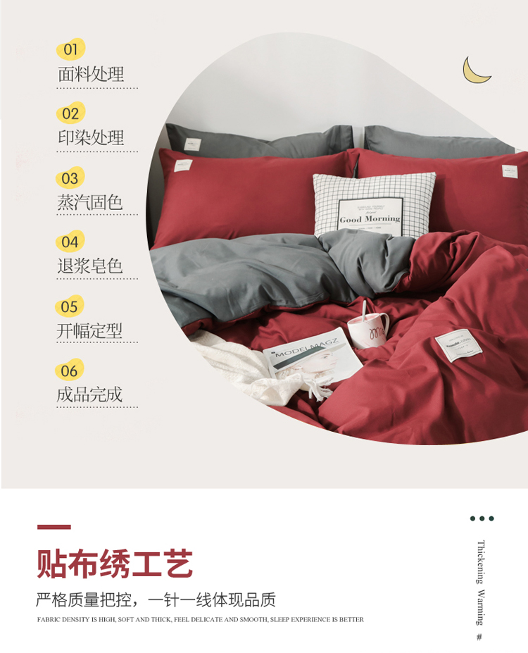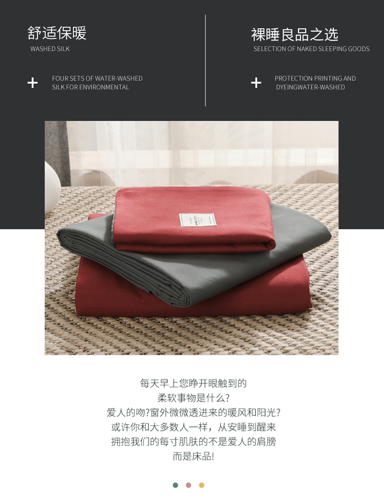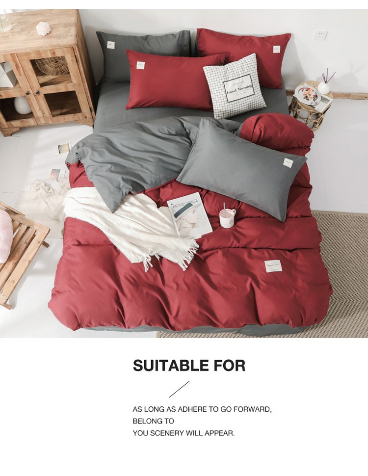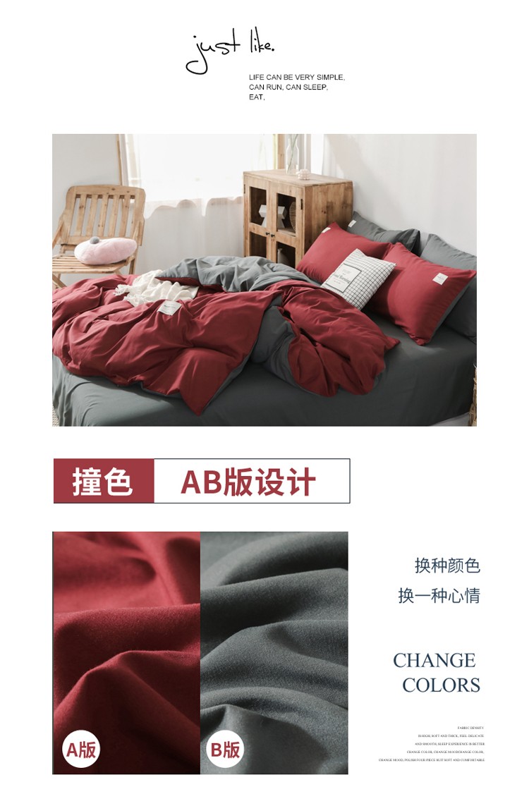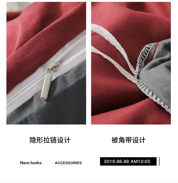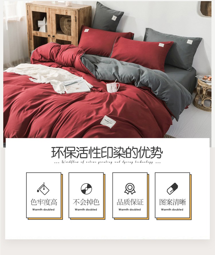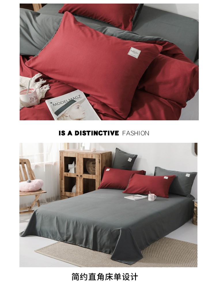 商品名称:米粒 2020新款纯色磨毛四件套 枣红+深灰