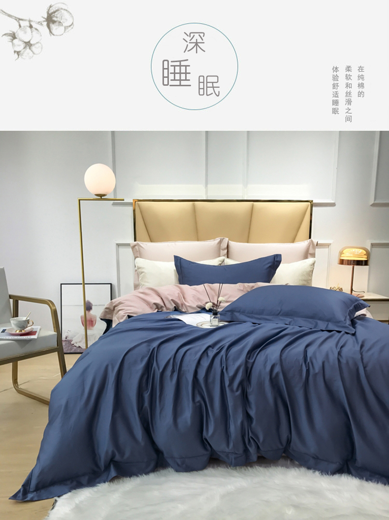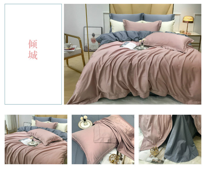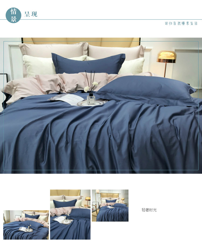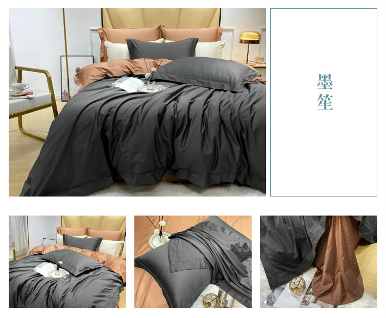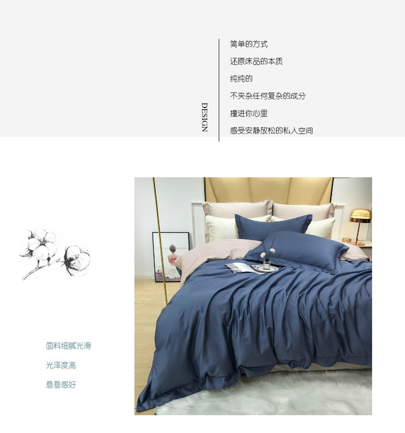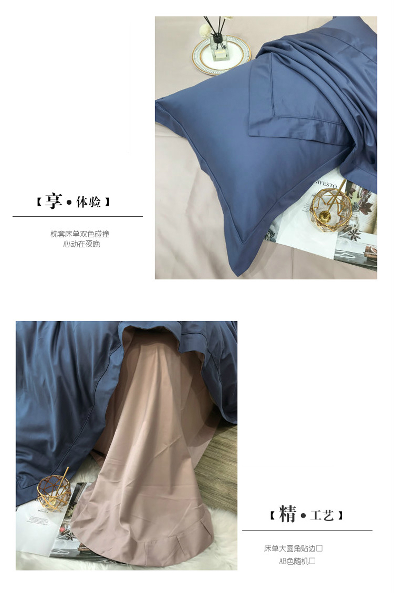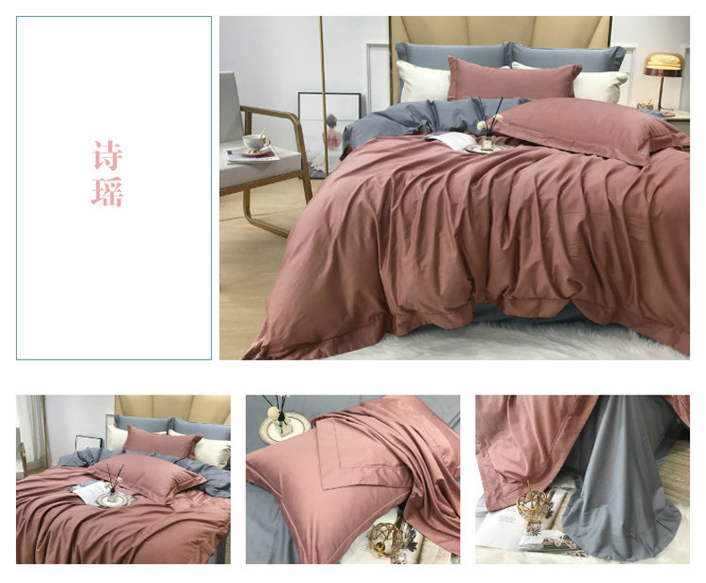 商品名称:十九色家纺 新款50*50撞色长绒棉高端埋线款全棉四件套 宸阑