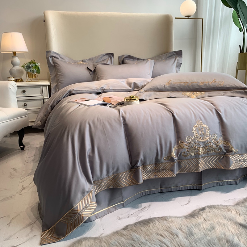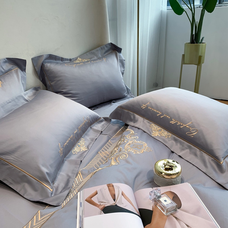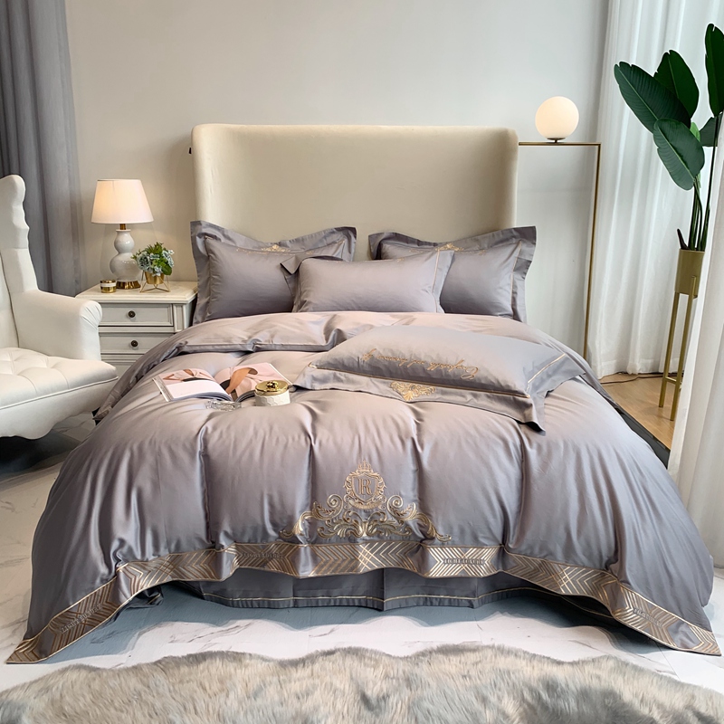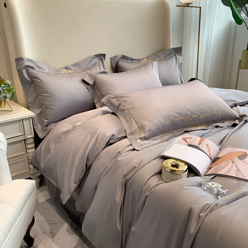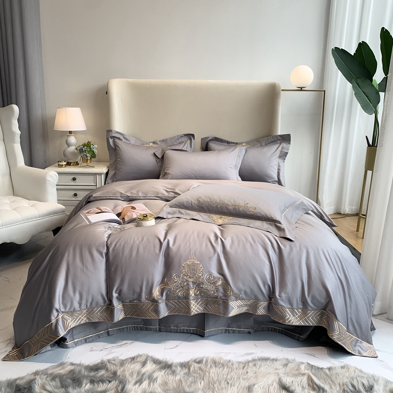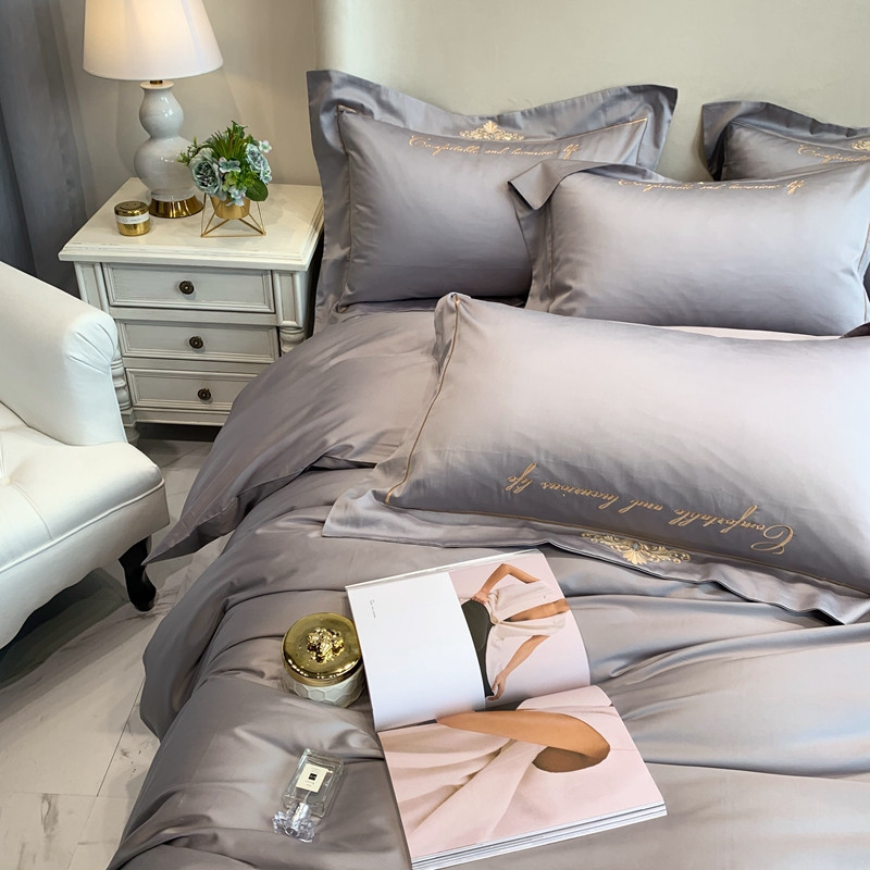 馨蕊家居 202160s双股埃及长绒棉维尼亚系列四件套高级灰