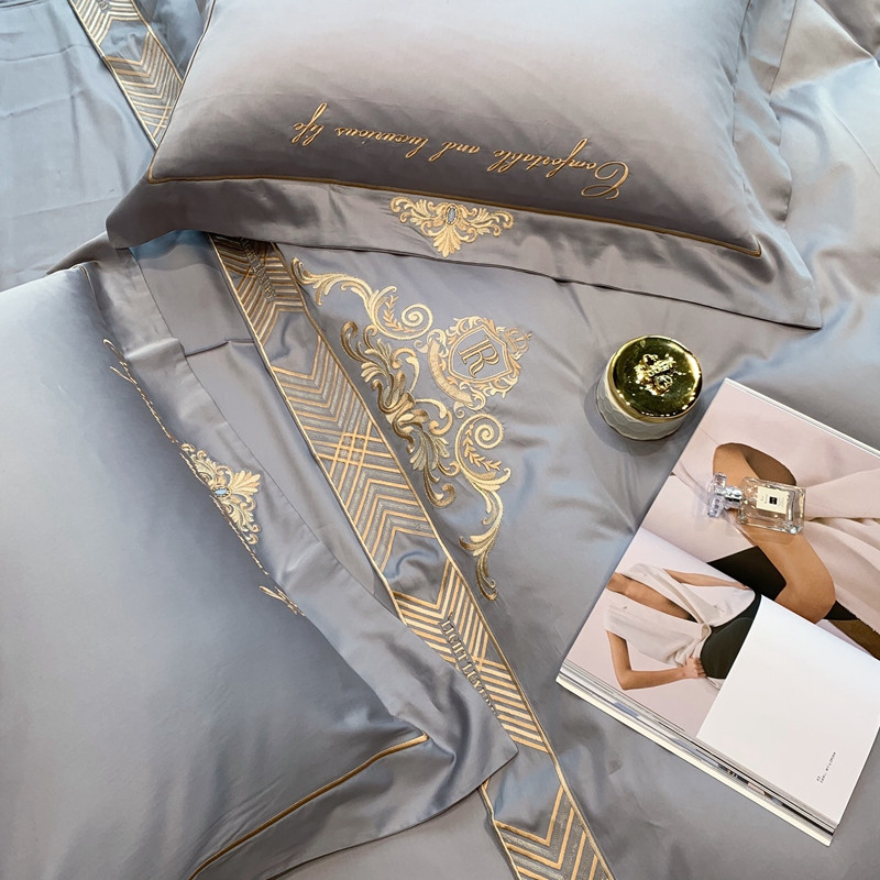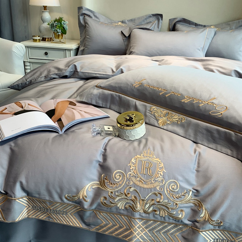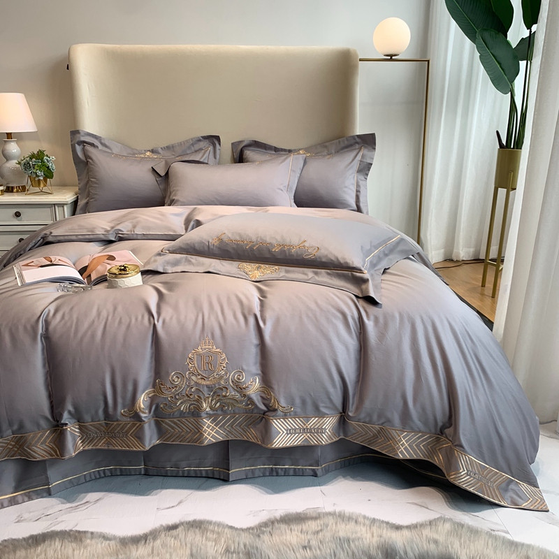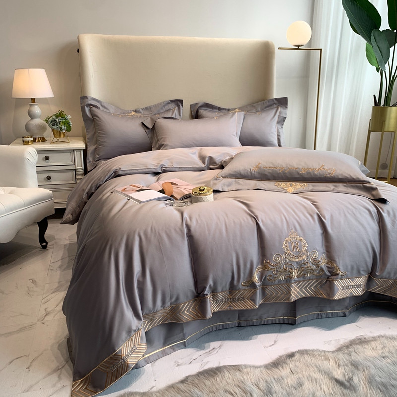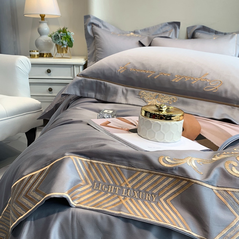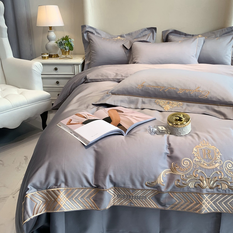 馨蕊家居 202160s双股埃及长绒棉维尼亚系列四件套高级灰