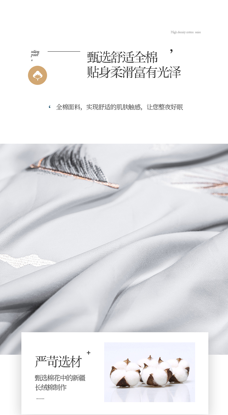 商品名称:骏腾 2022新款全棉羽毛绣花四件套 羽毛-银灰+深灰