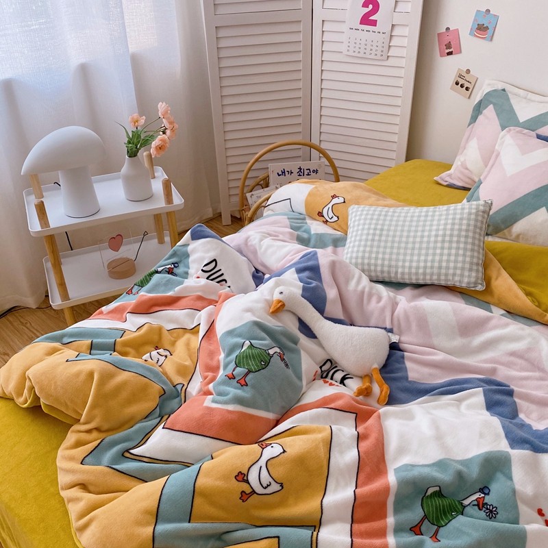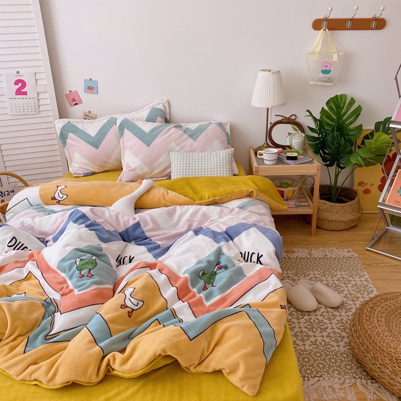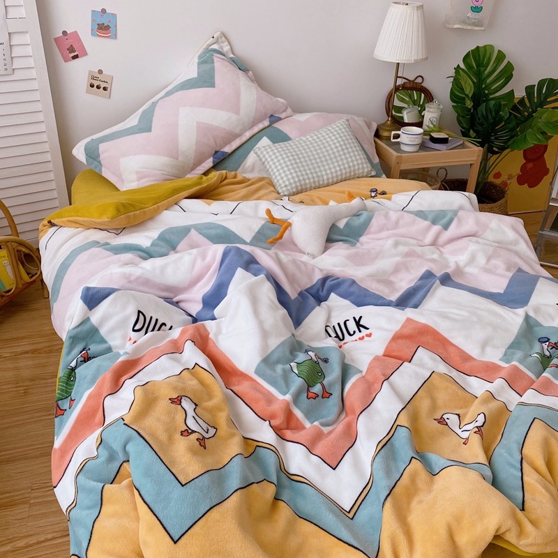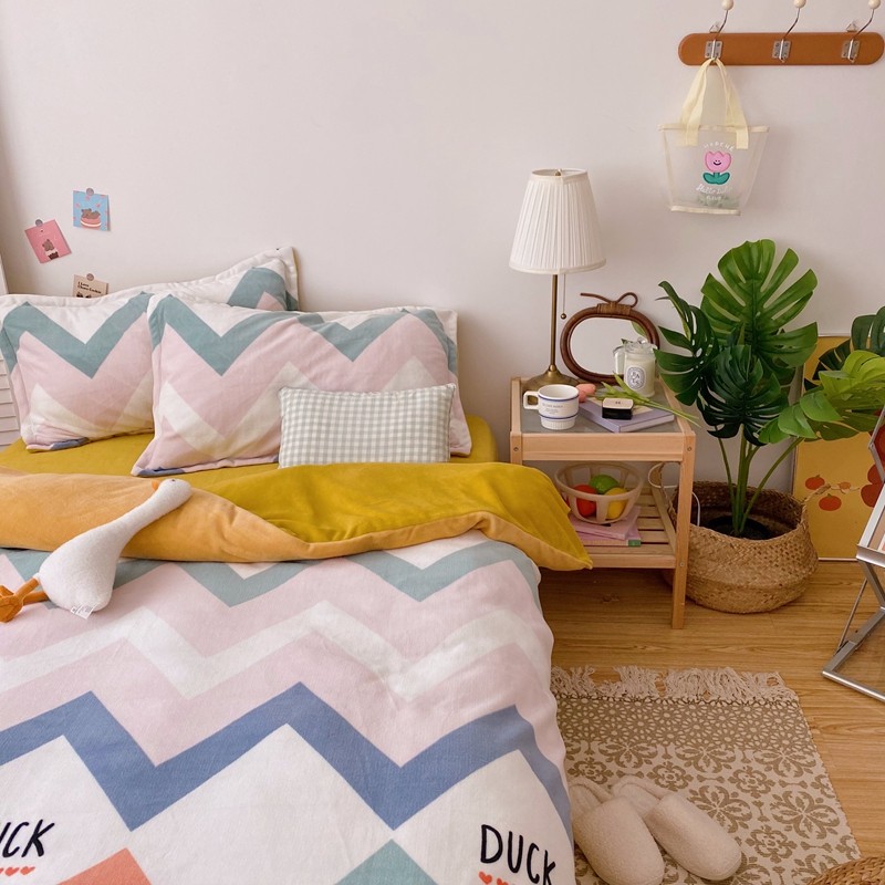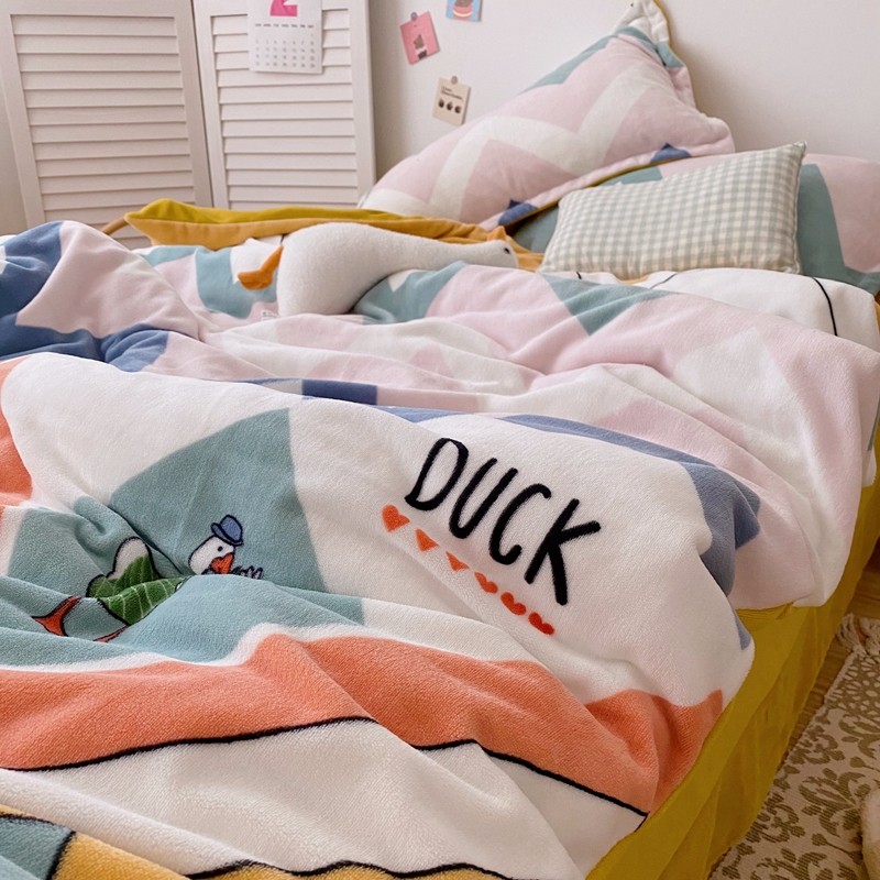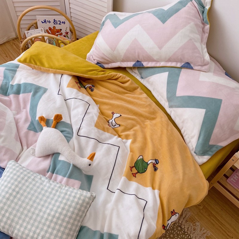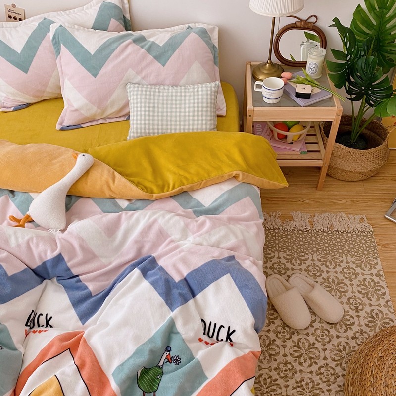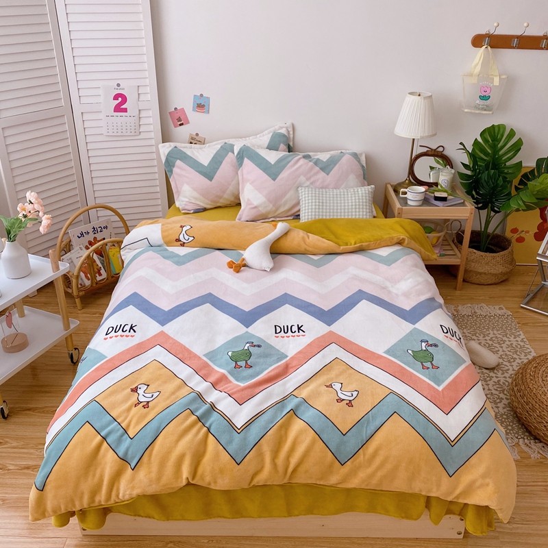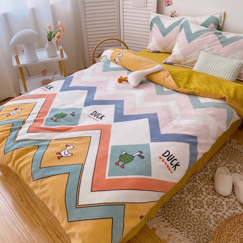 星期八 2020新款秋冬加厚保暖牛奶绒四件套 波浪小鸭