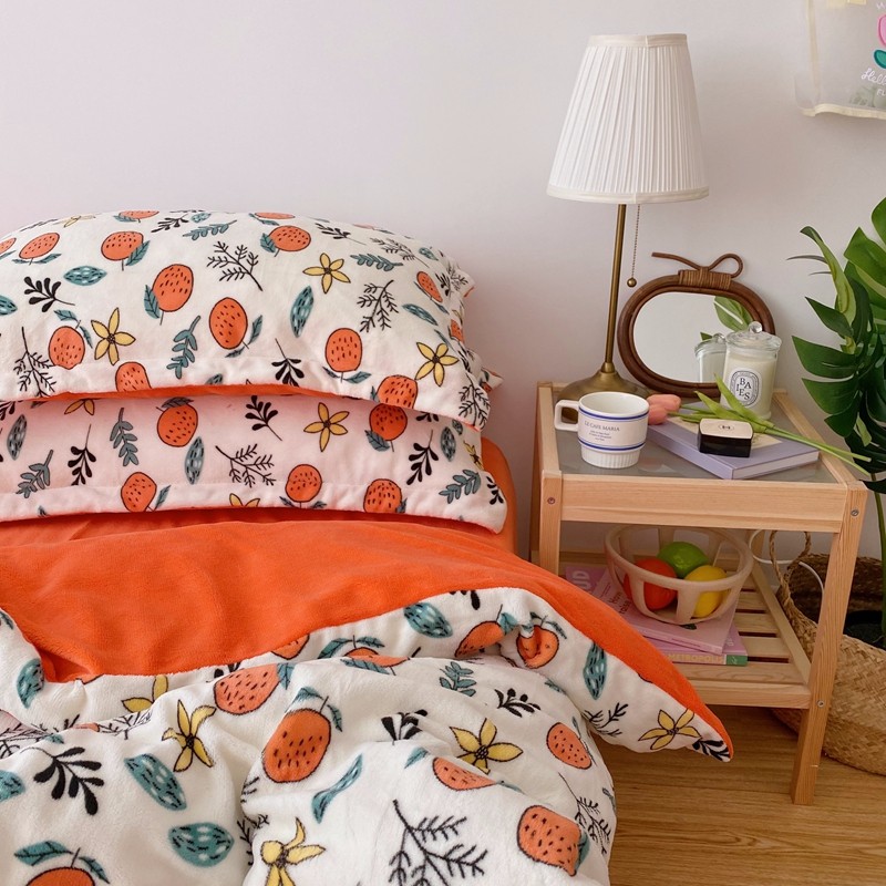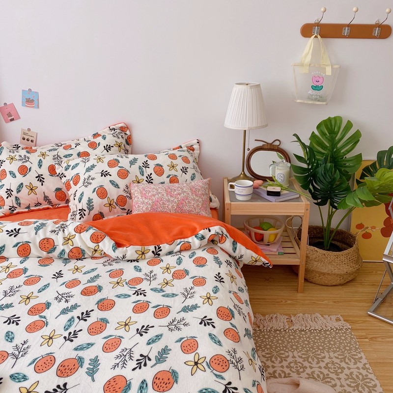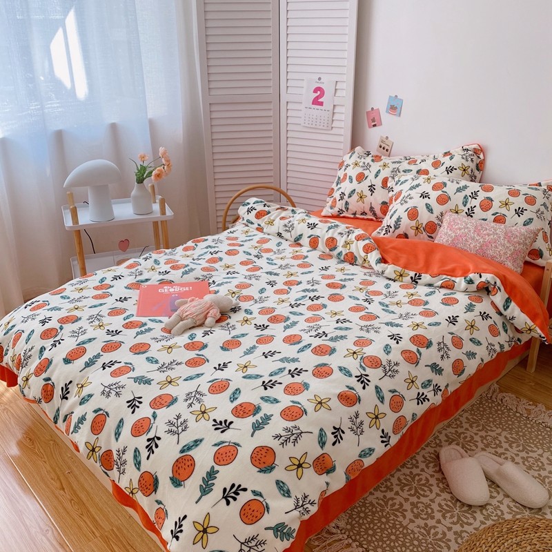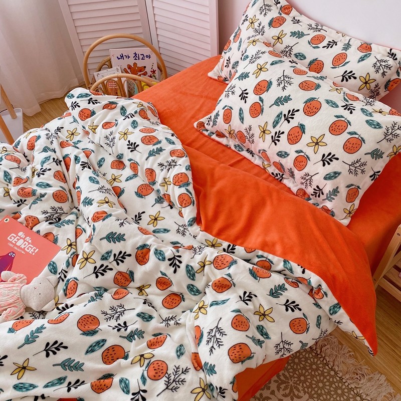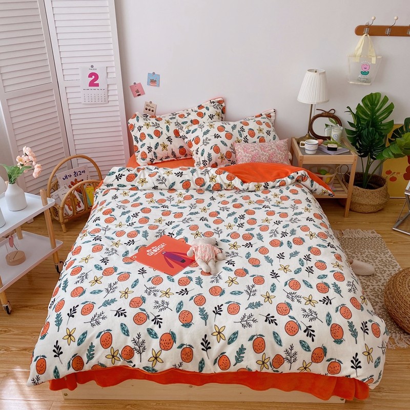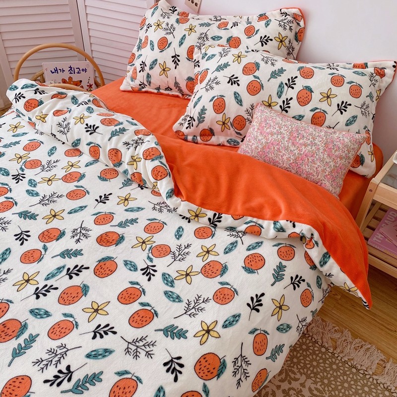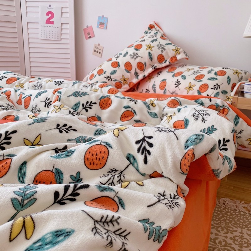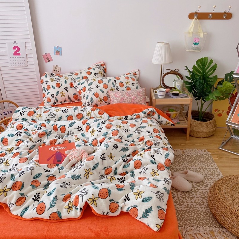 星期八 2020新款秋冬加厚保暖牛奶绒四件套 小橘子