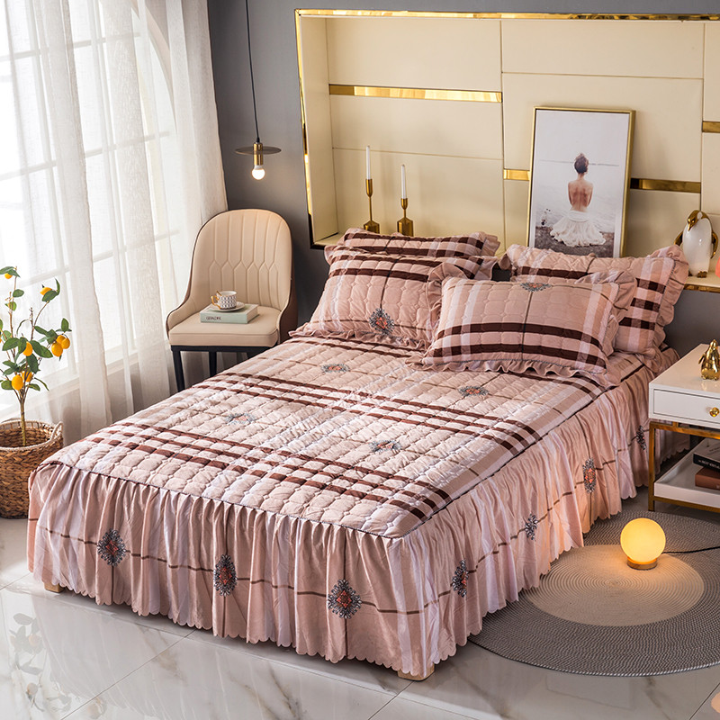 商品名称:纽缦 2020新款绒夹棉床裙四件套 花格子