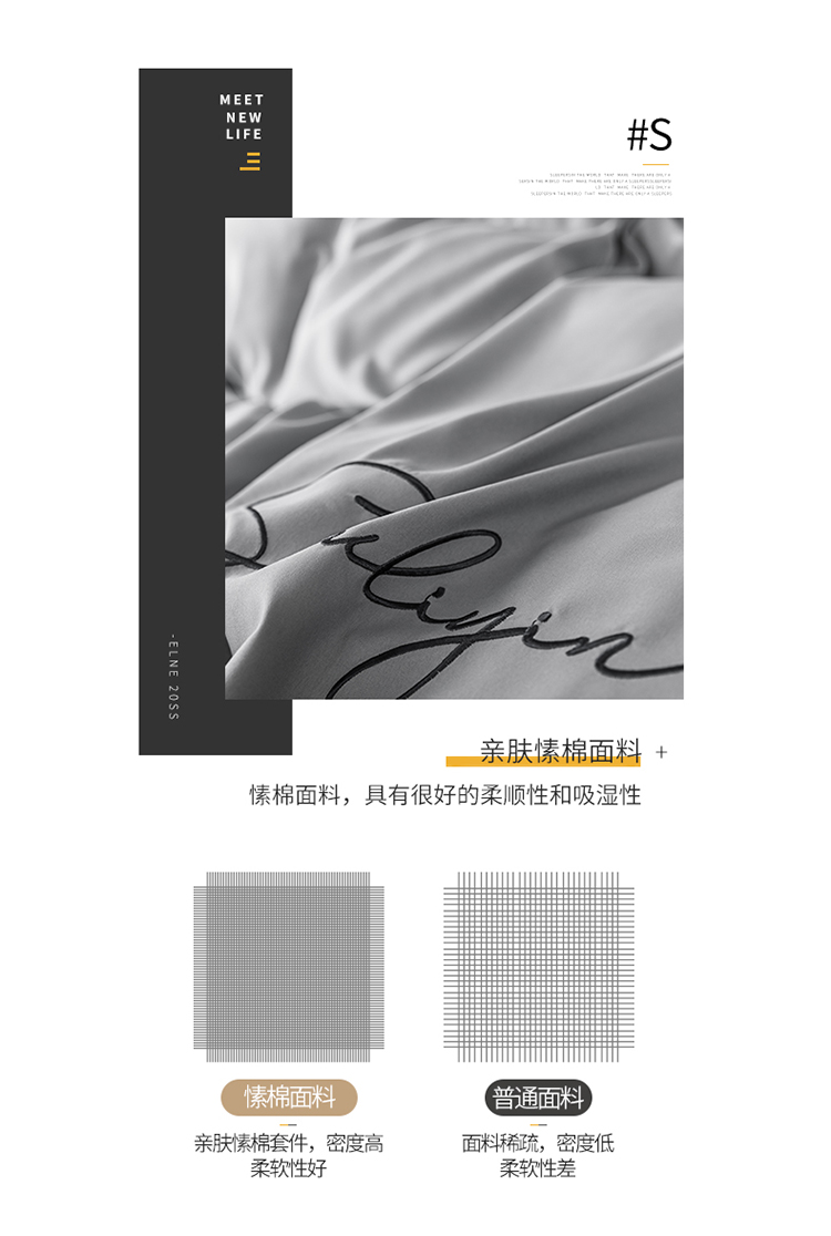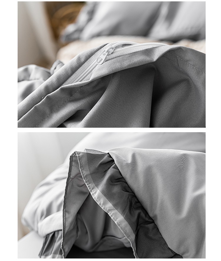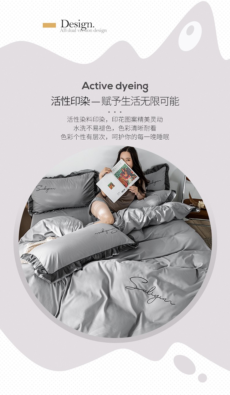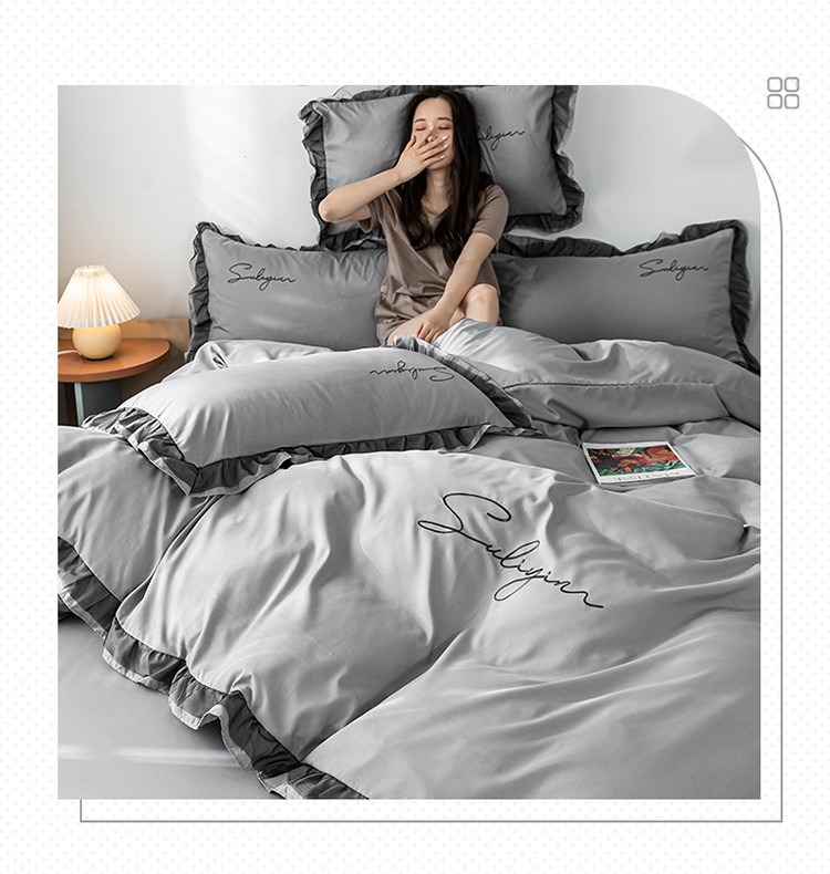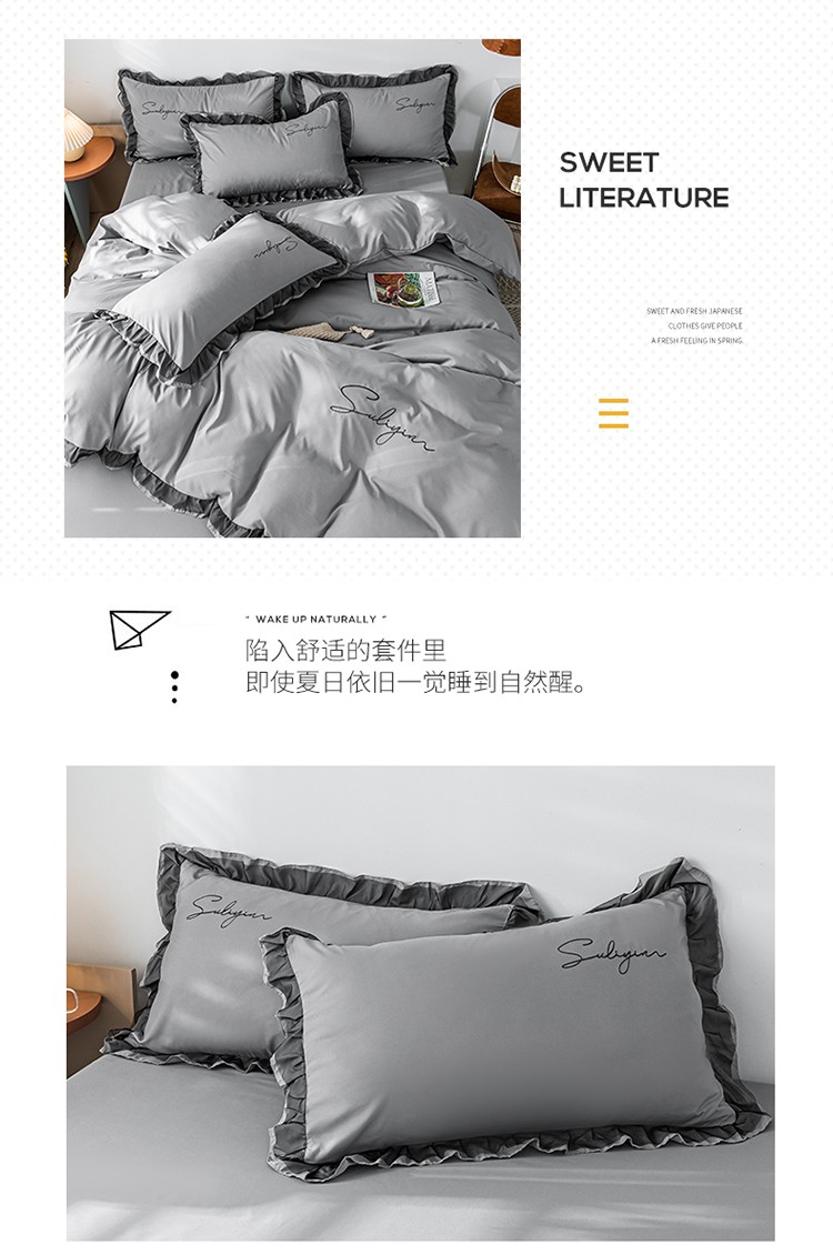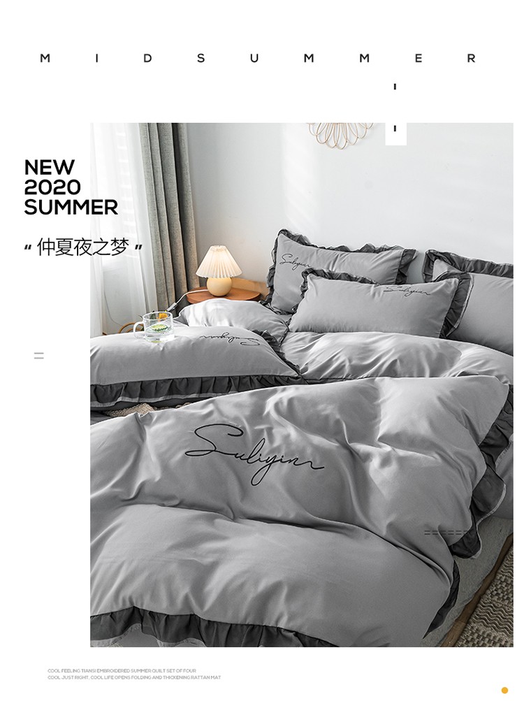 金麦家纺 2020新款愫棉刺绣蕾丝花边四件套 浅灰