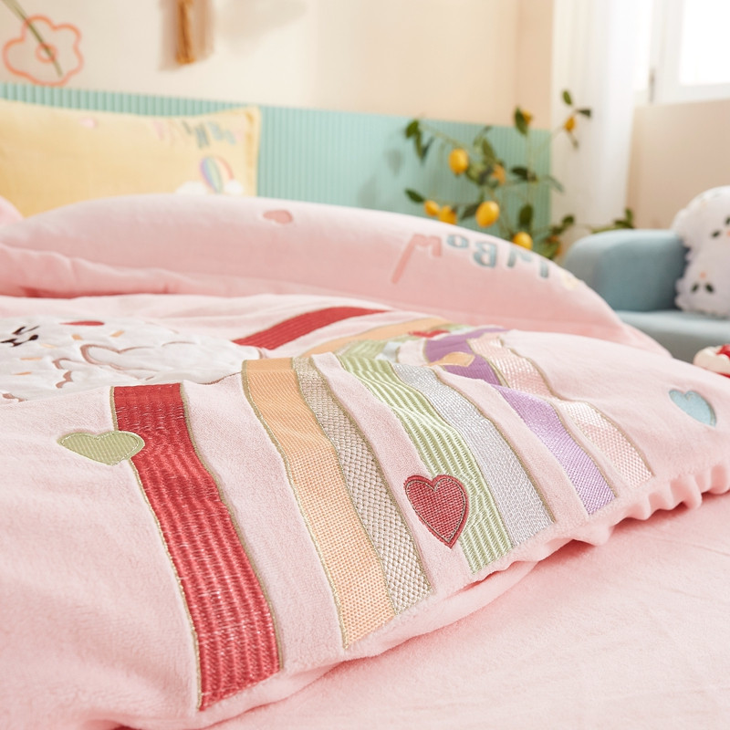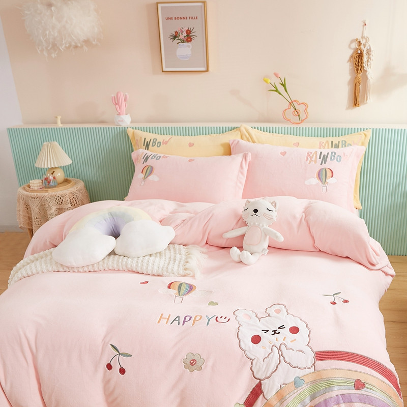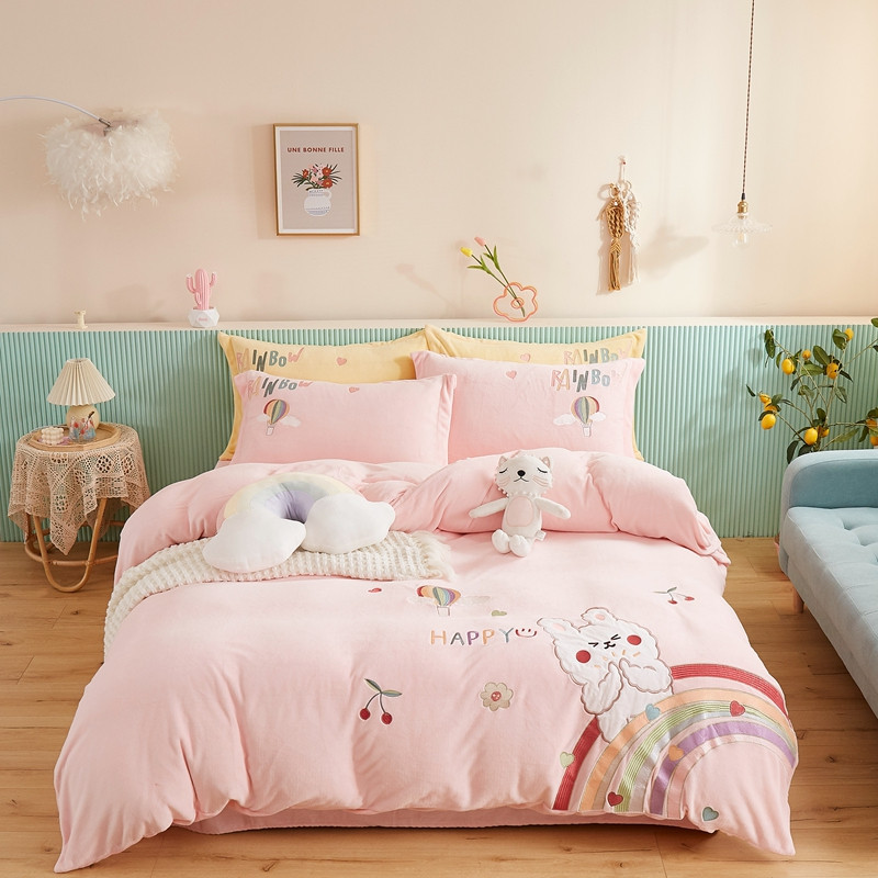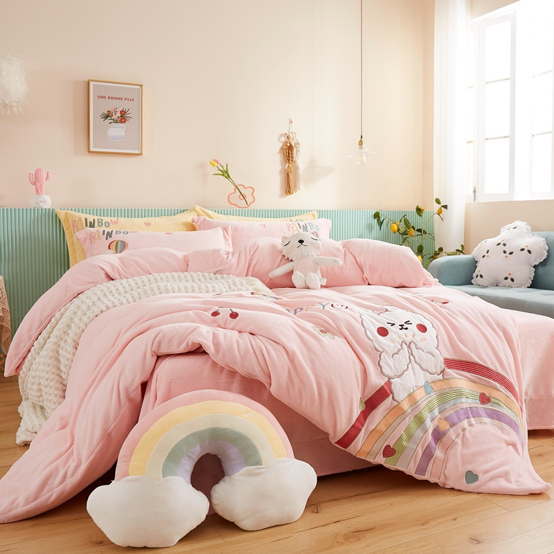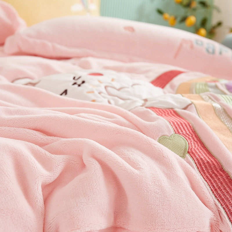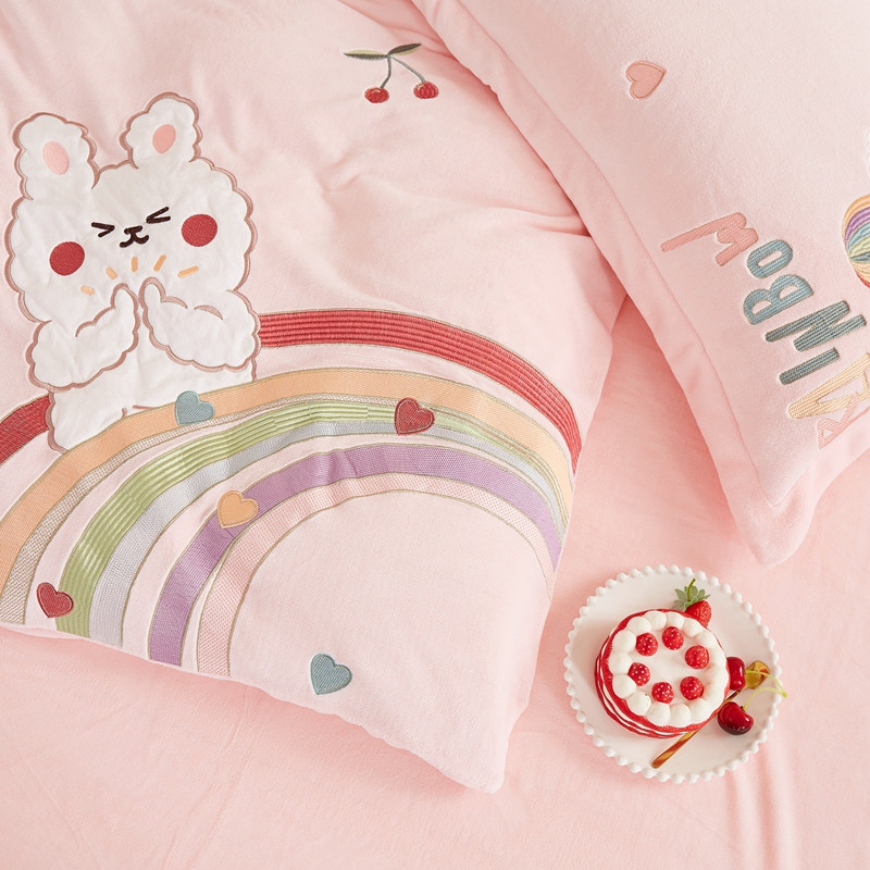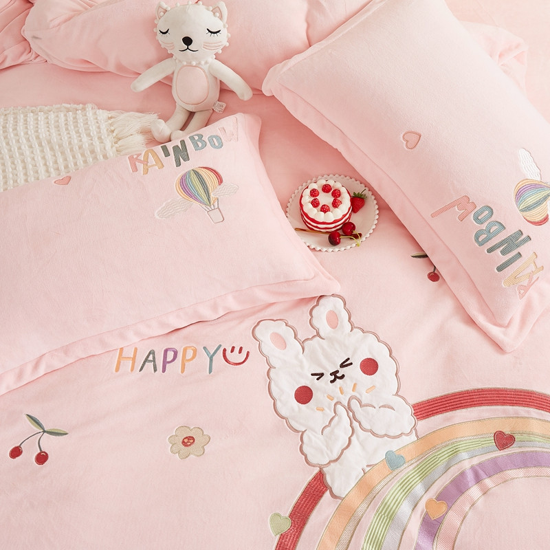 星尚家纺 2021新款牛奶绒宝宝绒四件套 萌小兔-粉玉