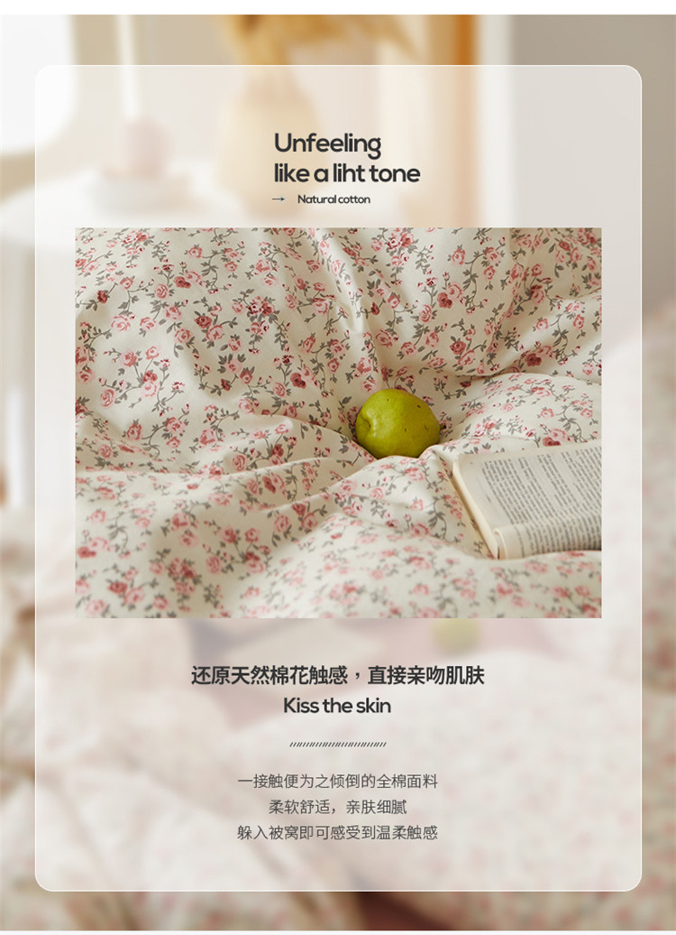 窝米 2021新款全棉四件套花卉系列 苏蕾