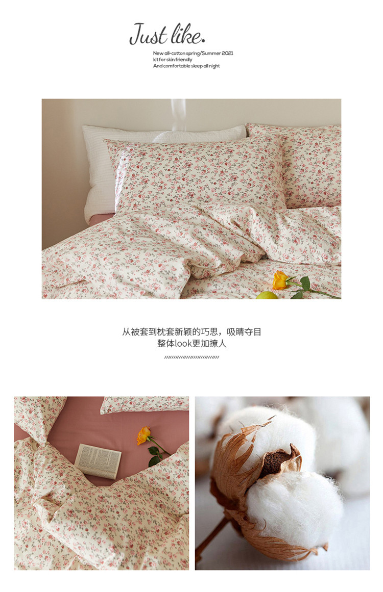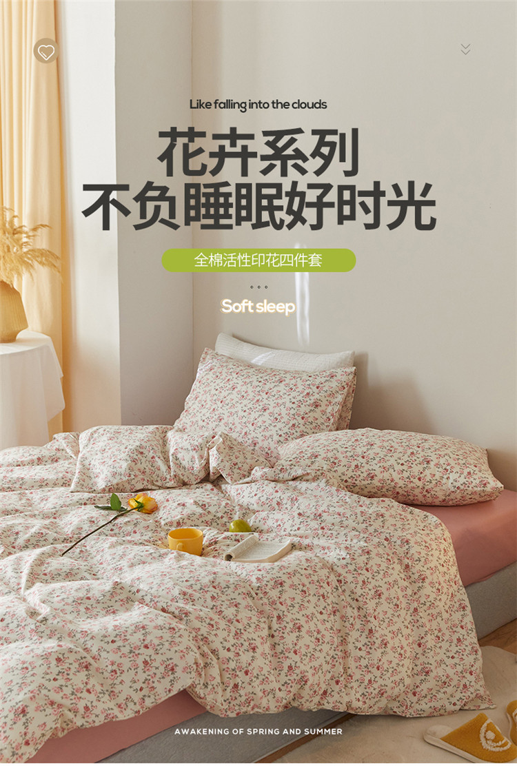 窝米 2020春夏新品全棉13372四件套小波西风系列小花花,小花花
