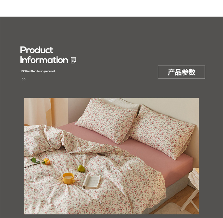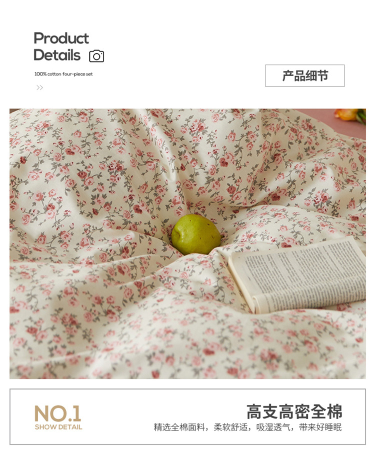 商品名称:窝米 2021新款全棉四件套花卉系列 苏蕾