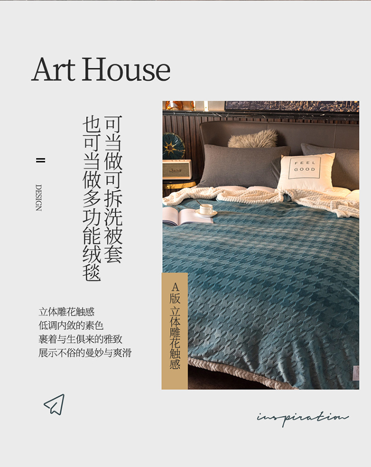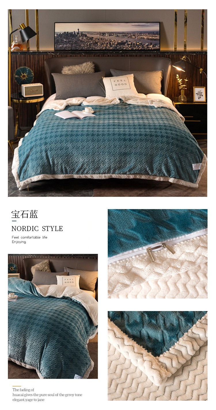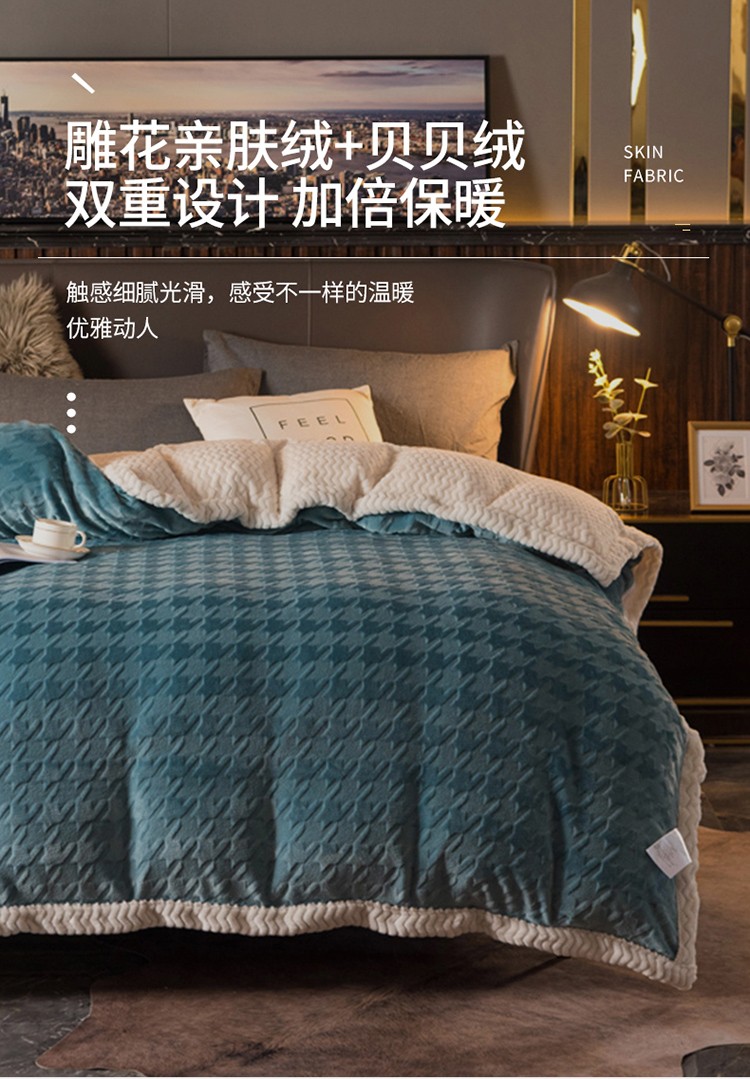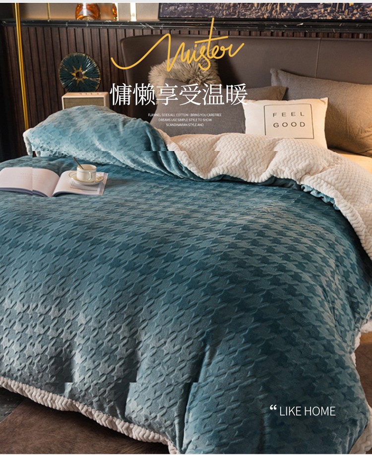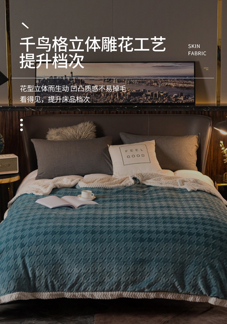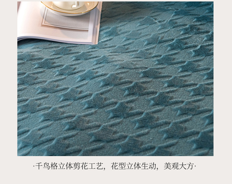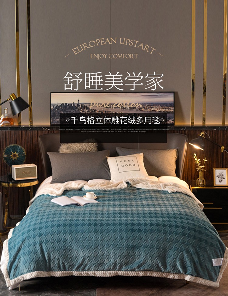 商品名称:网客 2024新款千鸟格立体雕花绒多用毯 宝石蓝