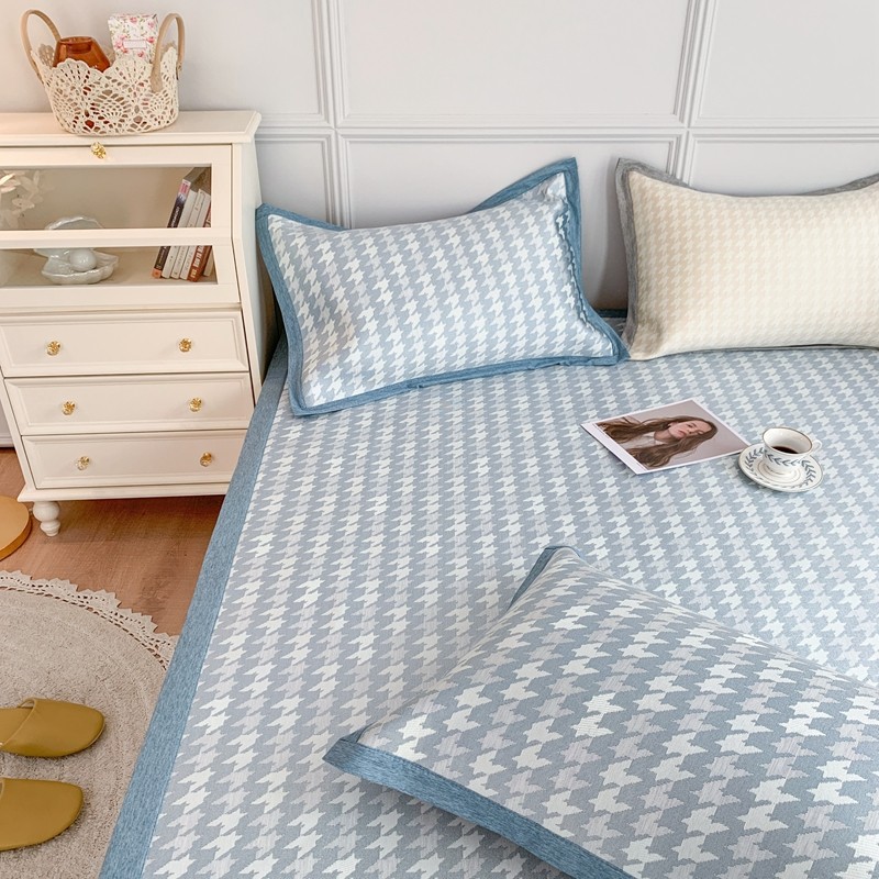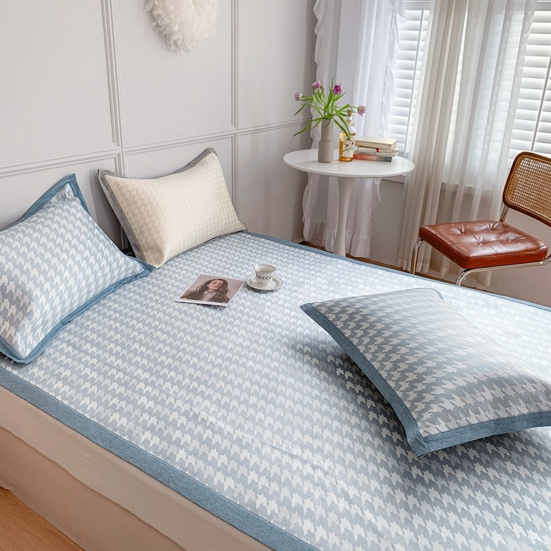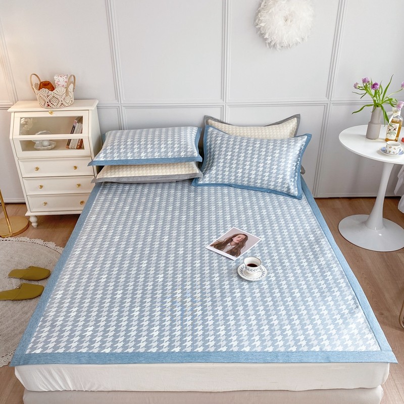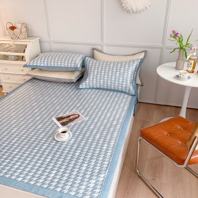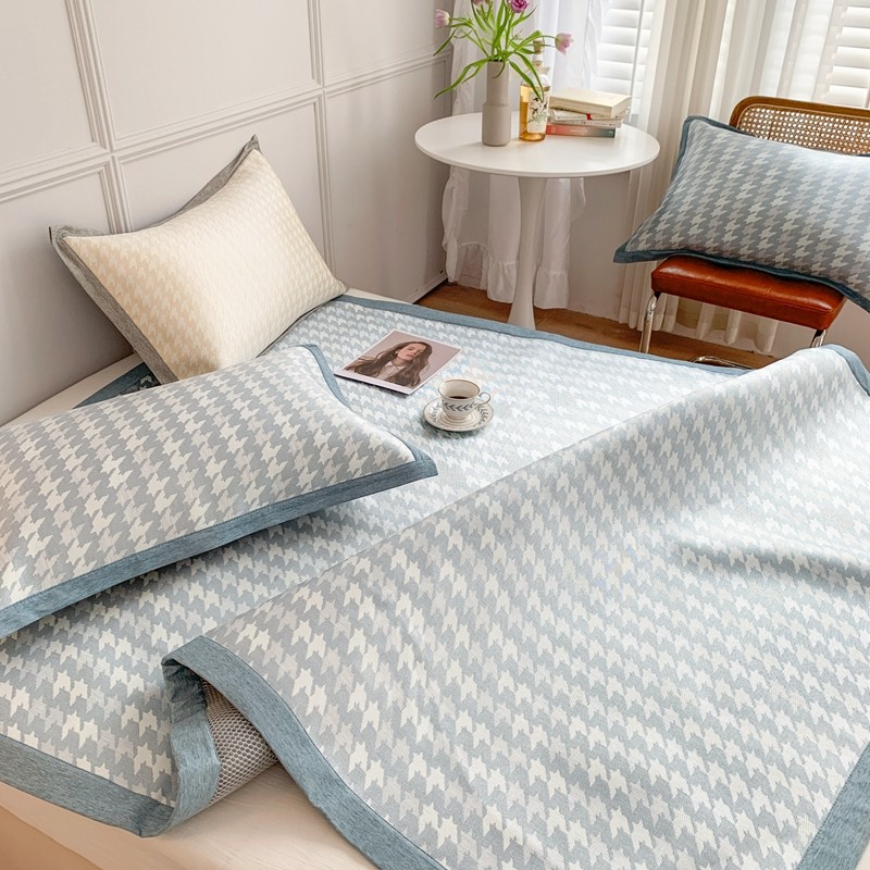 涞澳家纺 2021新款凉席三件套-千鸟格 千鸟格-浅蓝