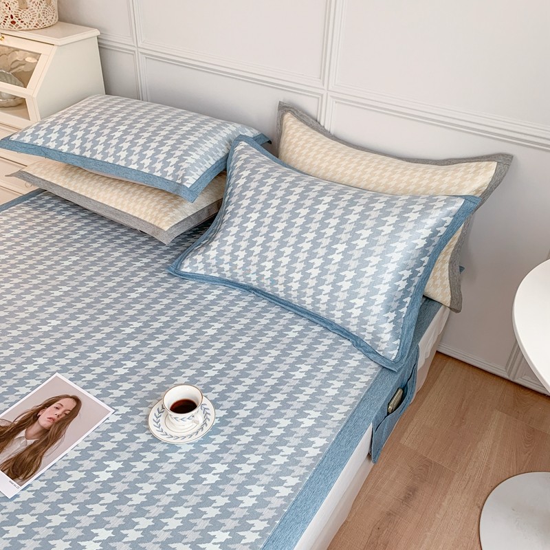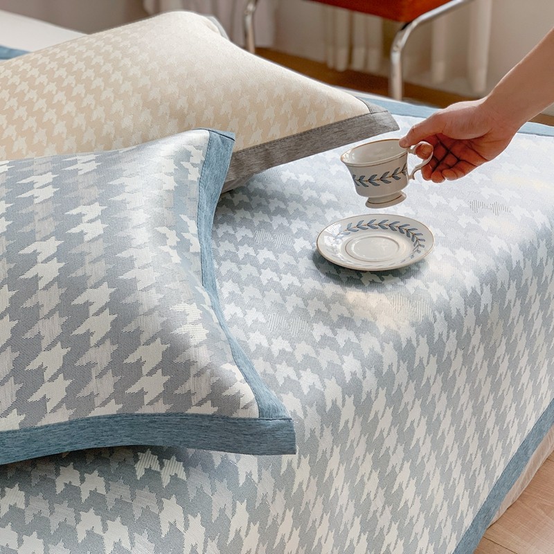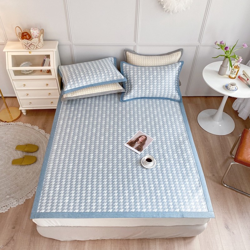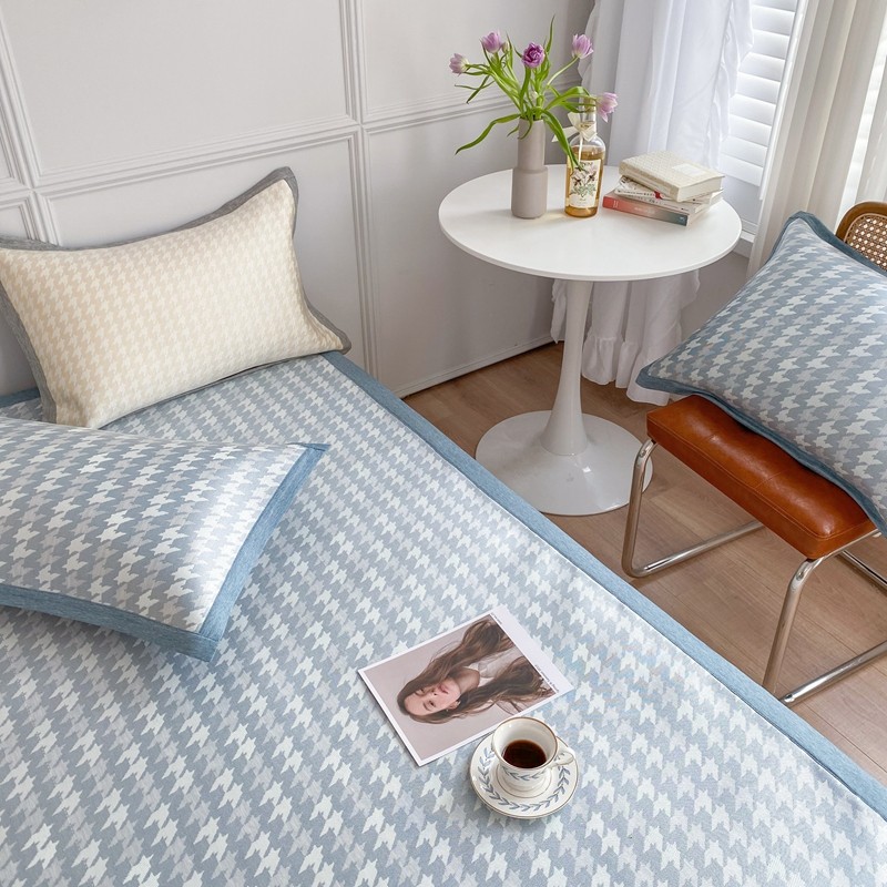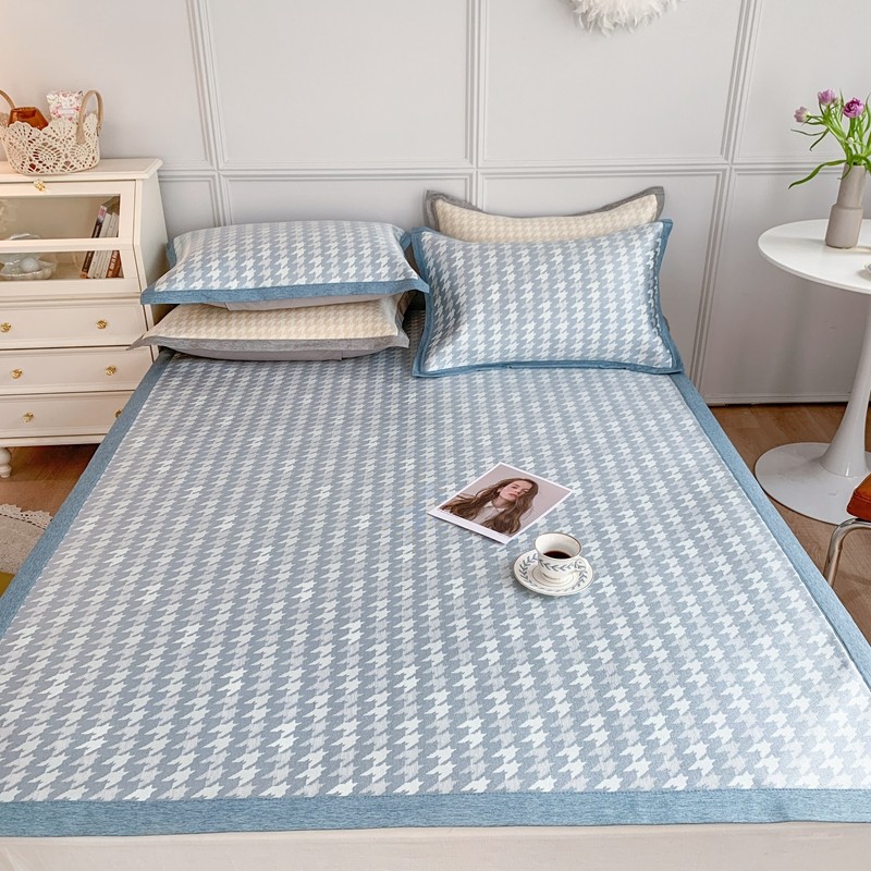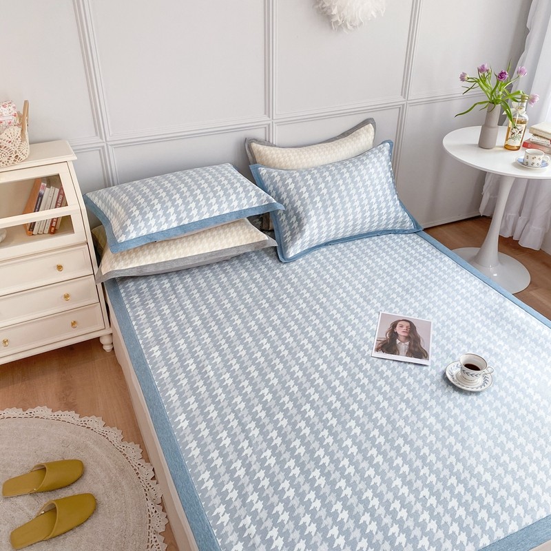 涞澳家纺 2021新款凉席三件套-千鸟格 千鸟格-浅蓝