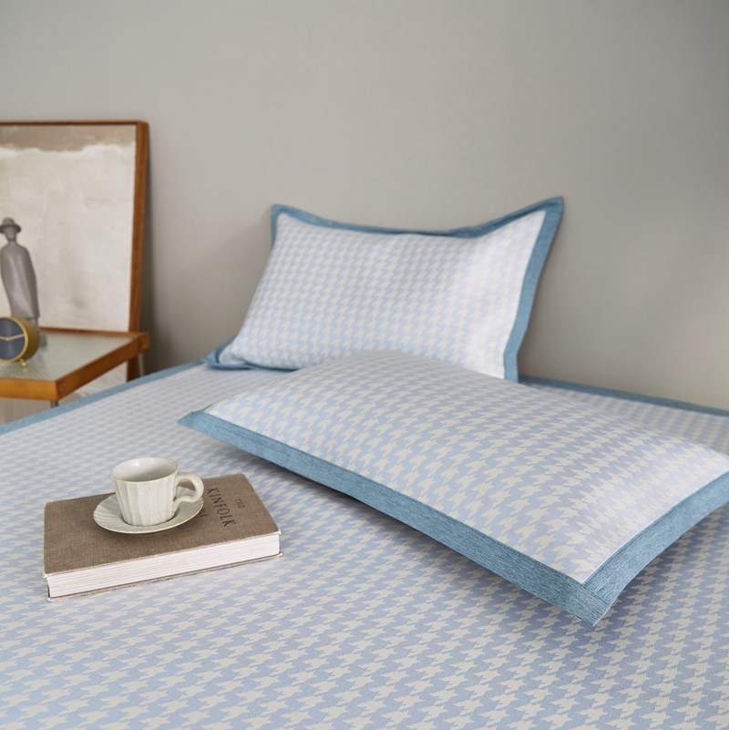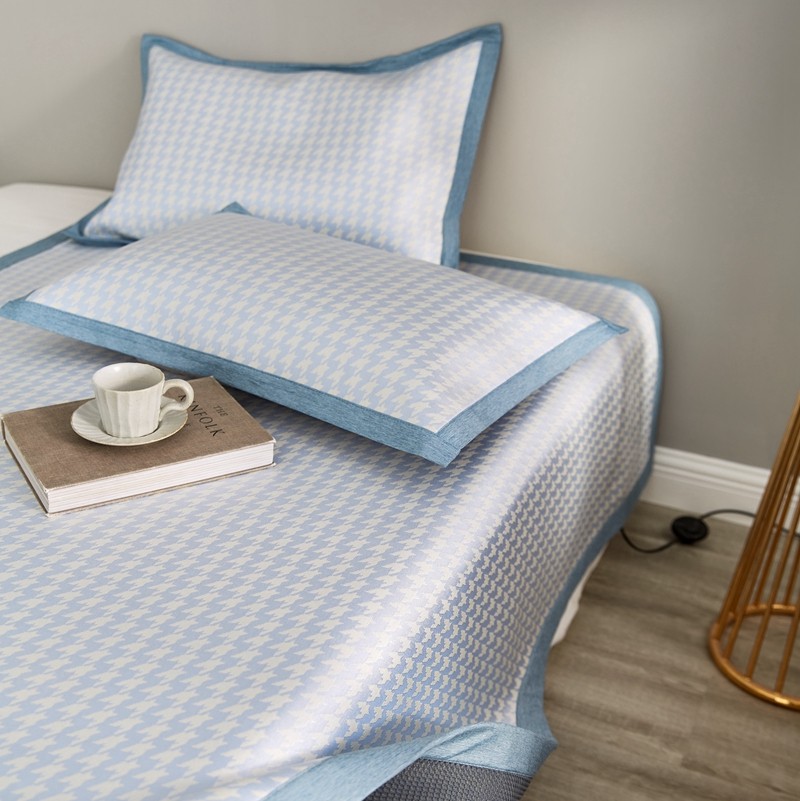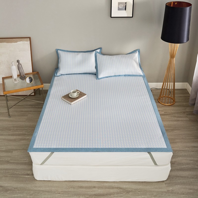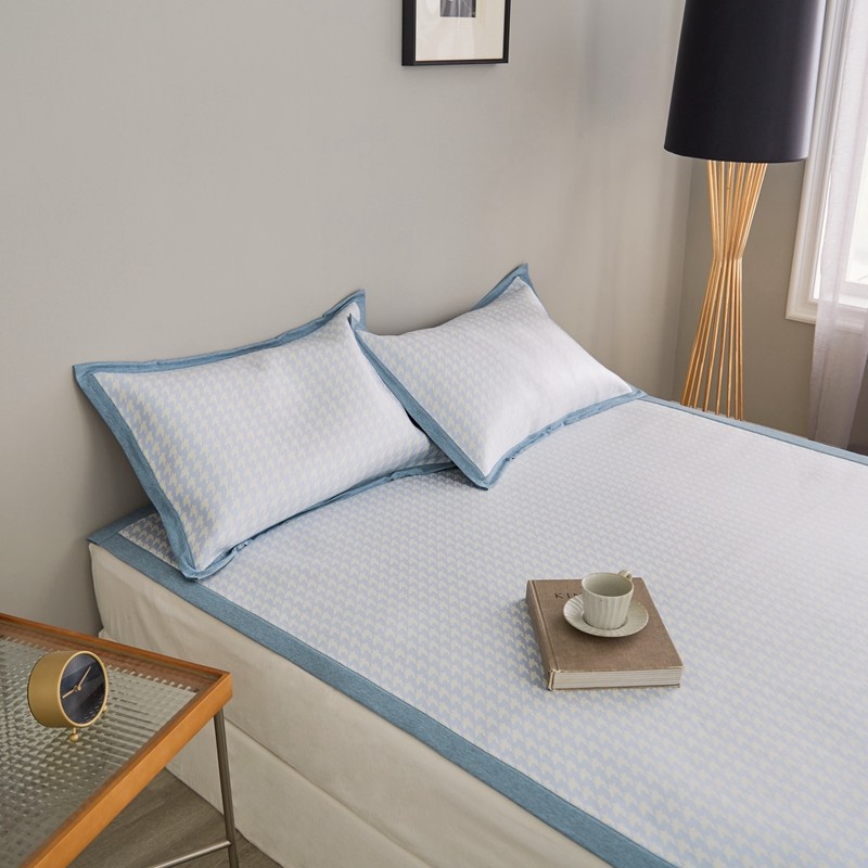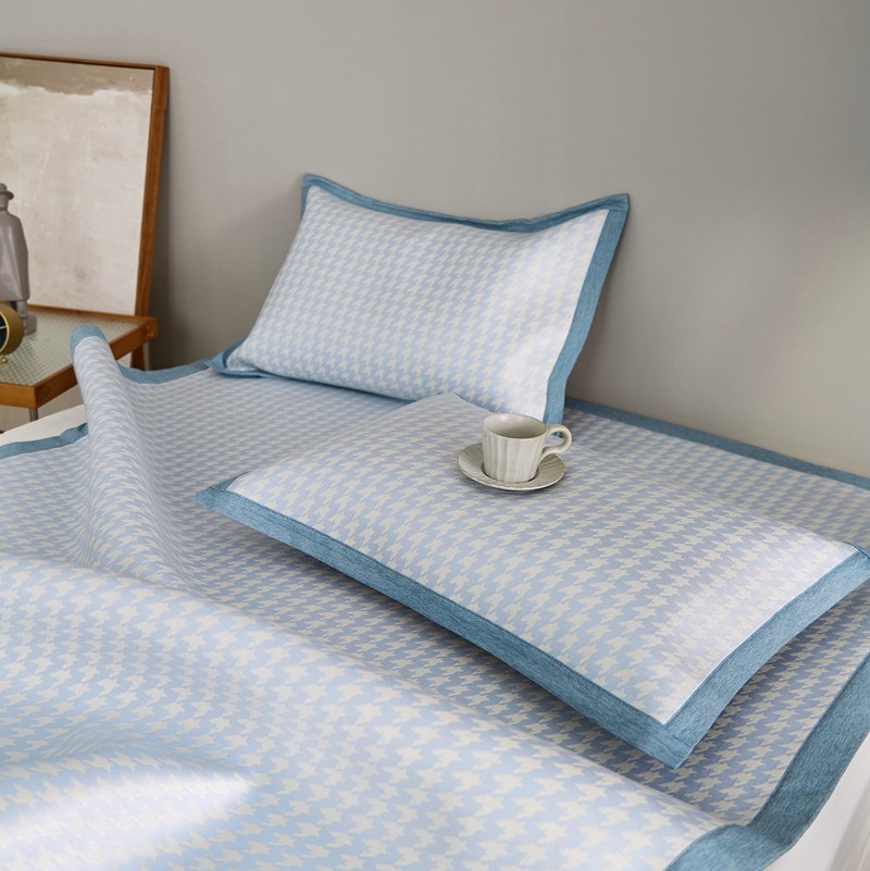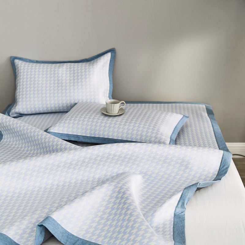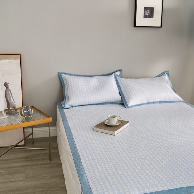 涞澳家纺 2021新款凉席三件套-千鸟格 千鸟格-浅蓝