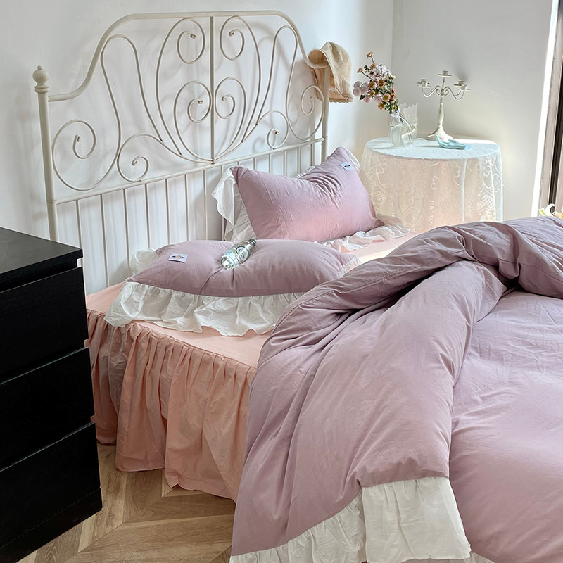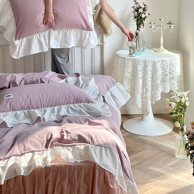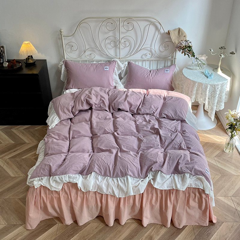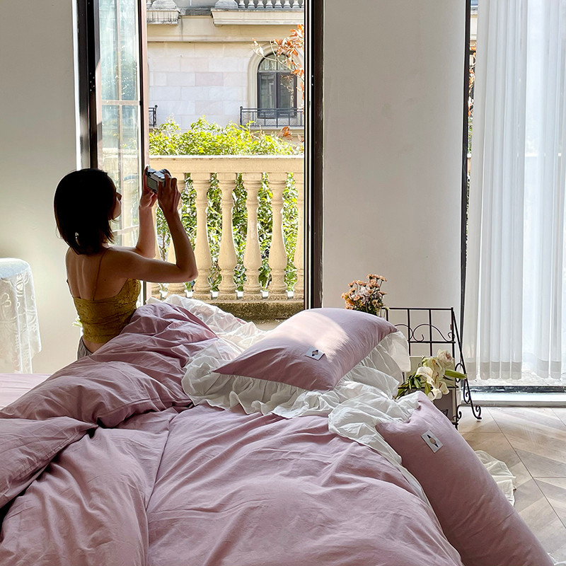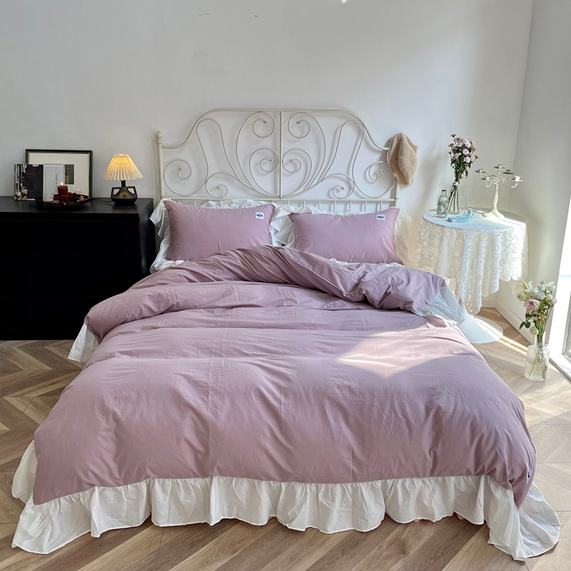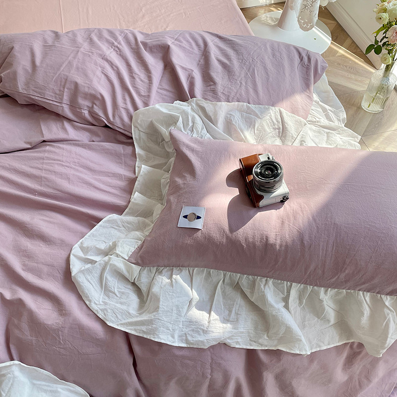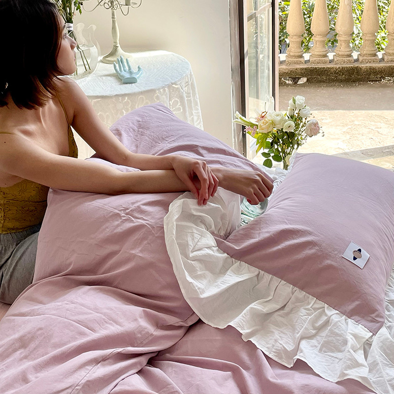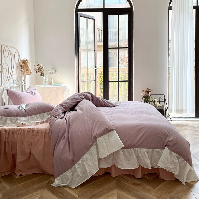 洋铭区 2021新款法式清新水洗棉四件套 可可紫