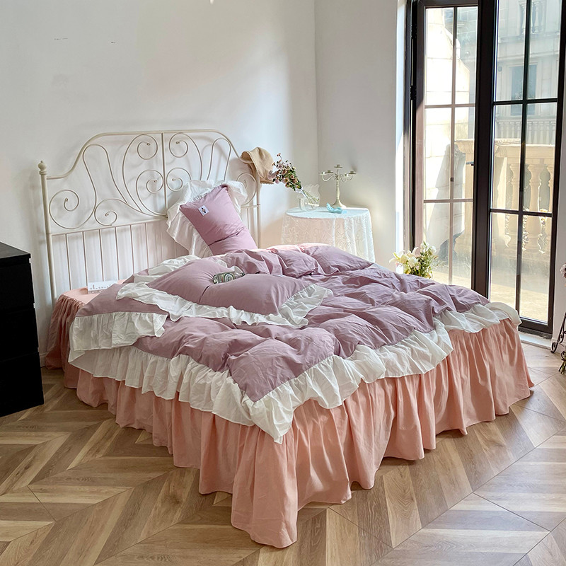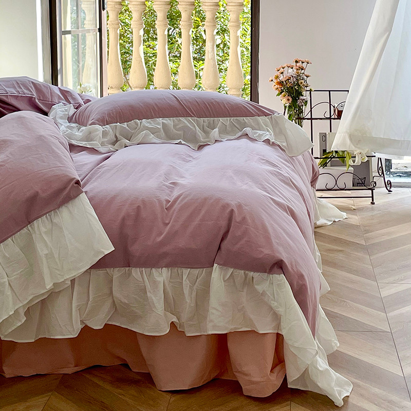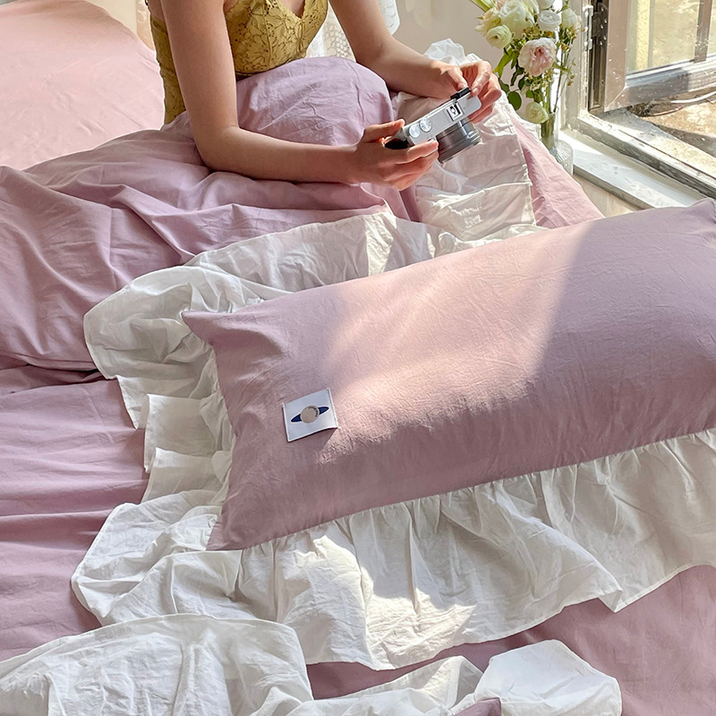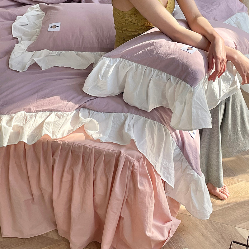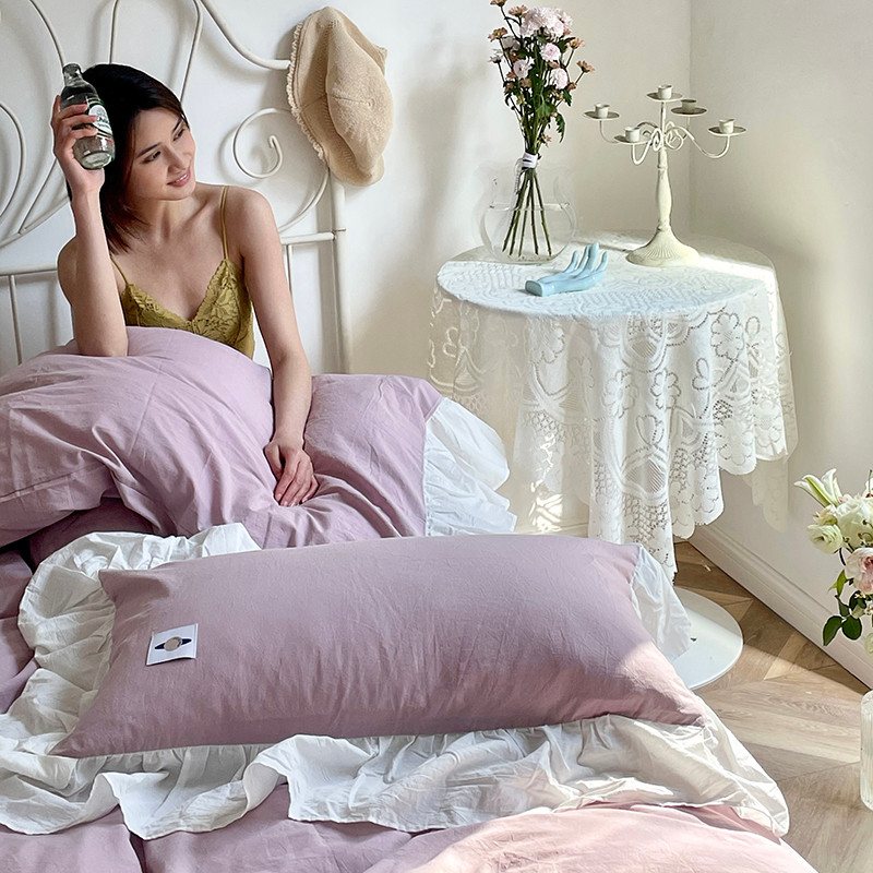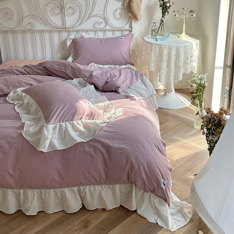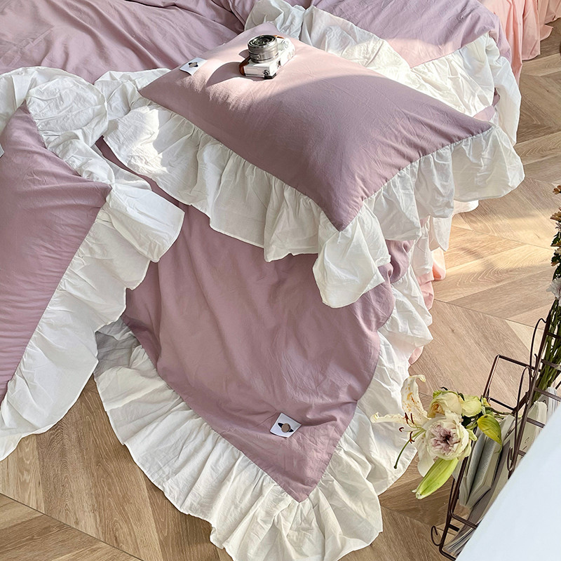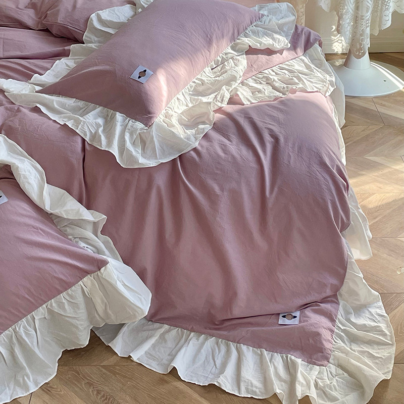 洋铭区 2021新款法式清新水洗棉四件套 可可紫