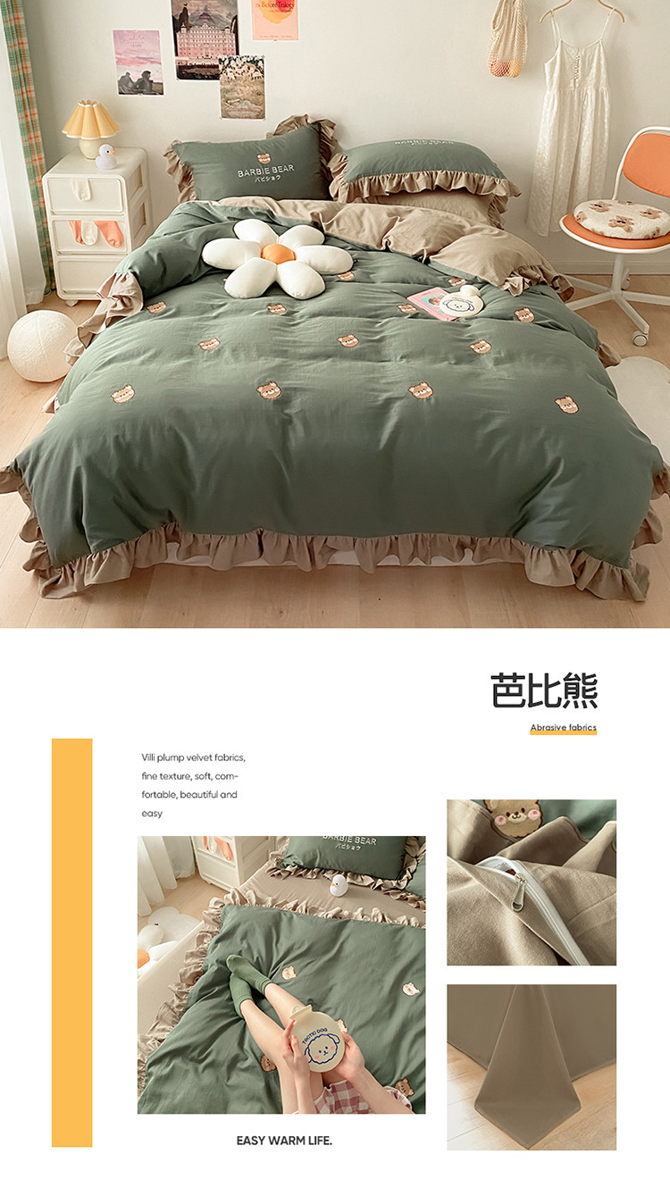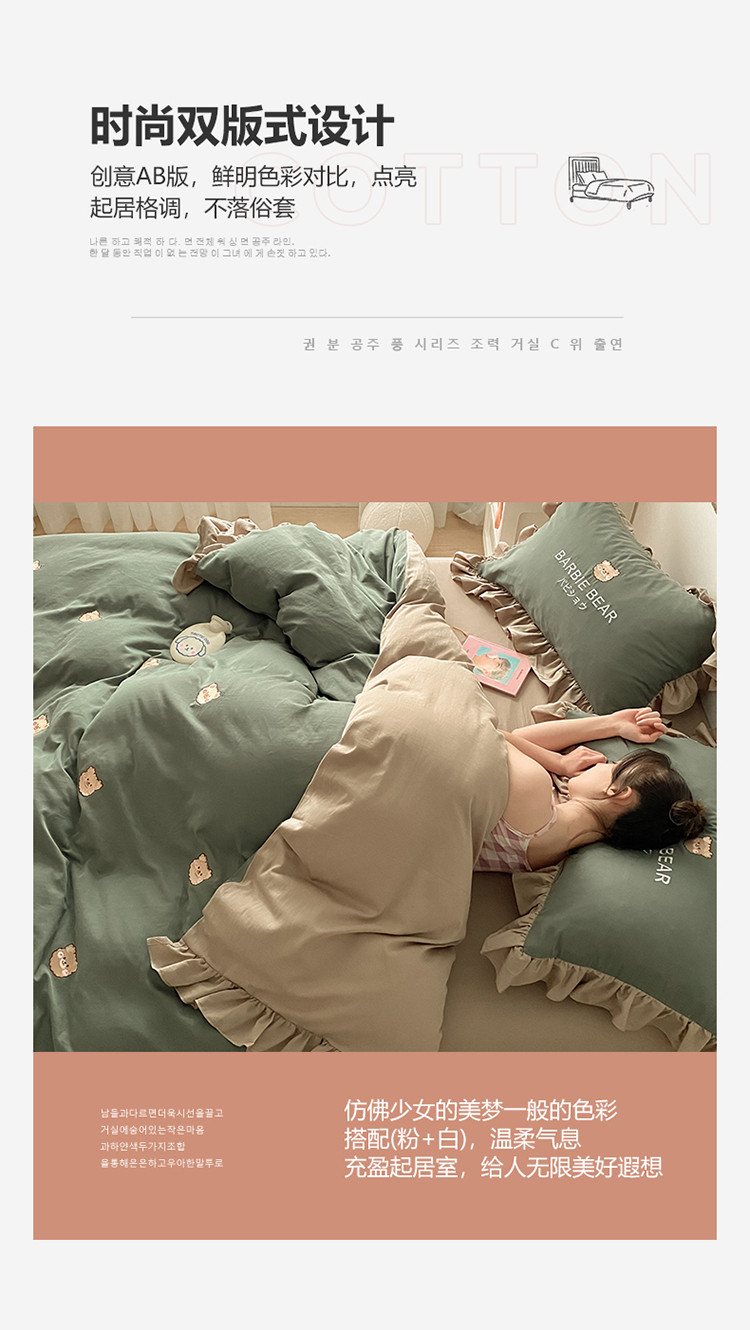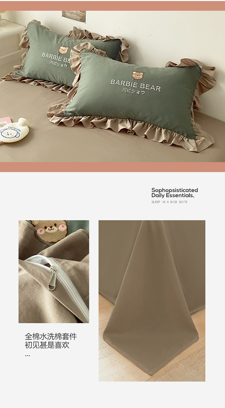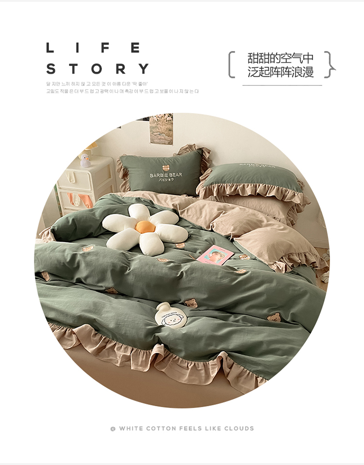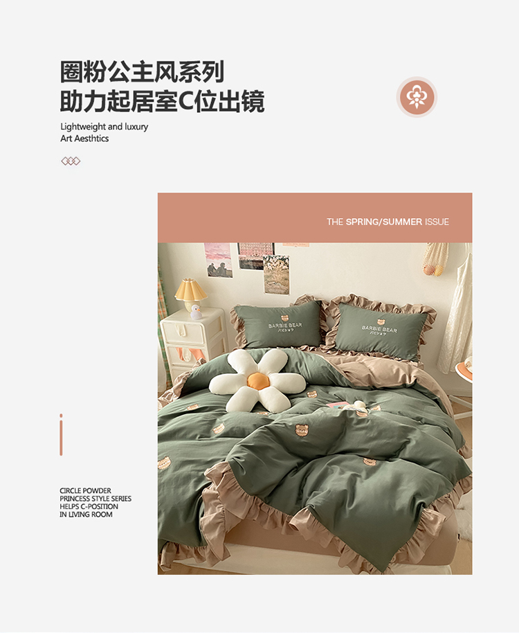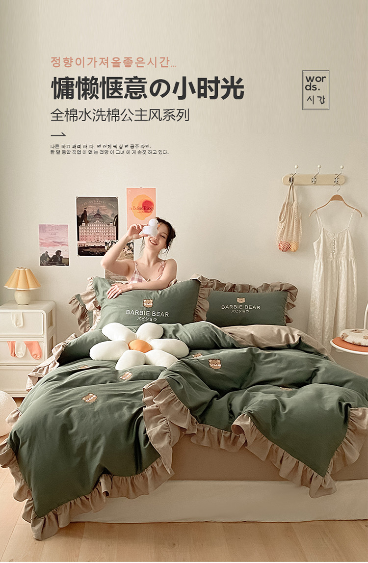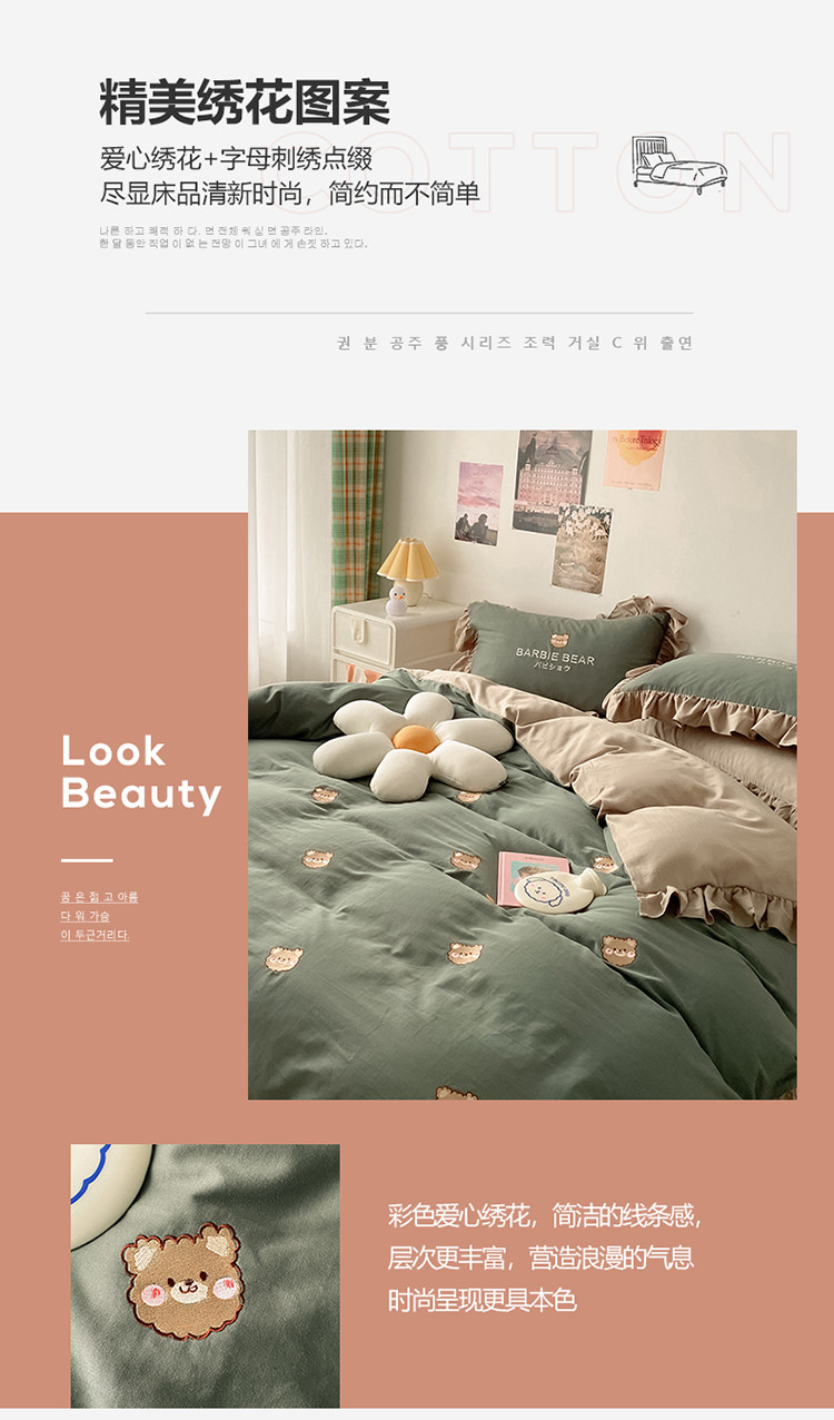 蓝巢2021新款全棉水洗棉刺绣四件套公主风系列芭比熊