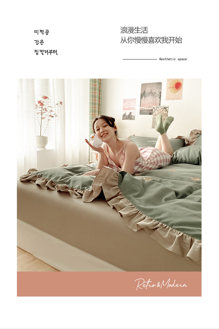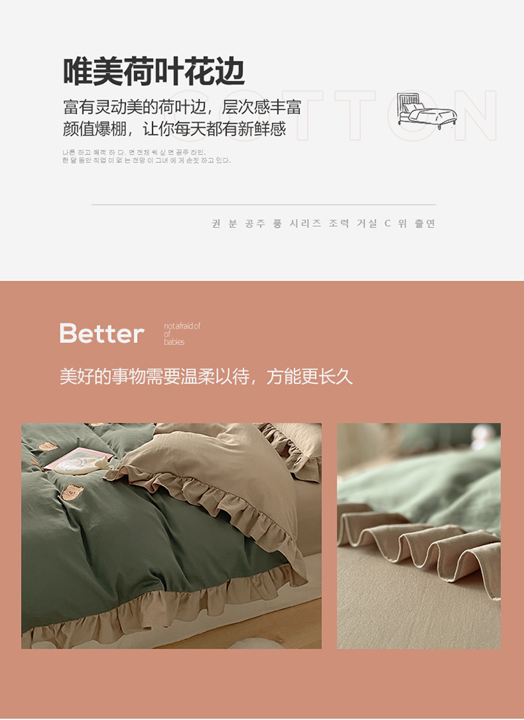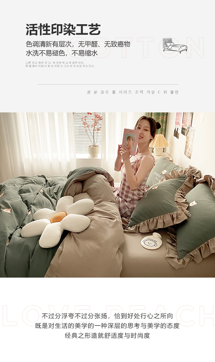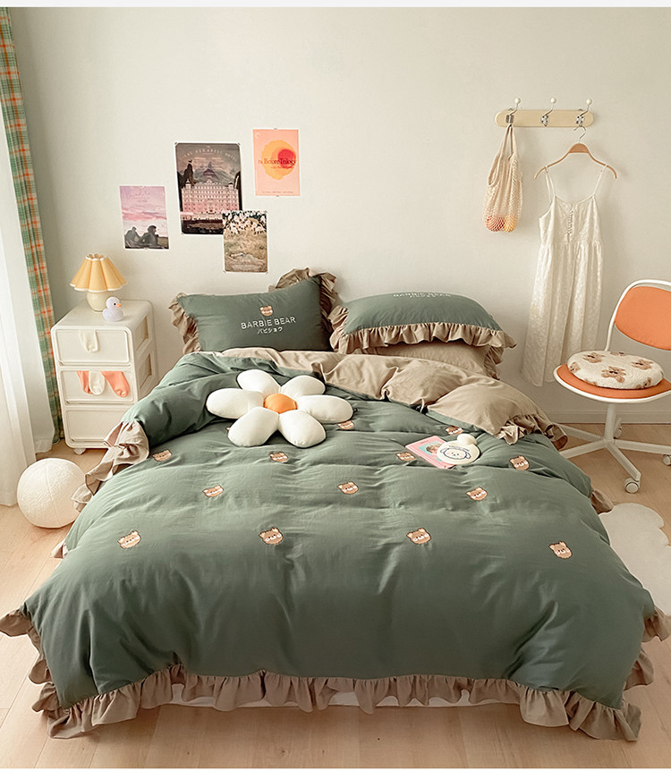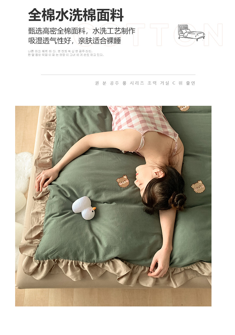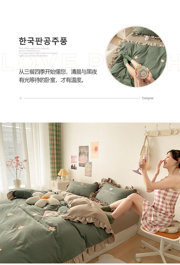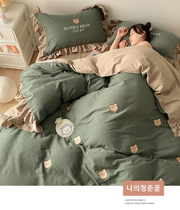 蓝巢2021新款全棉水洗棉刺绣四件套公主风系列芭比熊