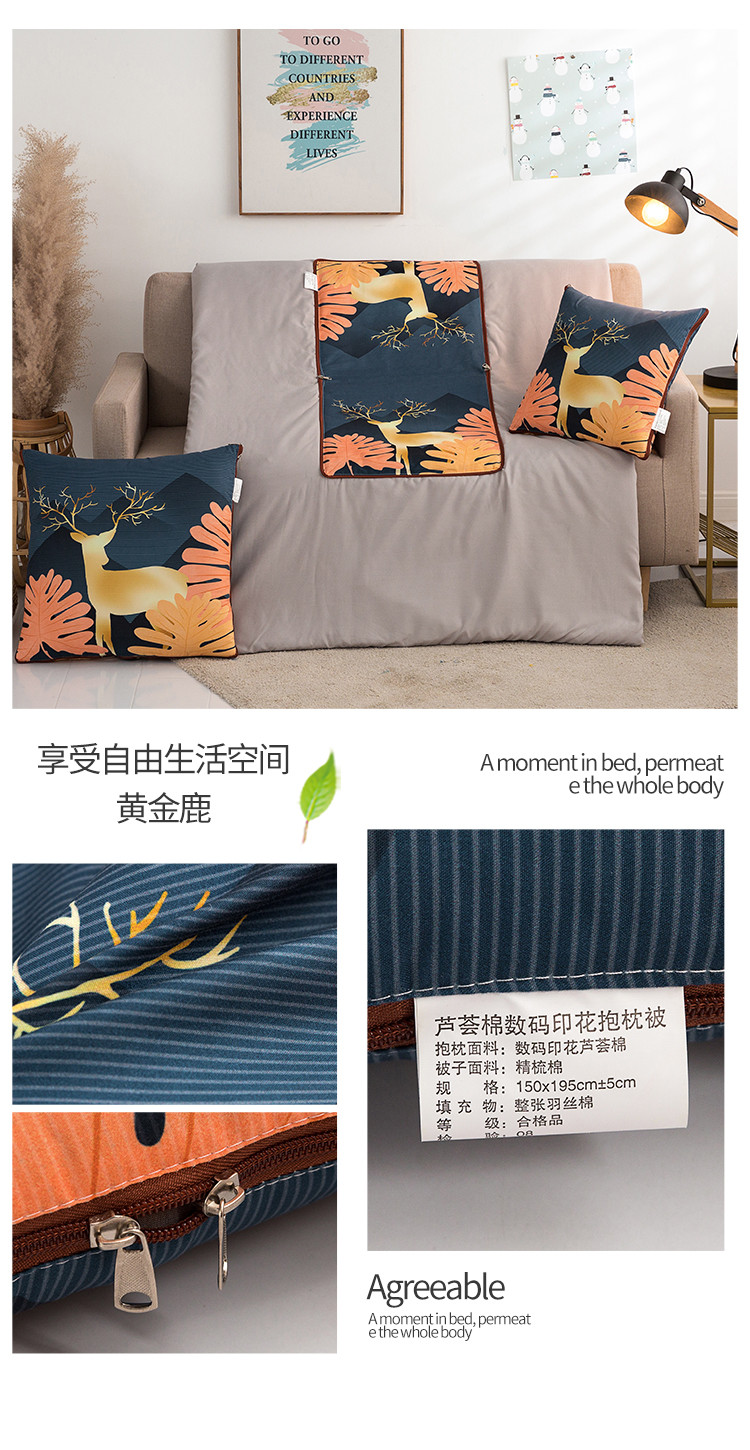 商品名称:宝马家纺 2022新款芦荟棉数码印花抱枕被 黄金鹿