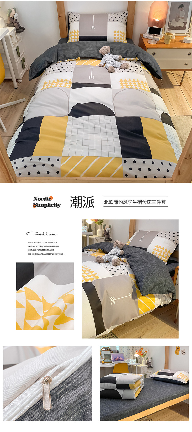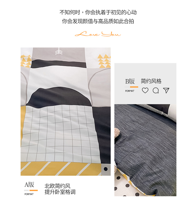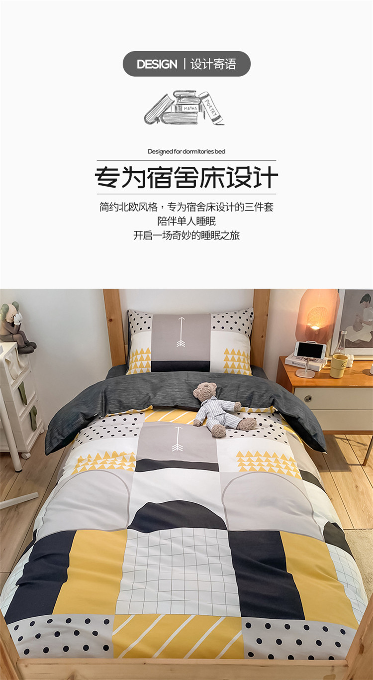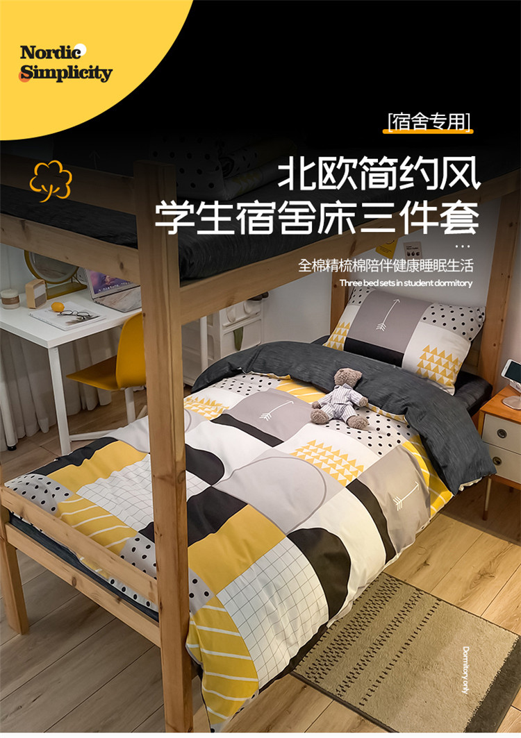 当前位置: 91家纺网 > 商品网购 > 床品套件 > 三件套 > 金爱家2021新款纯棉时尚简约北欧学生床三件套 潮派