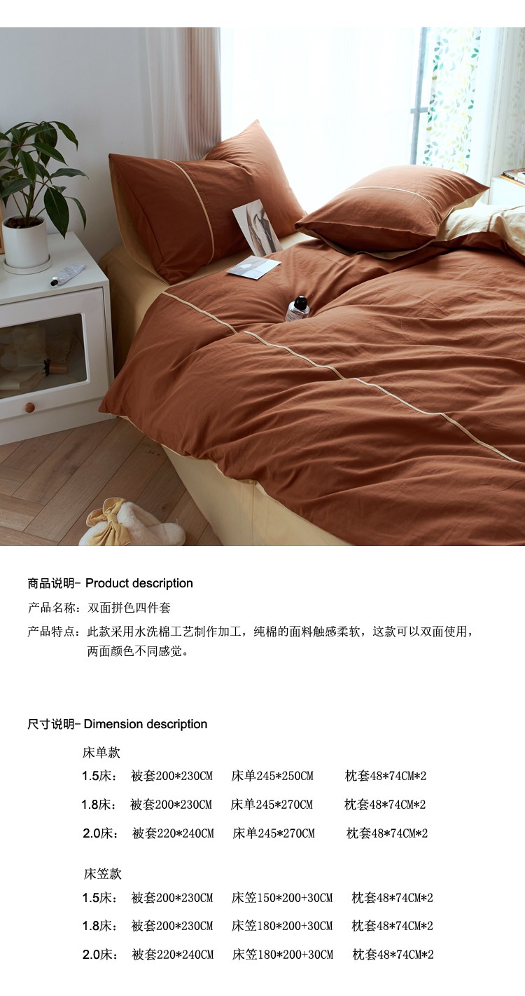双拼全棉水洗棉纯棉四件套ins简约北欧纯色床笠款套件,双拼白+浅蓝,双拼白+薇薇紫,双拼海蓝+浅蓝,双拼琥珀+鹅黄,双拼焦糖+奶茶,双拼螺旋藻绿+鹅黄,双拼奶茶+鹅黄,双拼牛油果+鹅黄,双拼浅蓝+鹅黄,双拼树莓红+杏仁白,双拼水绿+螺旋藻绿,双拼豌豆青+杏仁白,双拼杏仁白+螺旋藻绿,薇薇紫+杏仁白,浅灰+杏仁白,双拼藏青+浅灰,双拼花青灰+浅灰,双拼霁色+浅灰