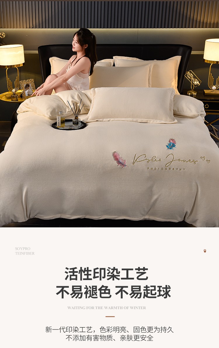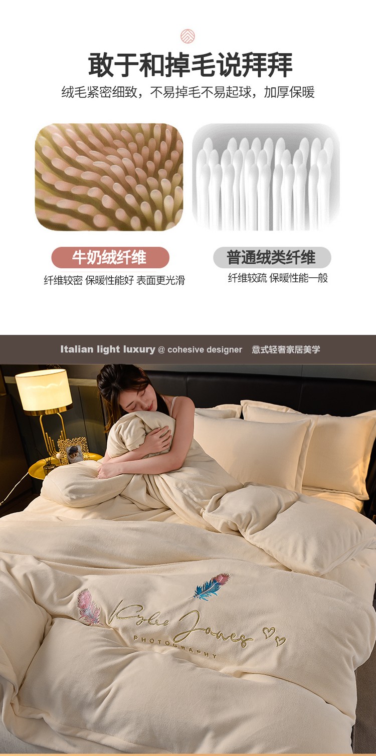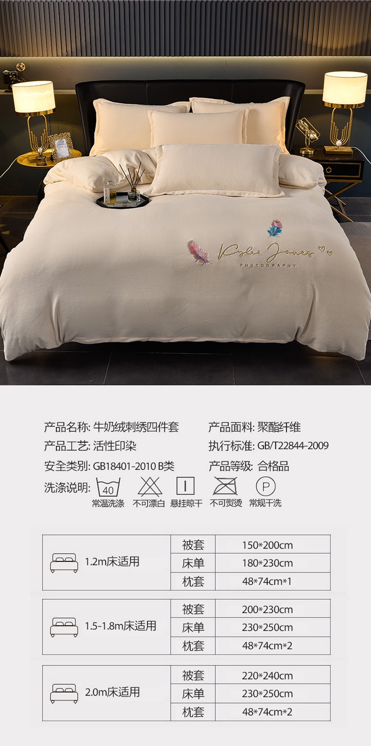 当前位置: 91家纺网 > 商品网购 > 床品套件 > 四件套 > 牛奶绒四件套 > 简爱 2025新款高克重简单款牛奶绒刺绣四件套 羽毛-米黄