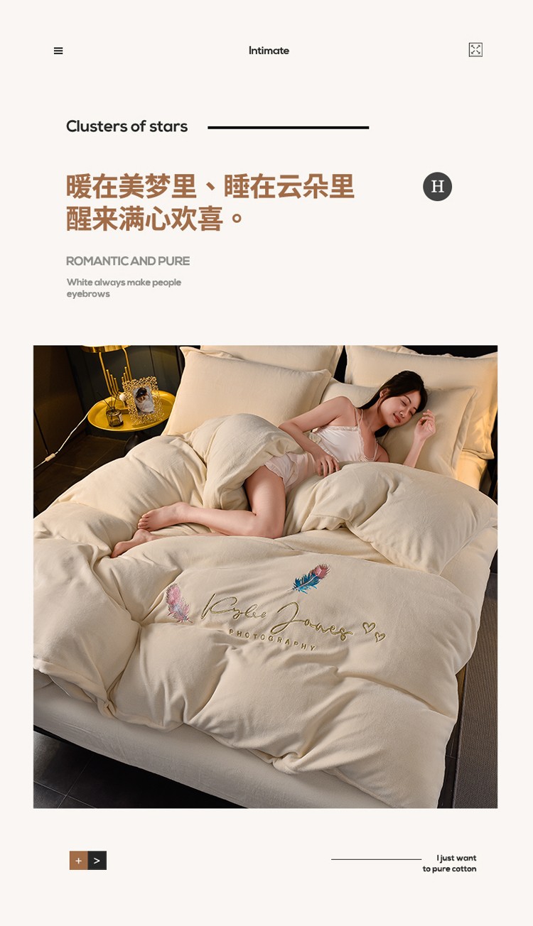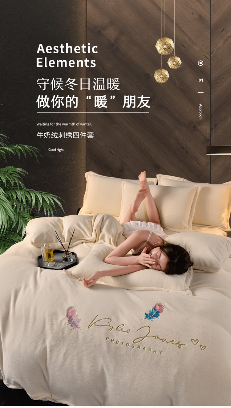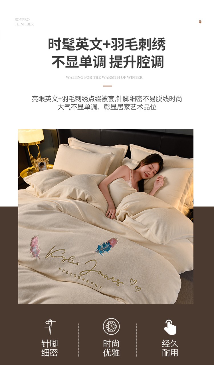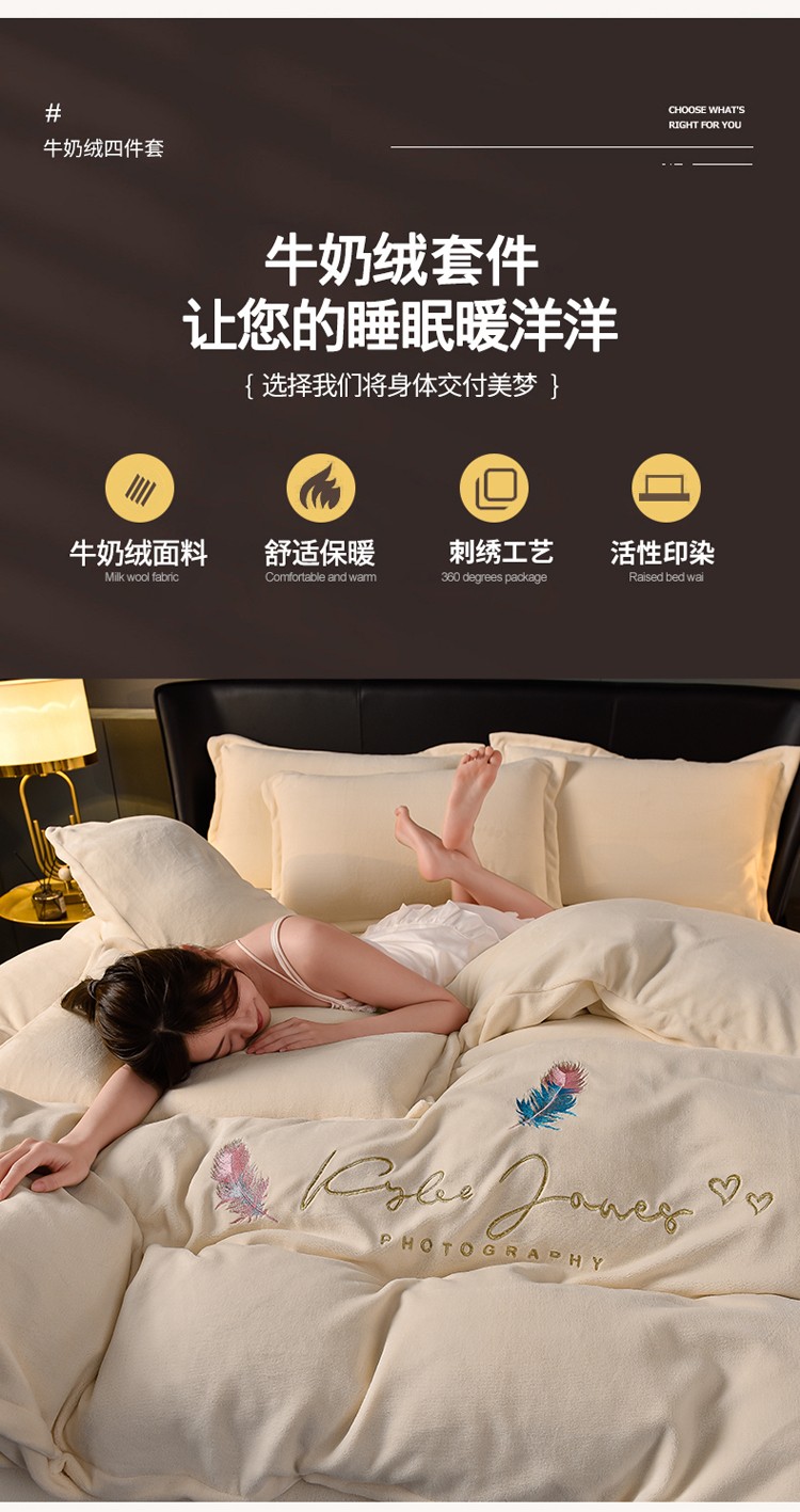 当前位置: 91家纺网 > 商品网购 > 床品套件 > 四件套 > 牛奶绒四件套 > 简爱 2025新款高克重简单款牛奶绒刺绣四件套 羽毛-米黄