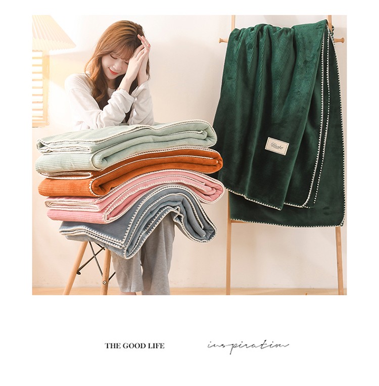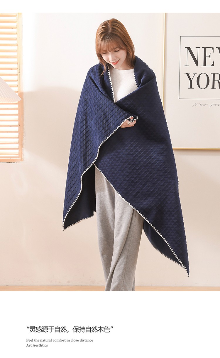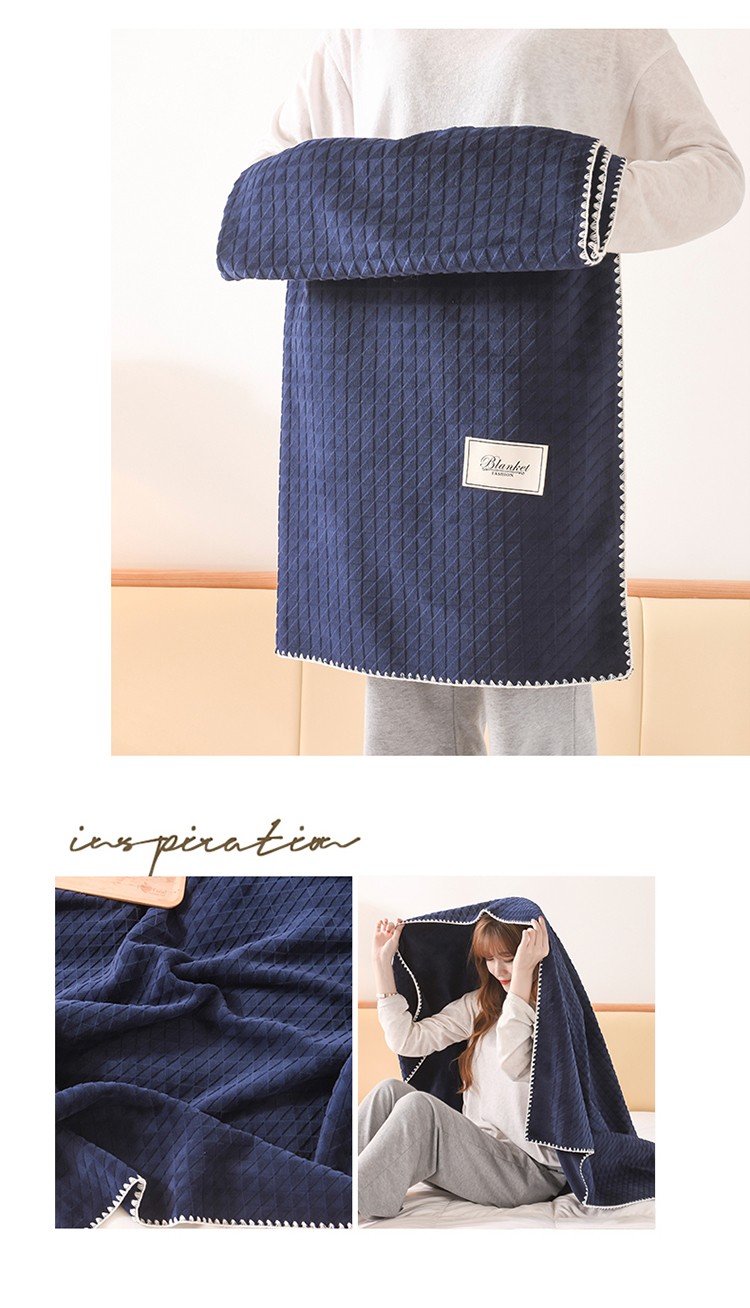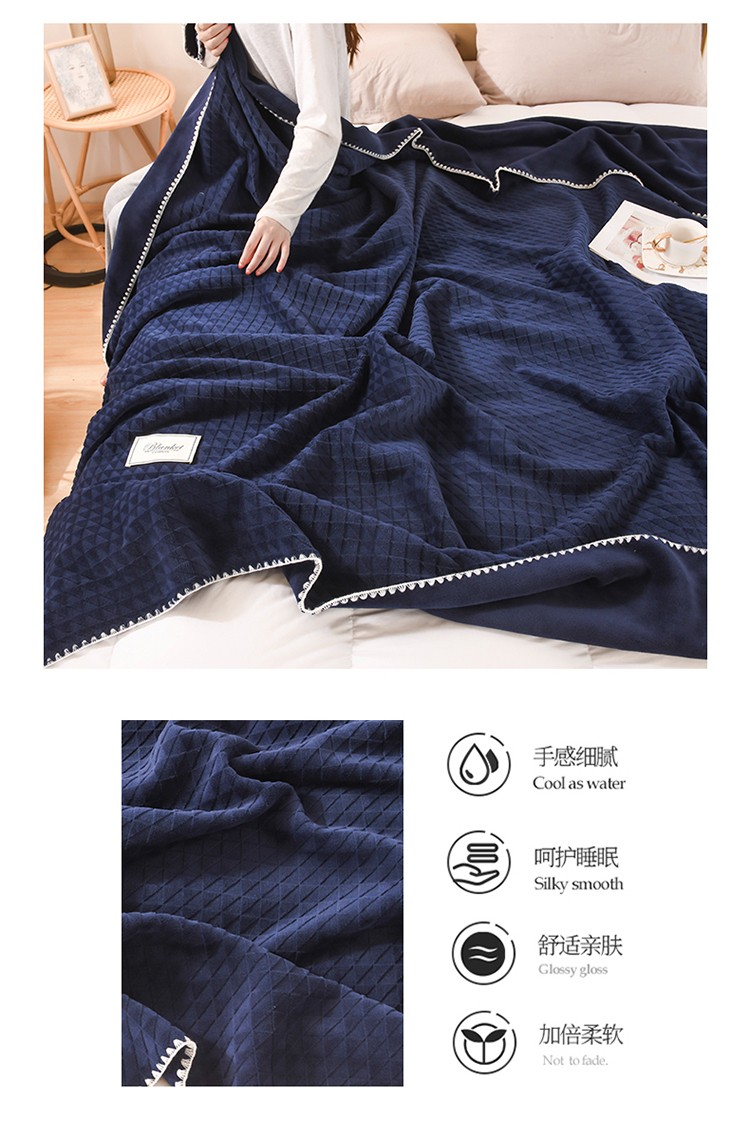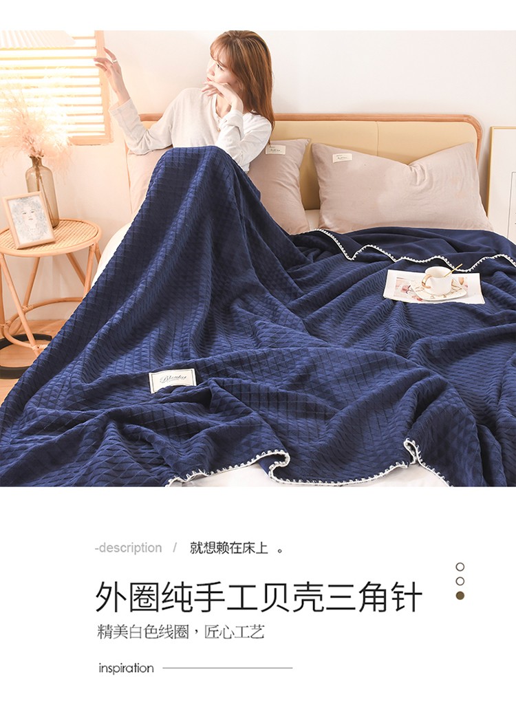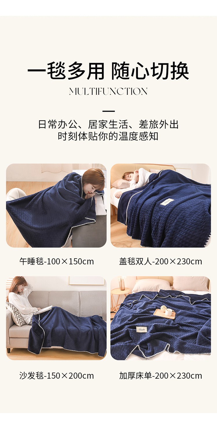 商品名称:印季家纺 2024新款华夫格牛奶绒毛毯 渐变格-藏青
