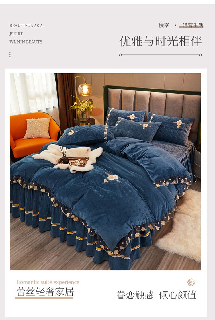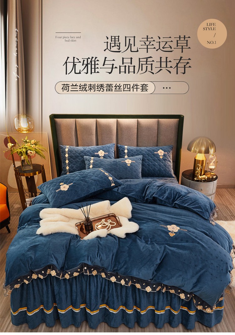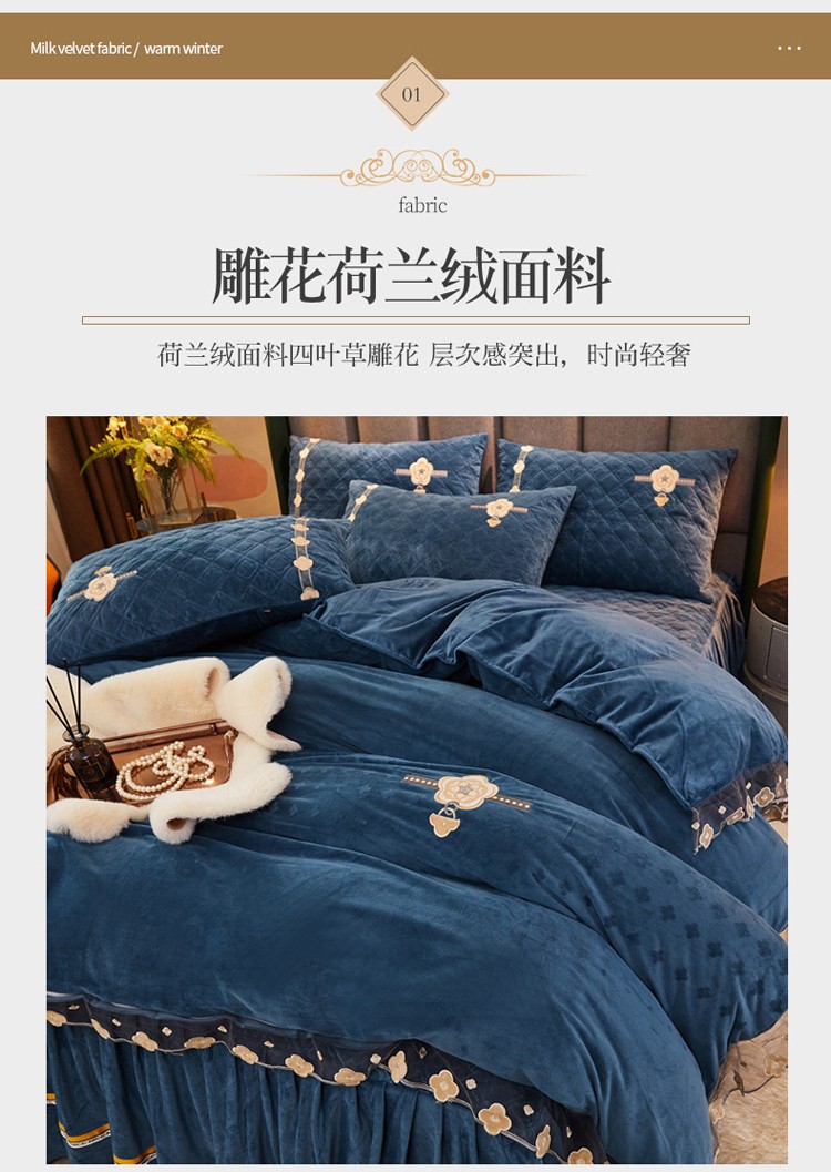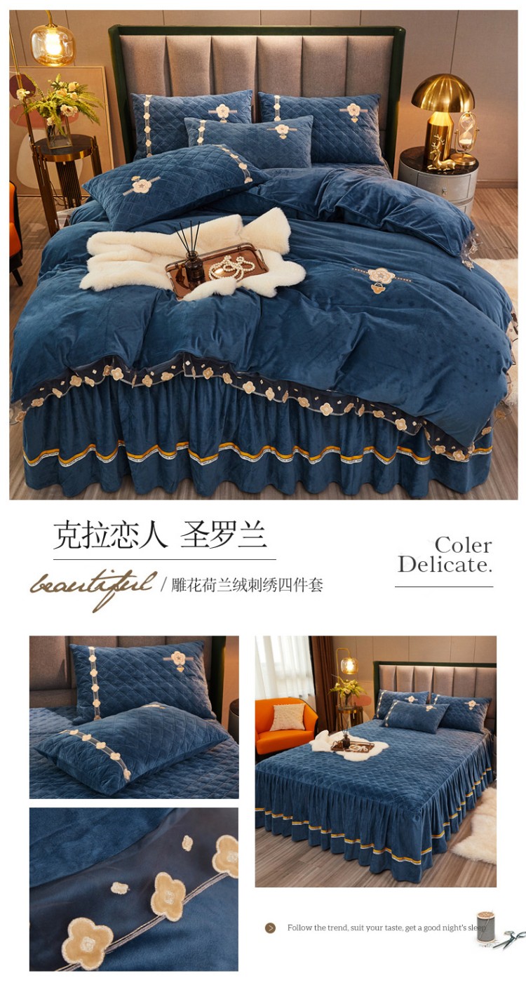 当前位置: 91家纺网 > 商品网购 > 床品套件 > 四件套 > 磨绒四件套 > 菊上家纺 2021新款刺绣雕花克拉恋人荷兰绒四件套 圣罗兰