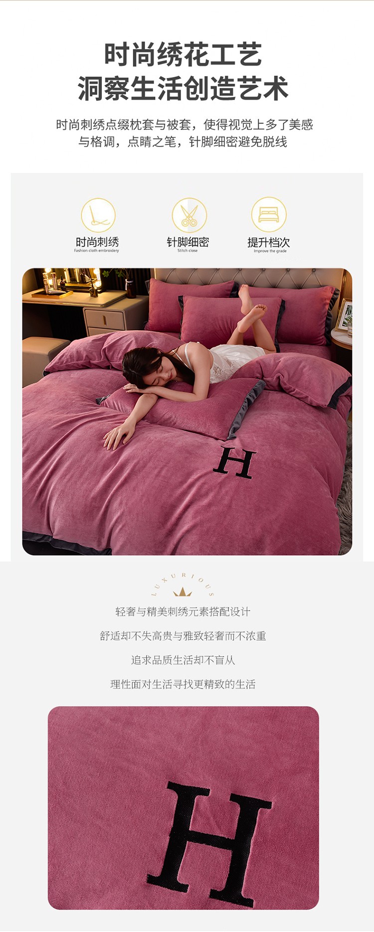 商品名称:(总)简爱家纺2025款高克重牛奶绒拼角工艺四件套
