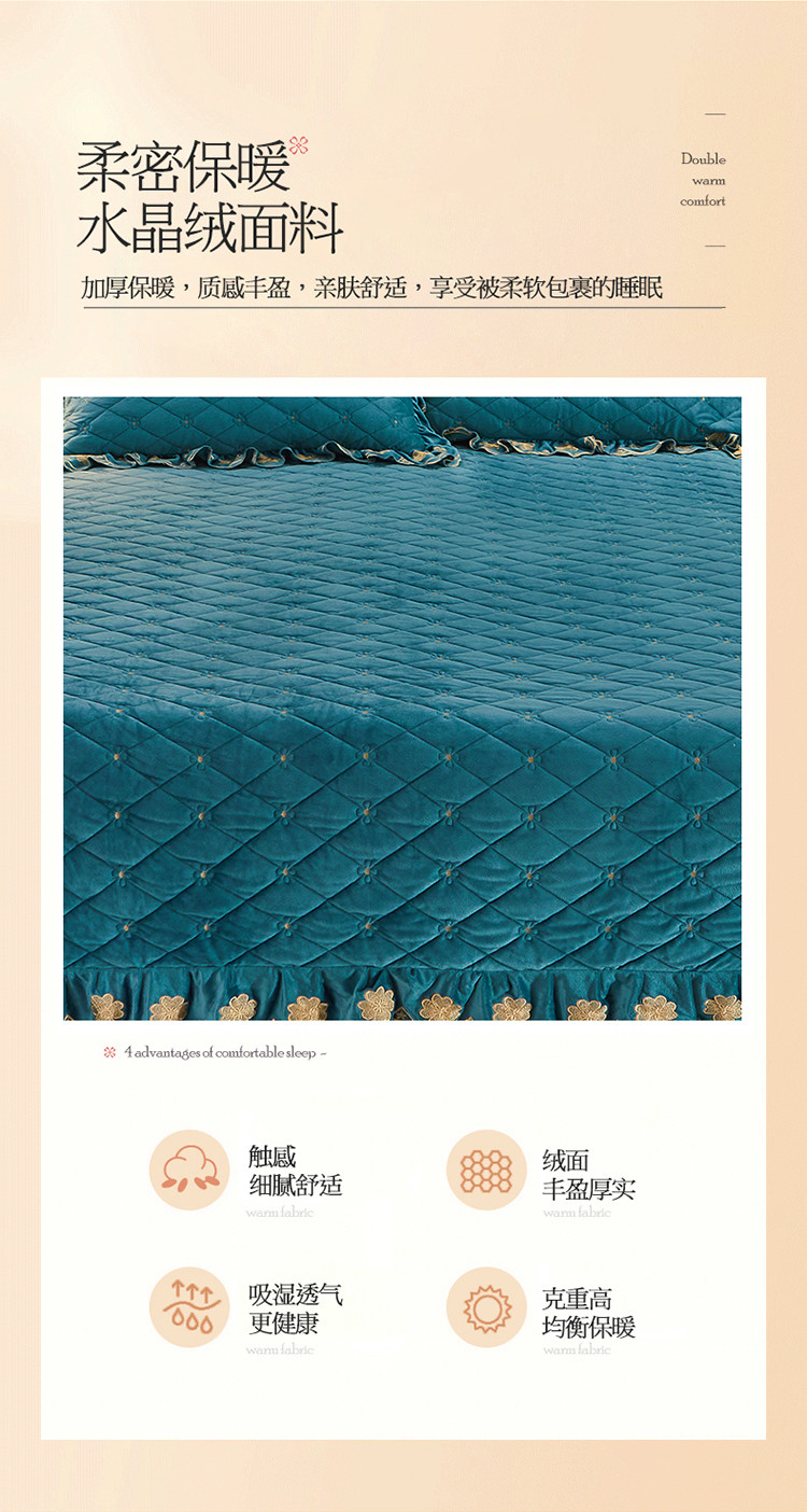(总)恒爱 2022秋冬水晶绒翩翩花舞夹棉床裙四件套,大红色,豆沙红,橄榄绿,公主粉,桔色,咖啡色,孔雀绿,拉菲红,罗兰紫,玫红色,美人玉,米白色,米驼色,抹茶绿,浅灰色,紫色