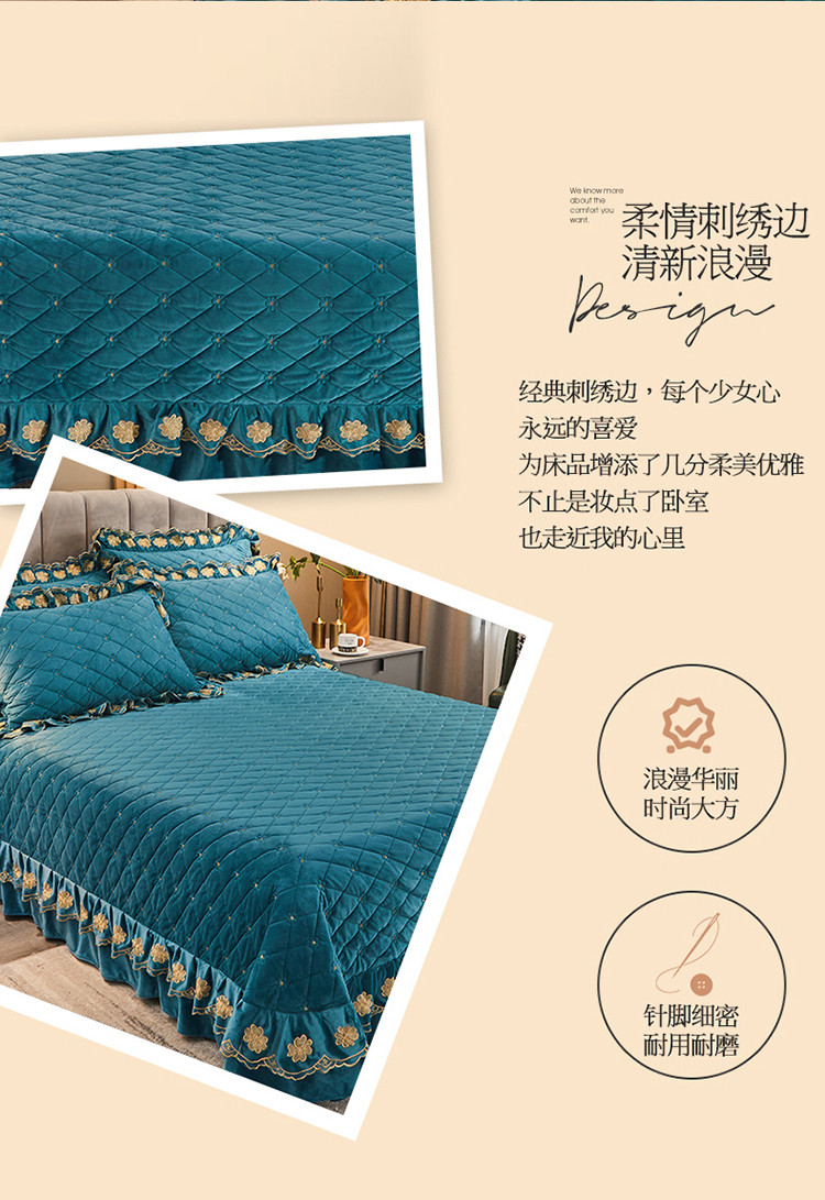 (总)恒爱 2022新款秋冬轻奢宝宝绒刺绣单床裙,爱玛橙,宾利蓝,豆沙红,橄榄绿,高级灰,酒红,梦想粉,浅灰蓝,温馨粉,喜庆红,香妃粉,香芋紫