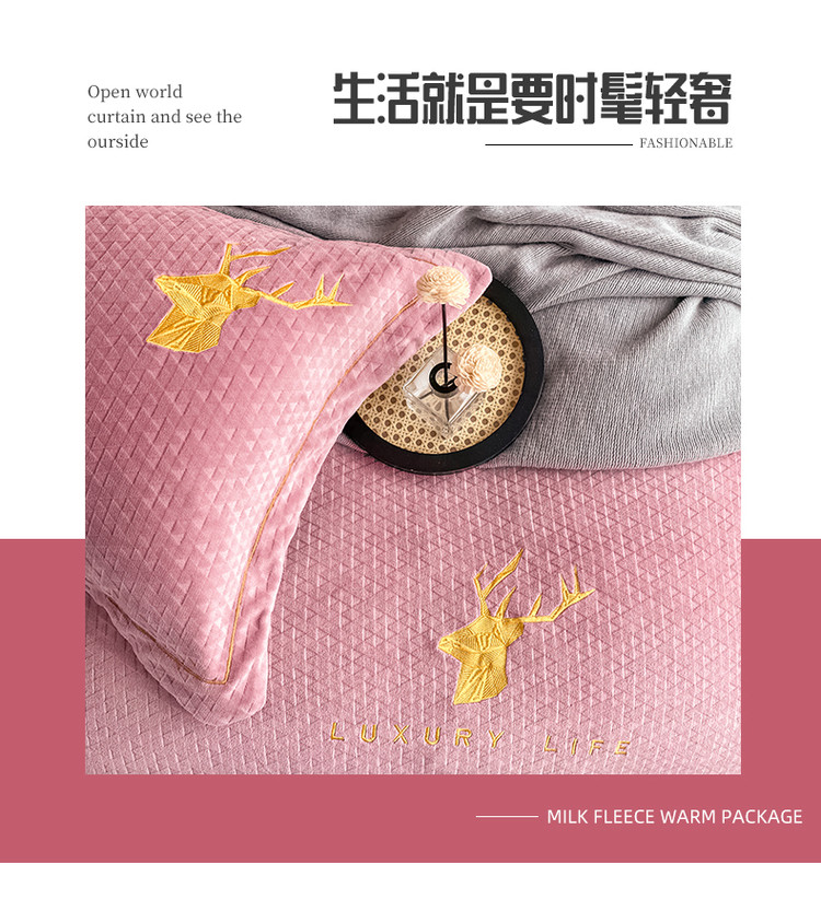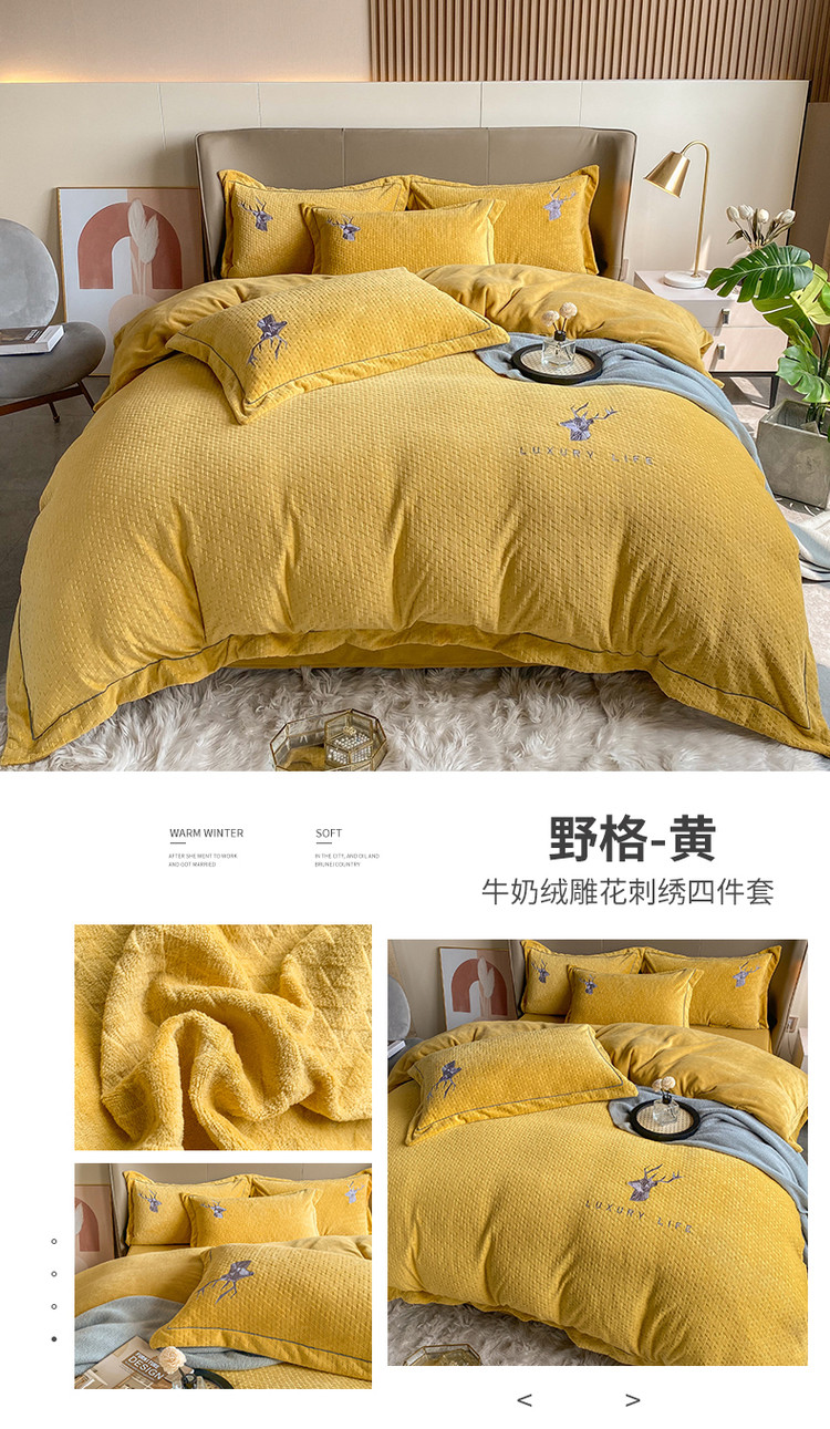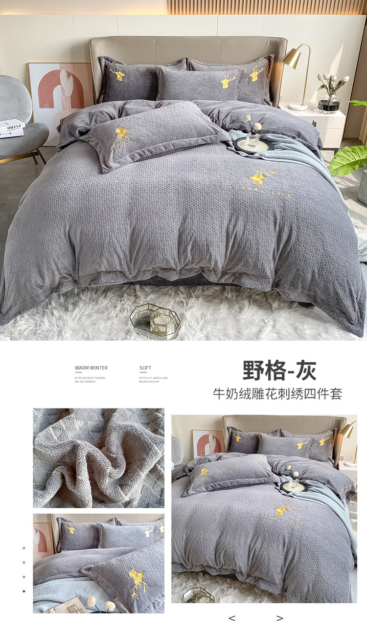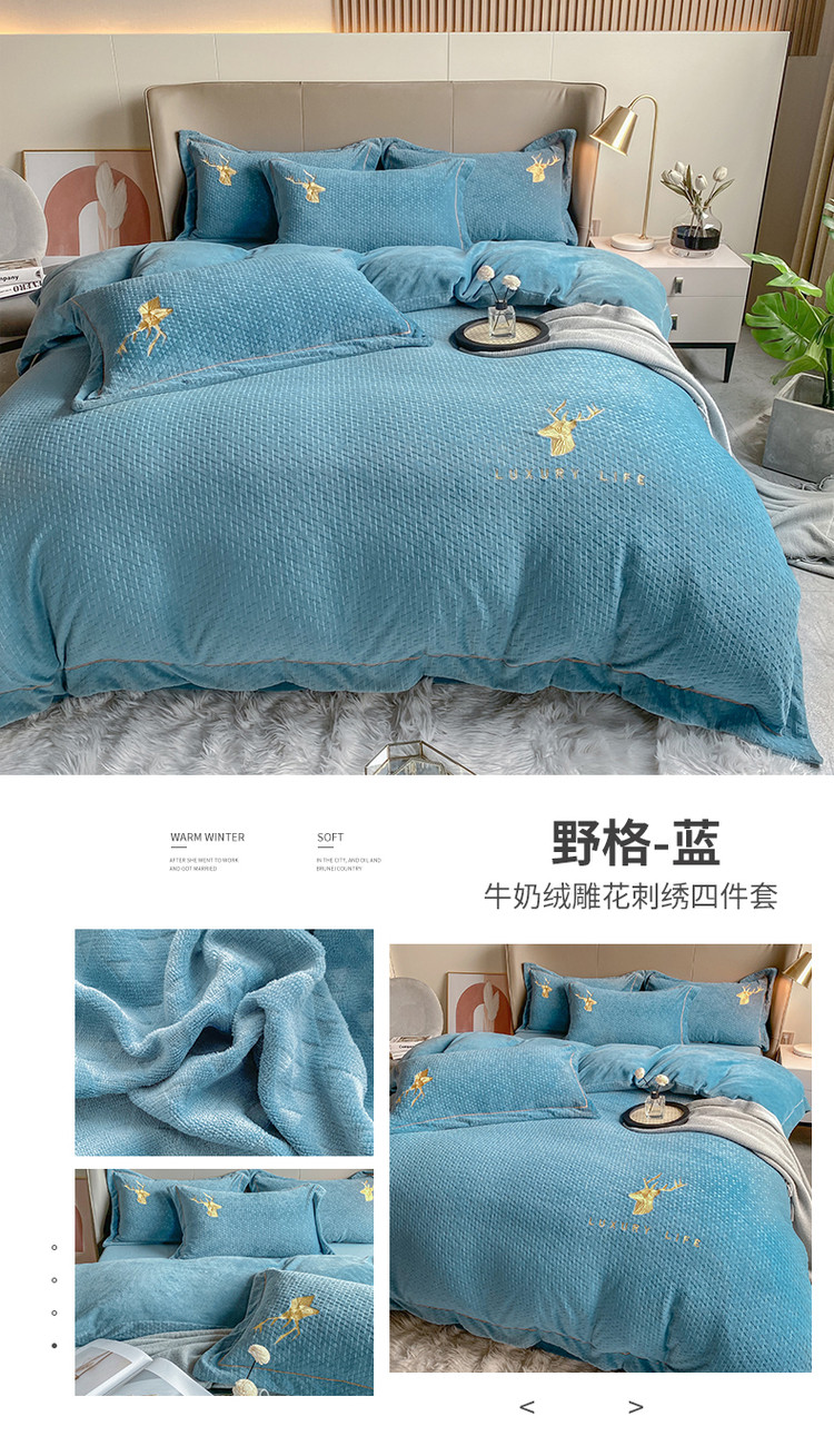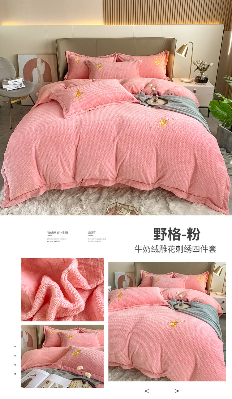(总)棉生活家纺 2021新款牛奶绒雕花刺绣四件套