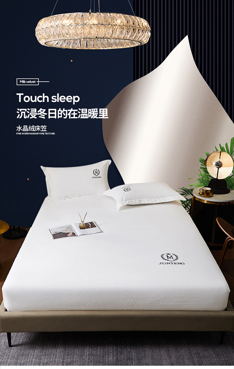 商品名称:骏腾 2022新款酒店轻奢刺绣水晶绒宝宝绒单床笠 白色
