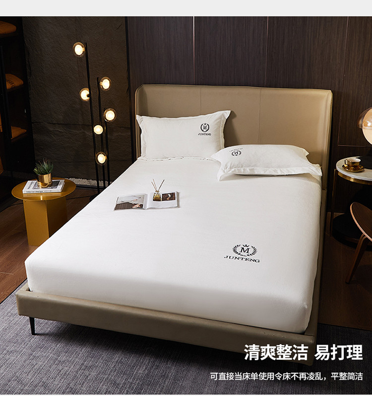 骏腾 2022新款酒店轻奢刺绣水晶绒宝宝绒单床笠 白色