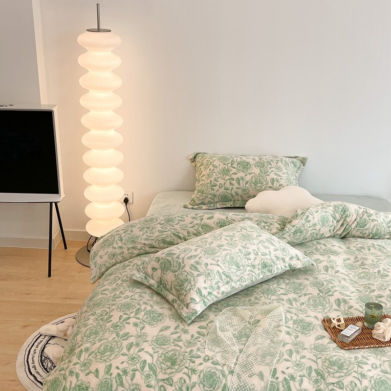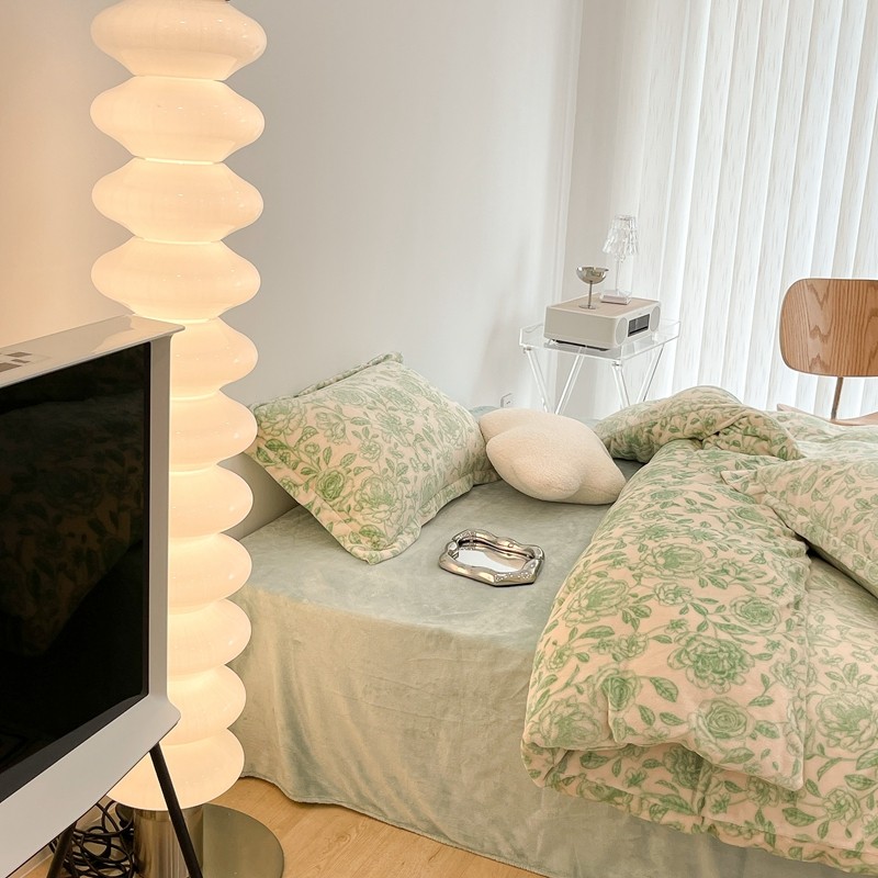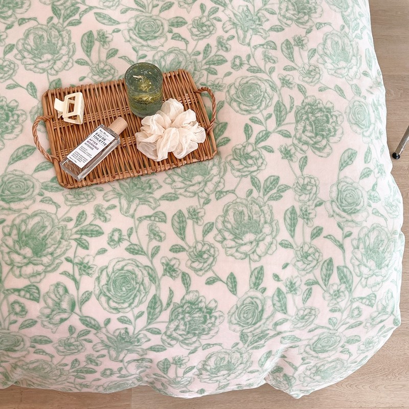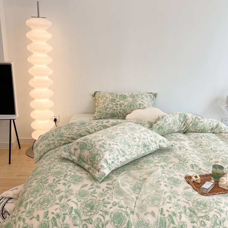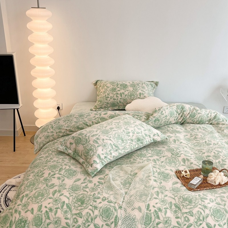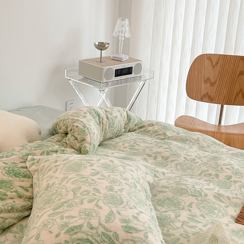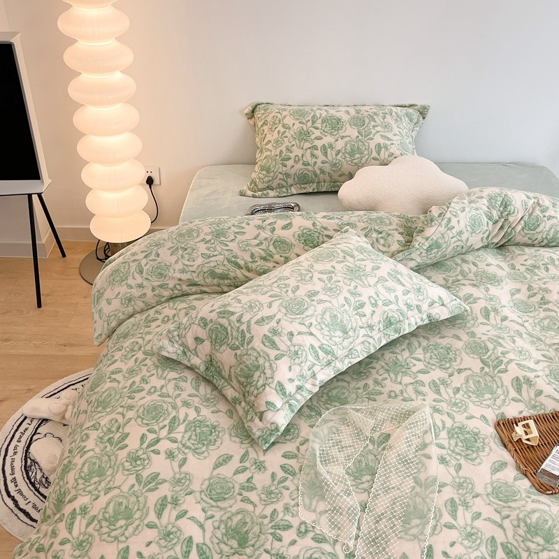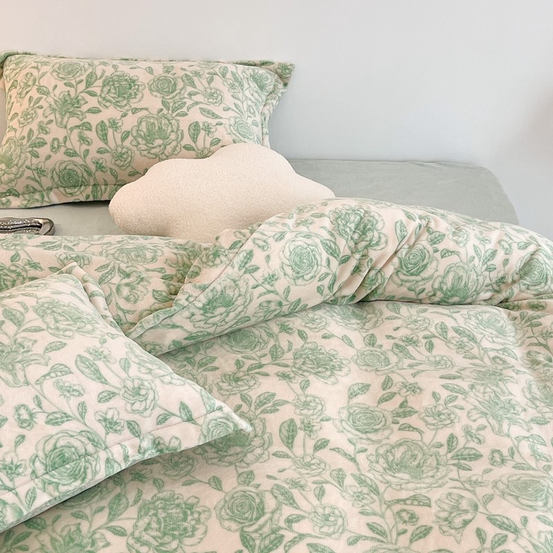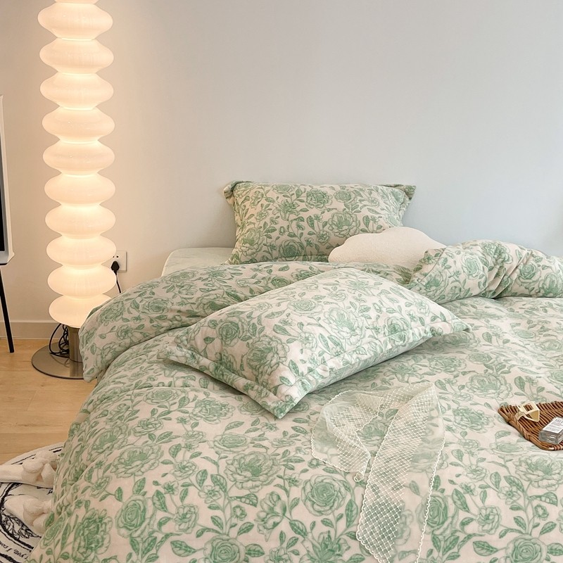 昔可家纺 2021新款牛奶绒四件套-二批 手绘山茶绿