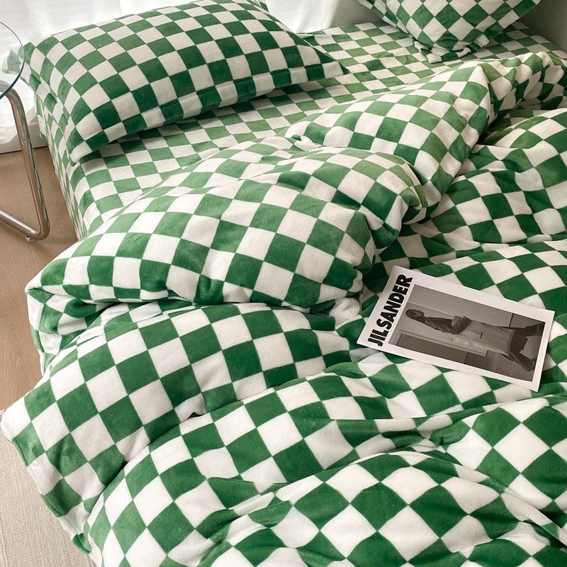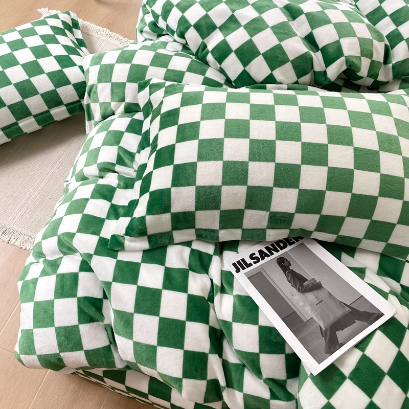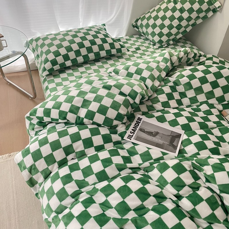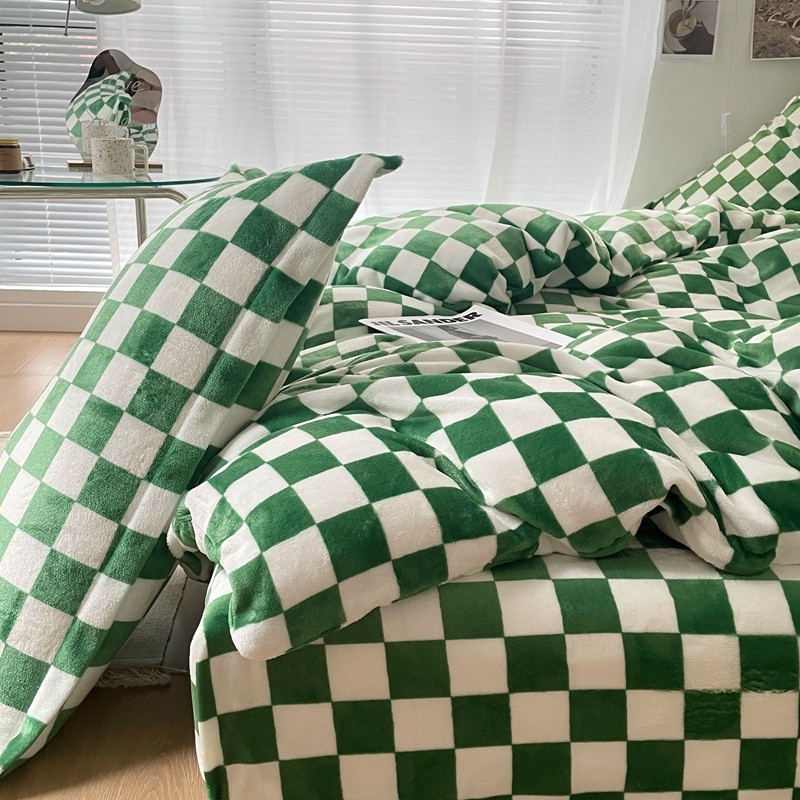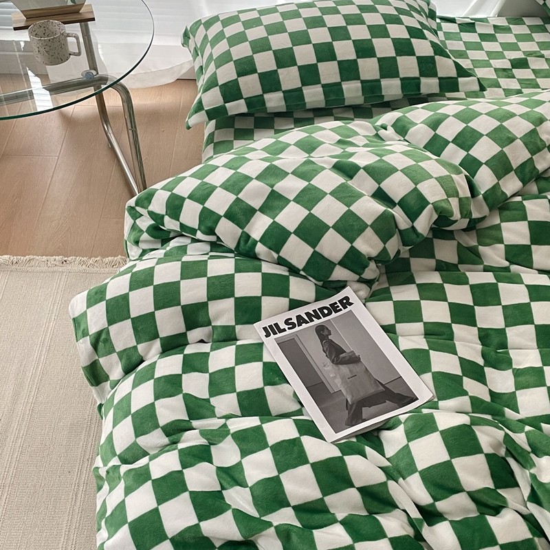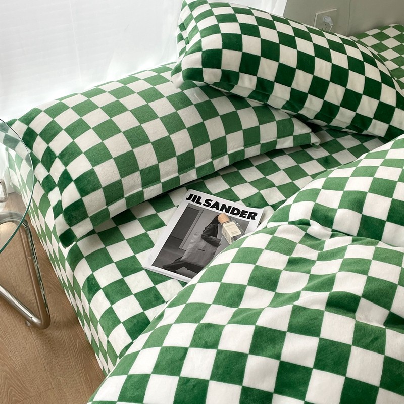 昔可家纺 2021新款牛奶绒棋盘格四件套 棋盘绿