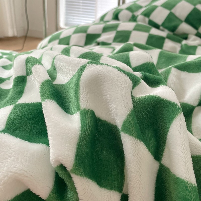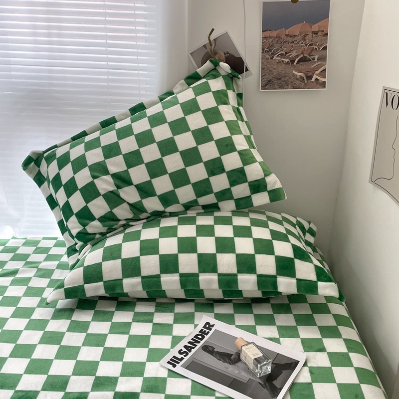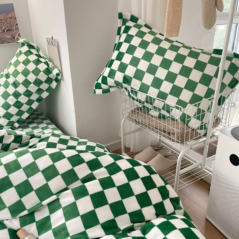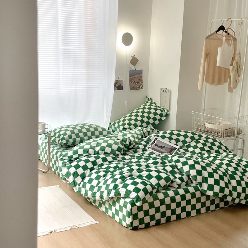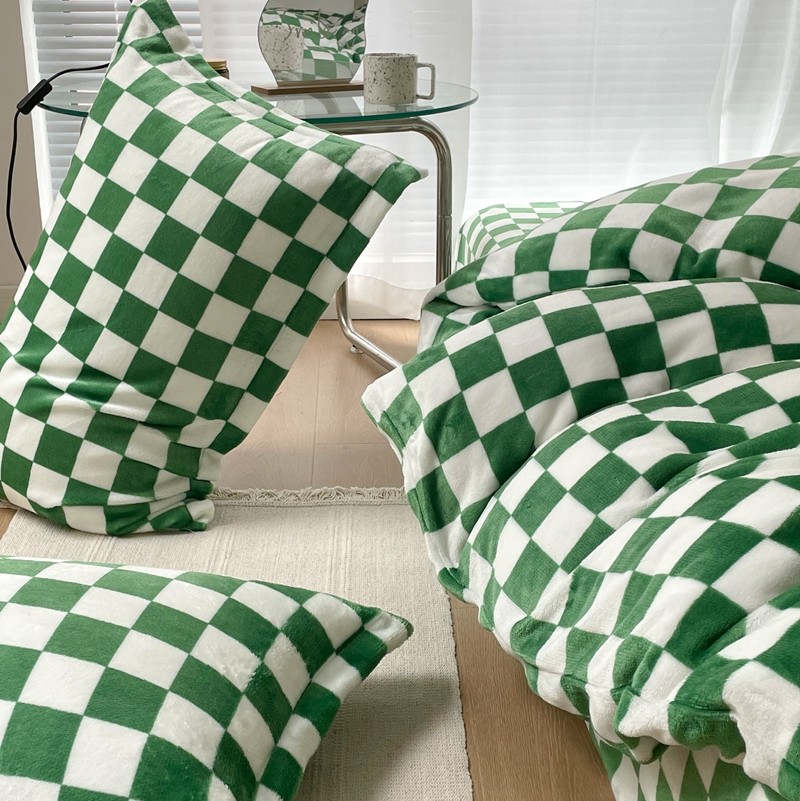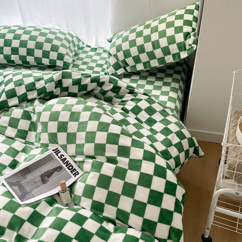昔可家纺 2021新款牛奶绒棋盘格四件套 棋盘绿