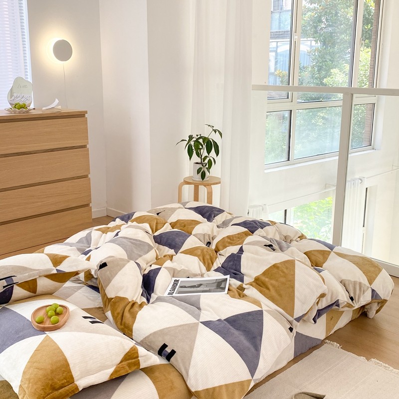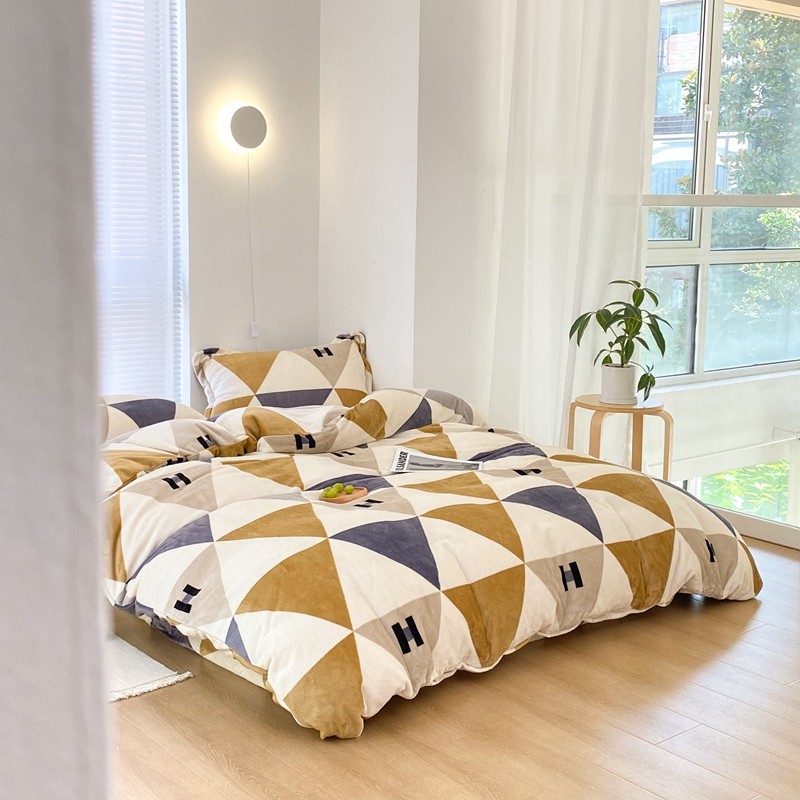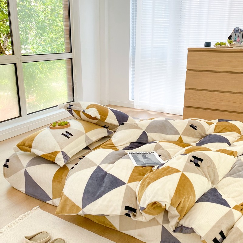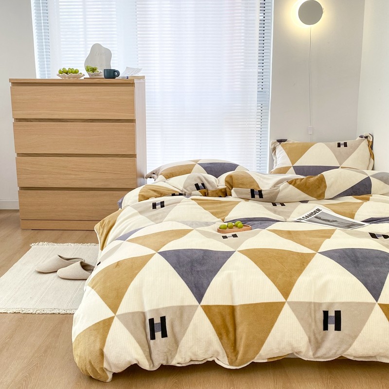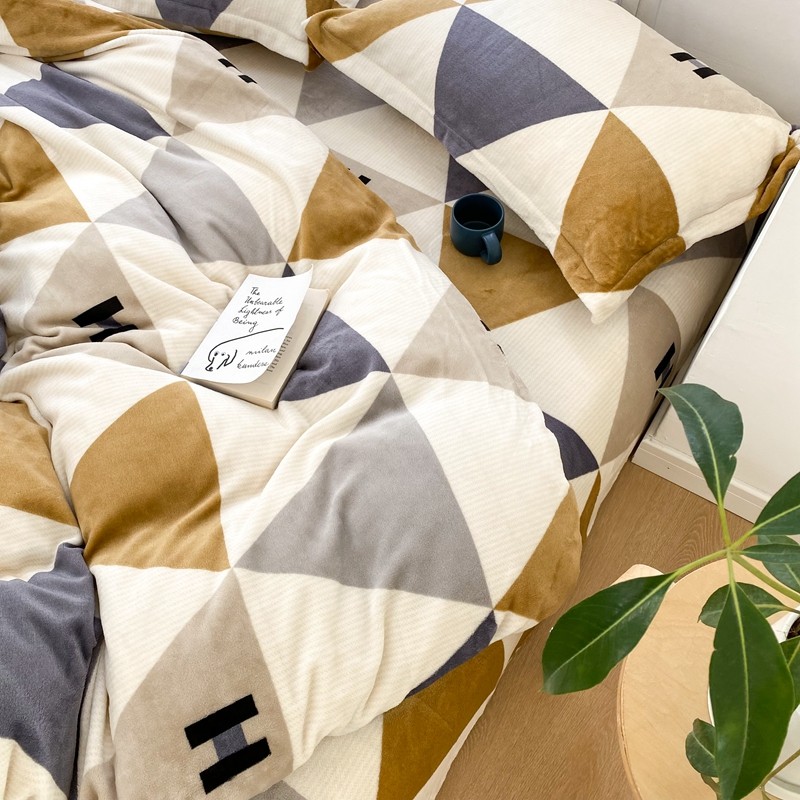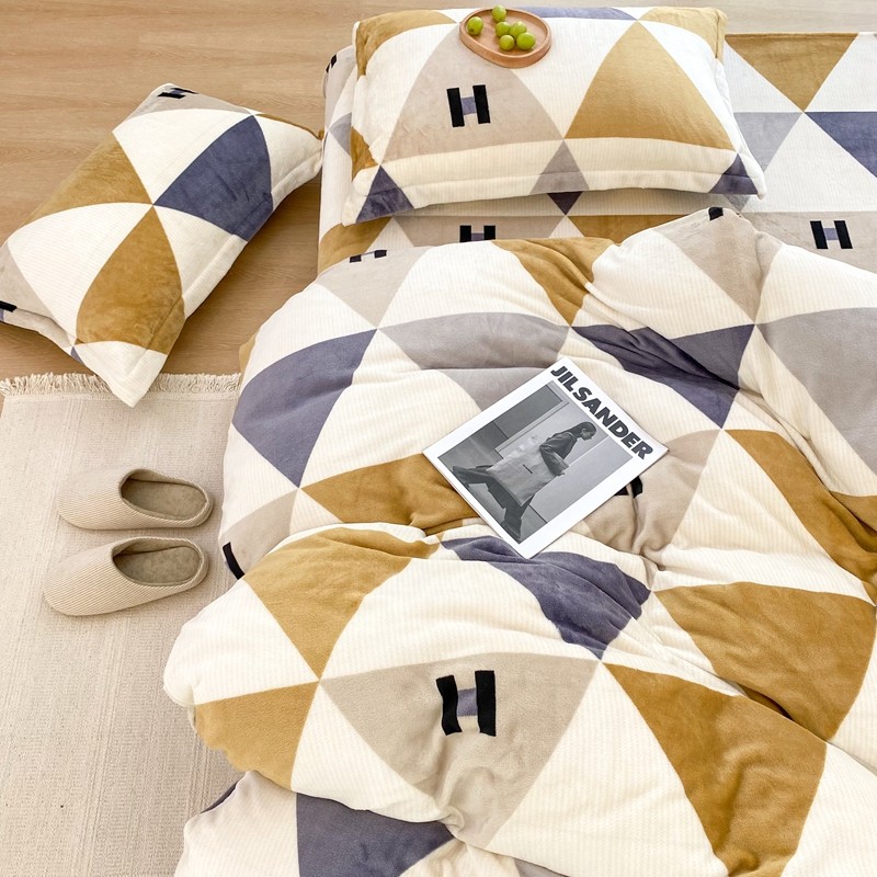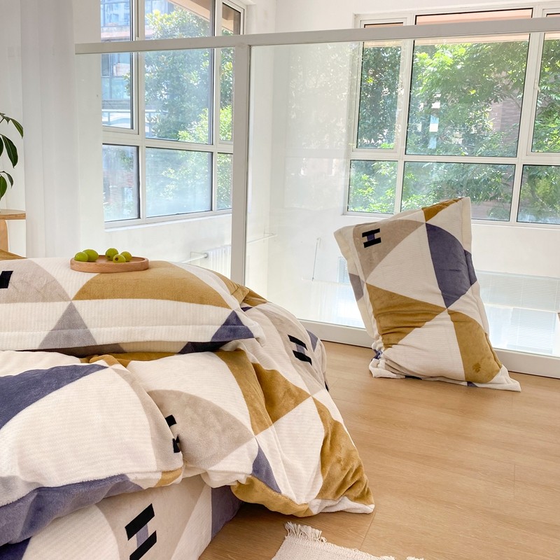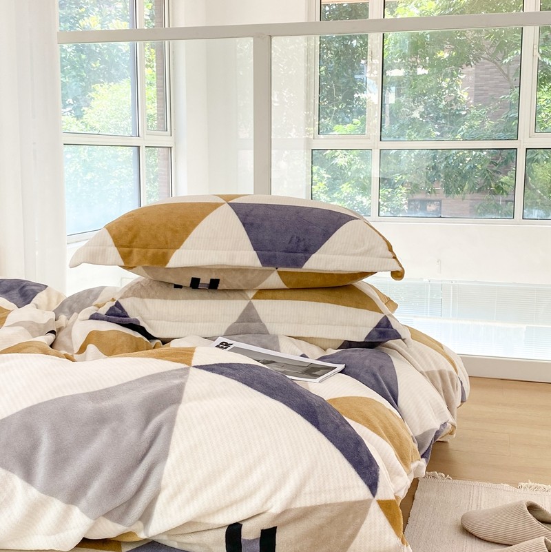 昔可家纺 2021新款牛奶绒四件套第二组图 三角H