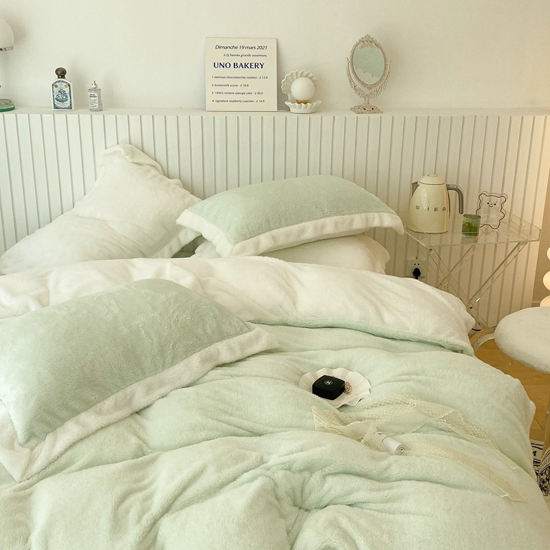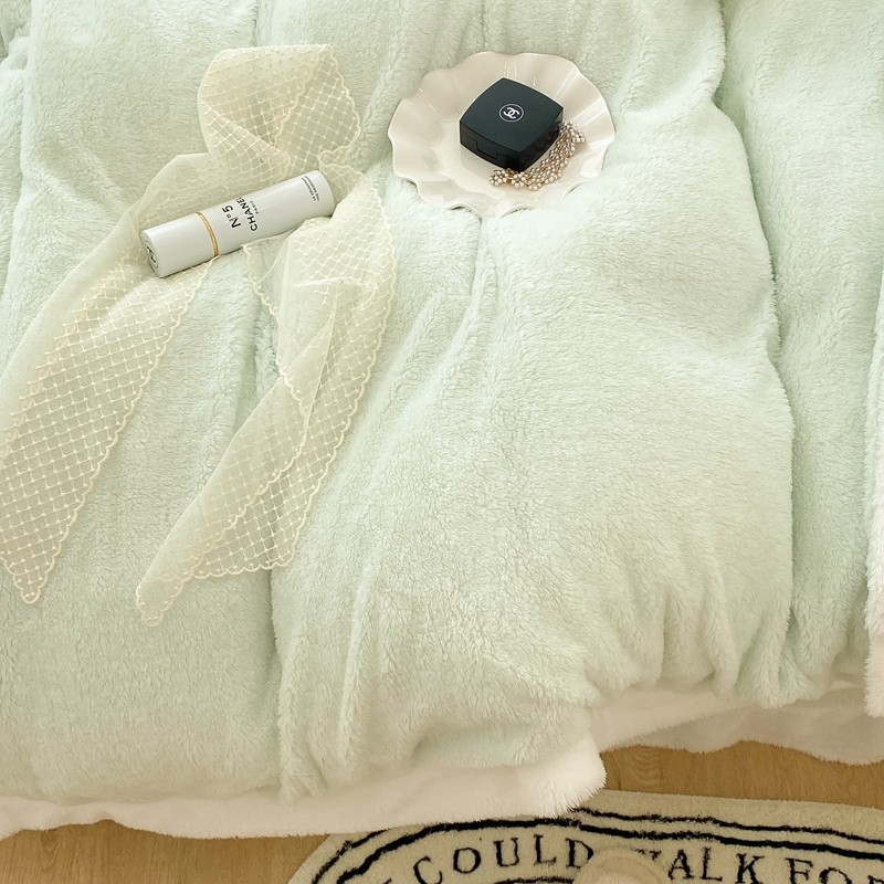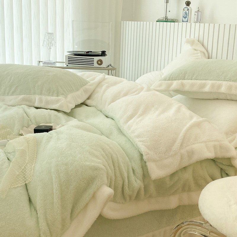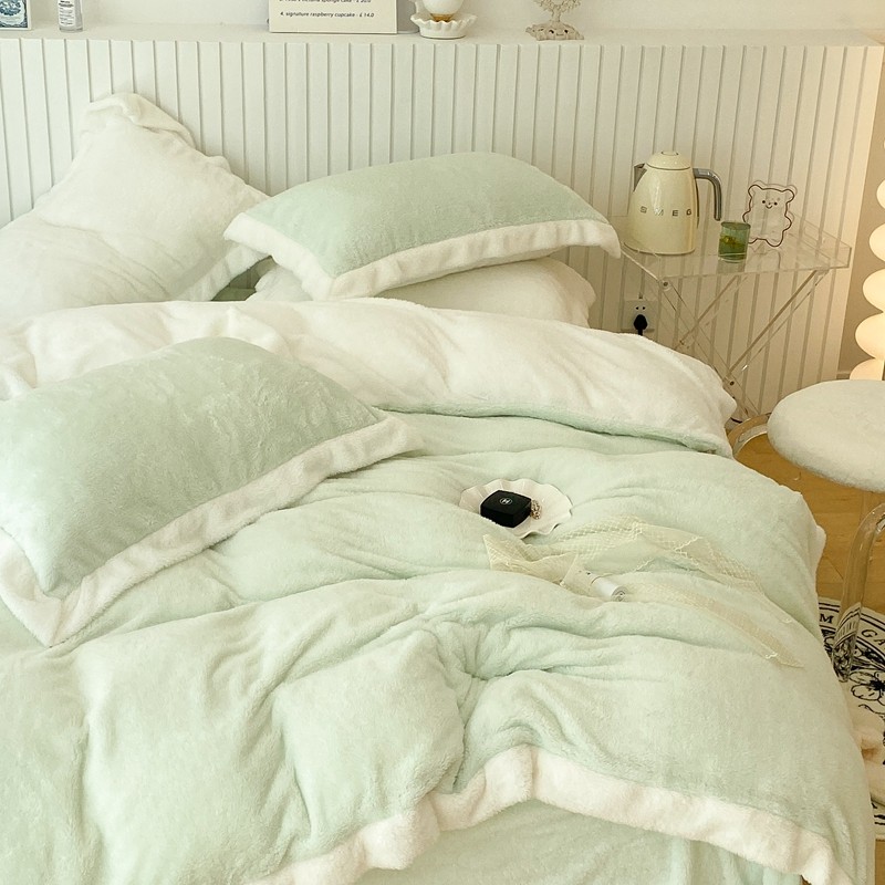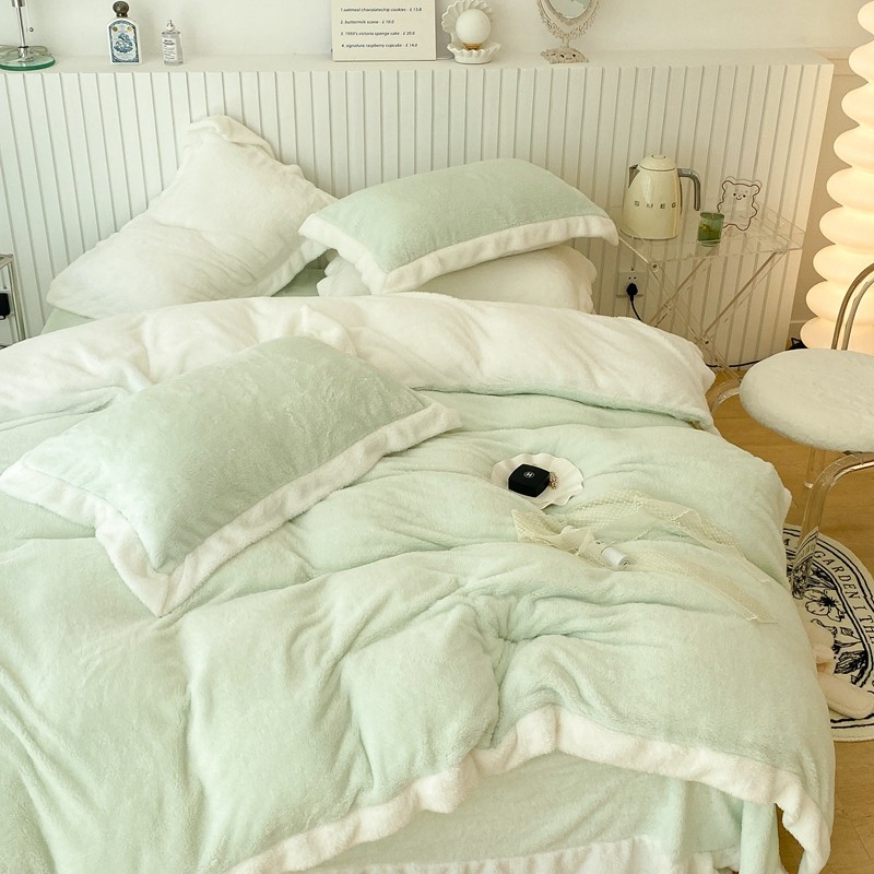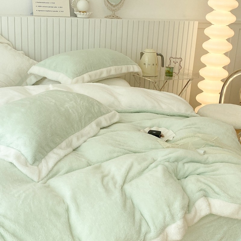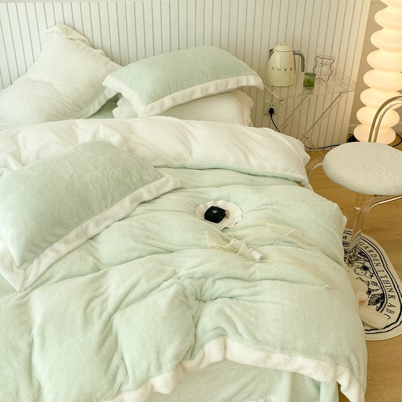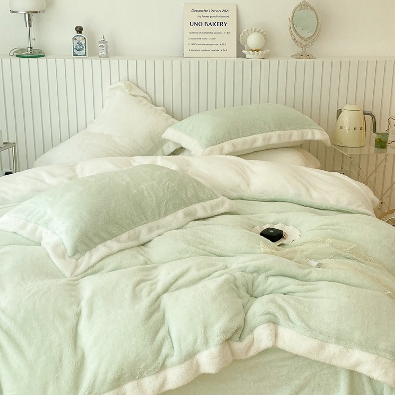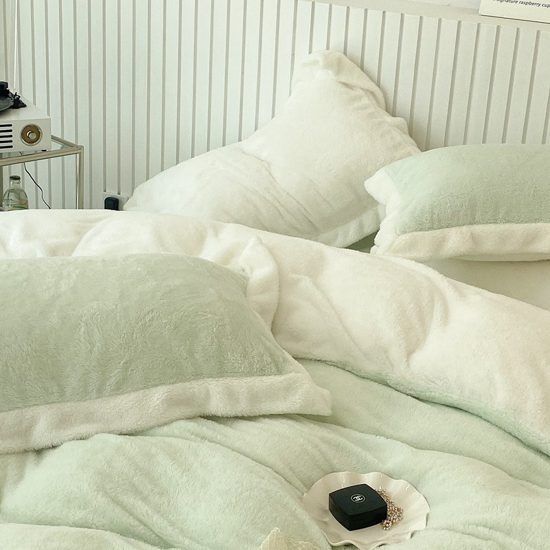昔可家纺 2021新款泰迪绒马卡龙色四件套 牛油果绿