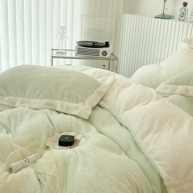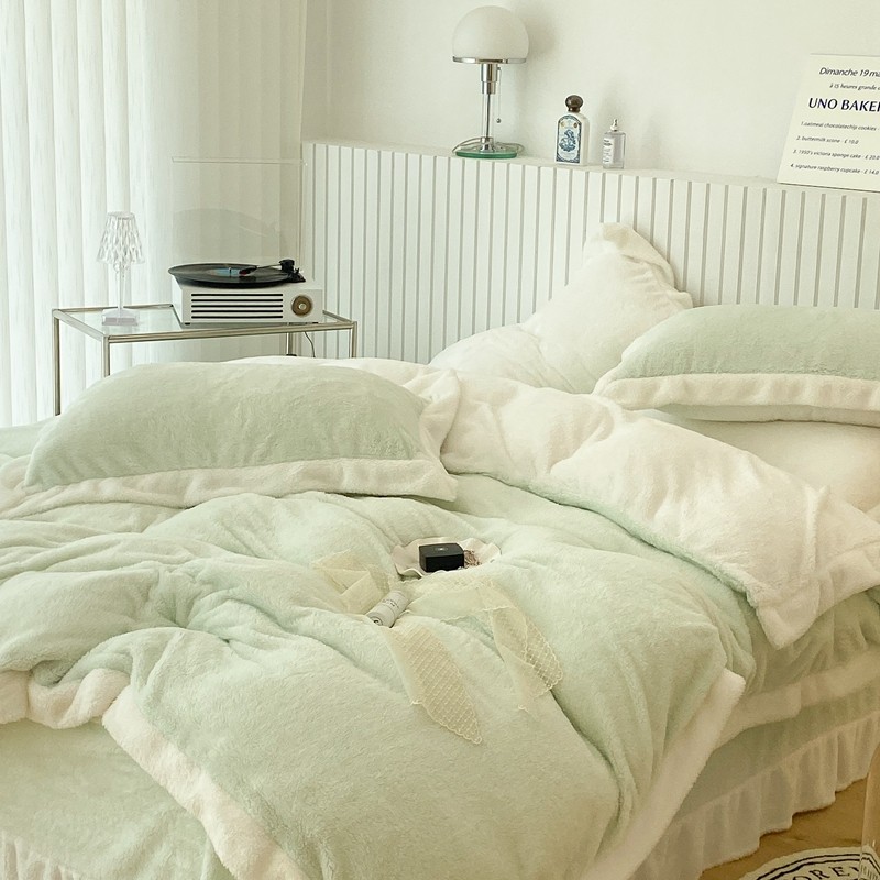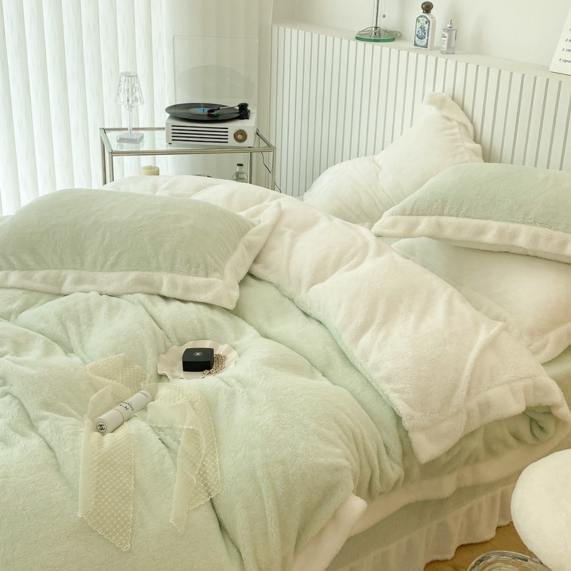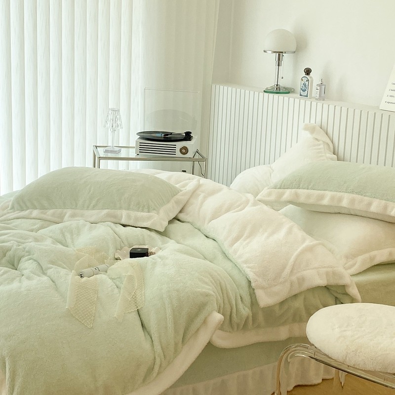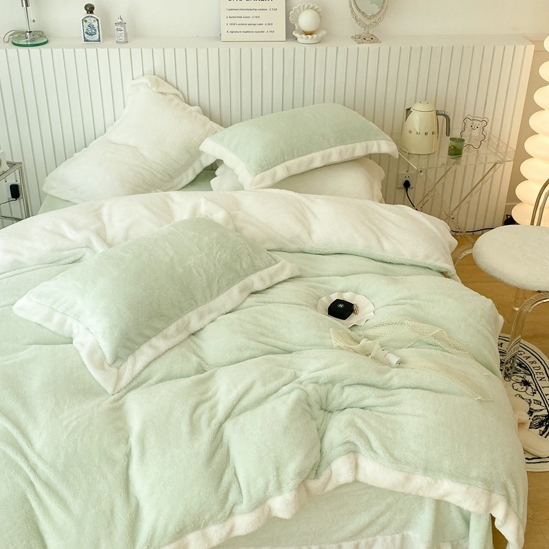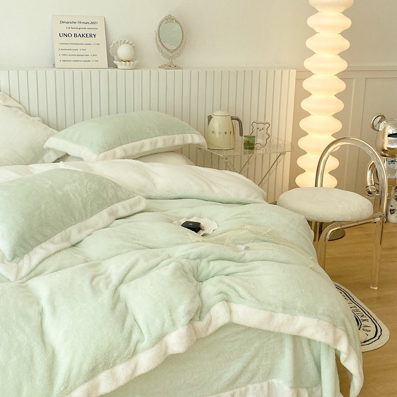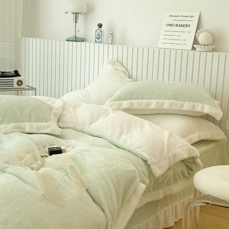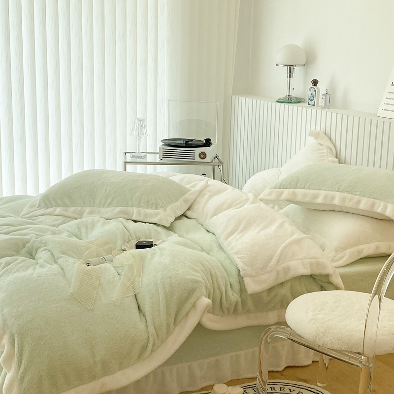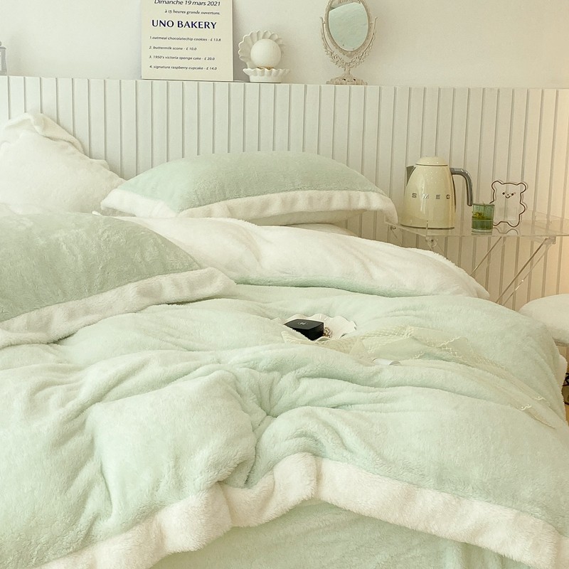 昔可家纺 2021新款泰迪绒马卡龙色四件套 牛油果绿