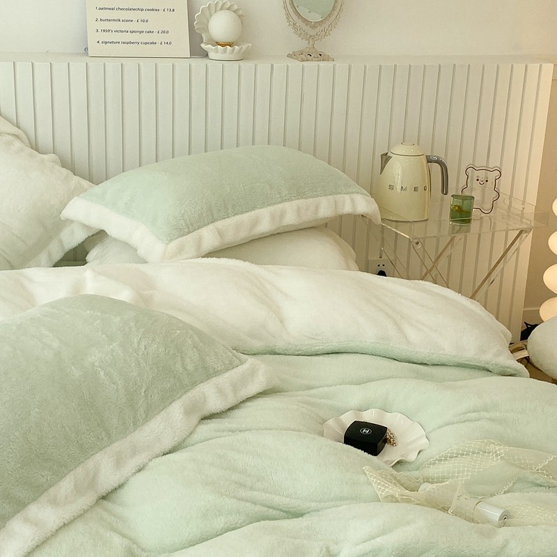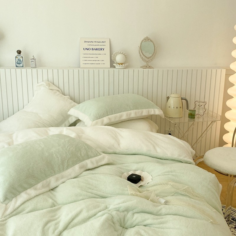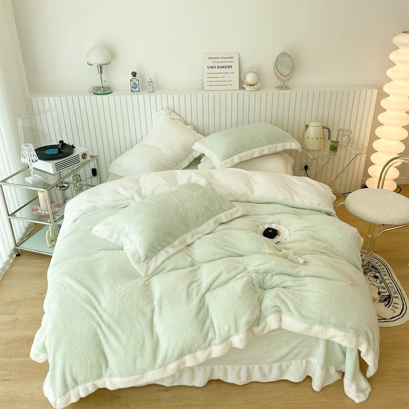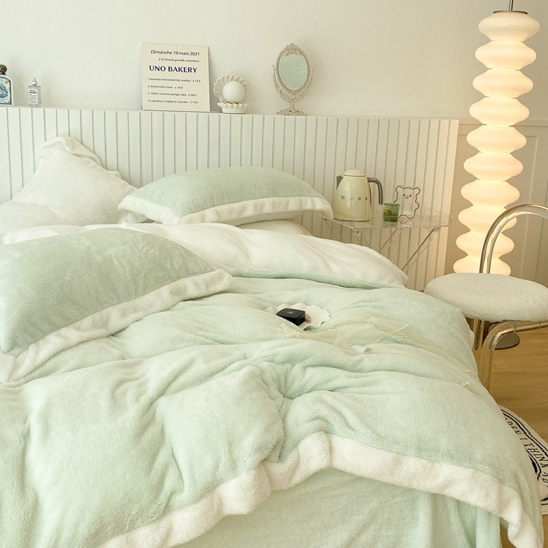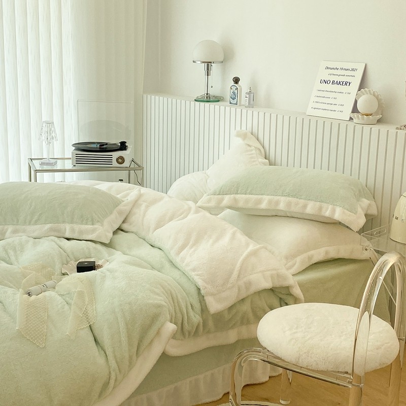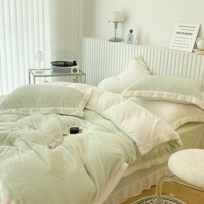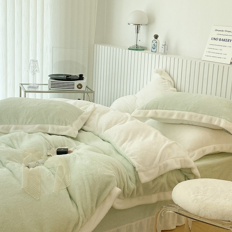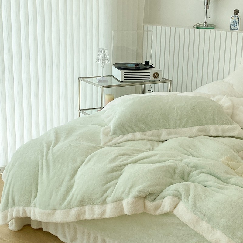 昔可家纺 2021新款泰迪绒马卡龙色四件套 牛油果绿