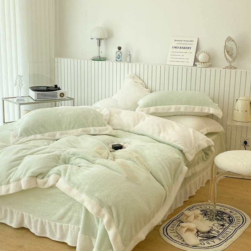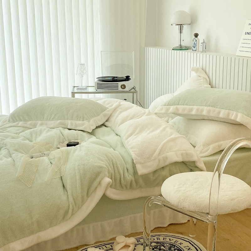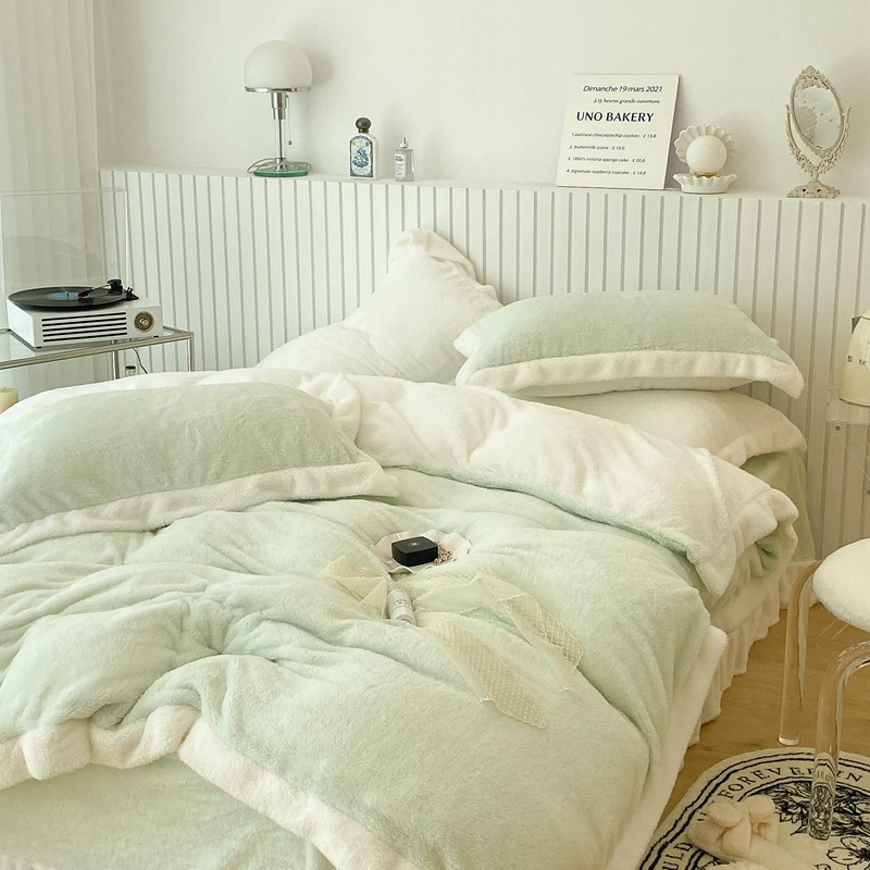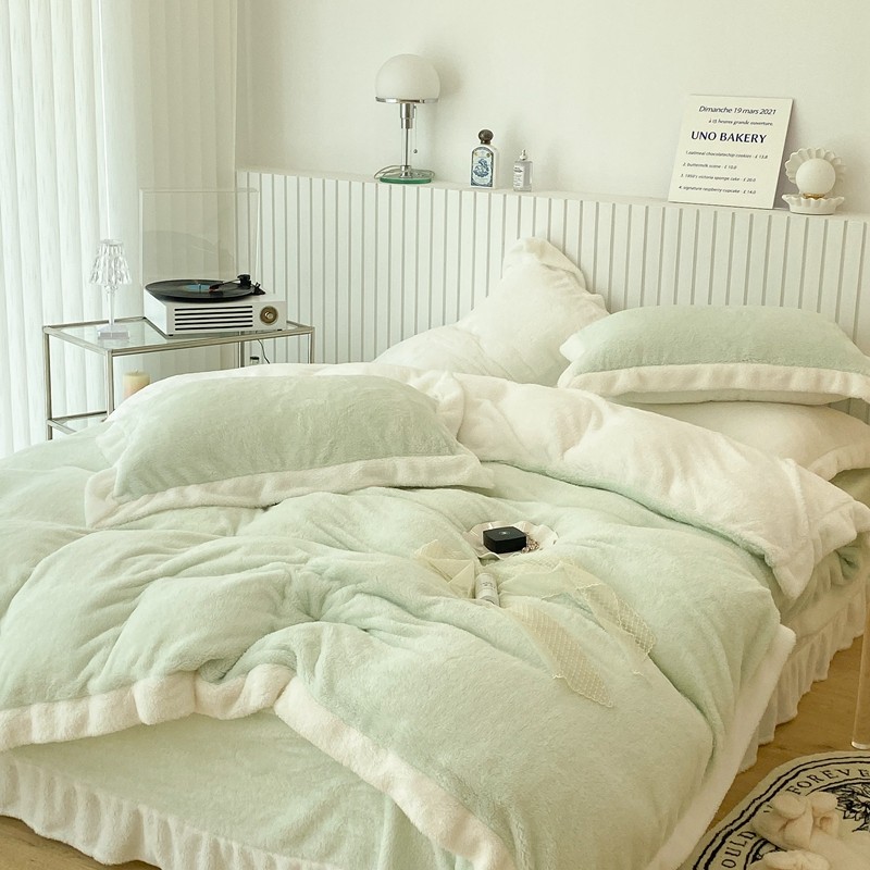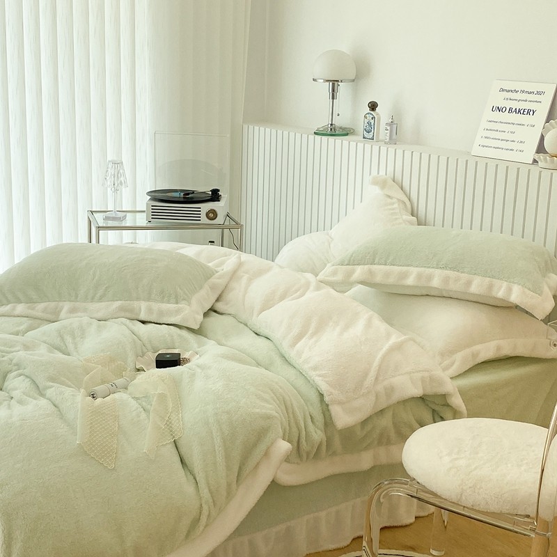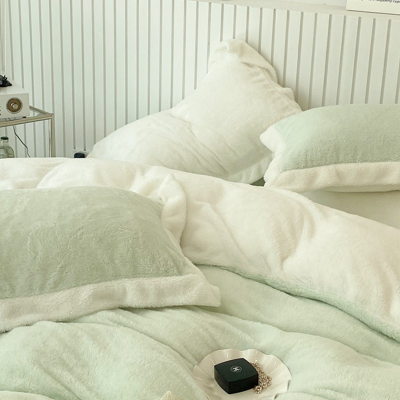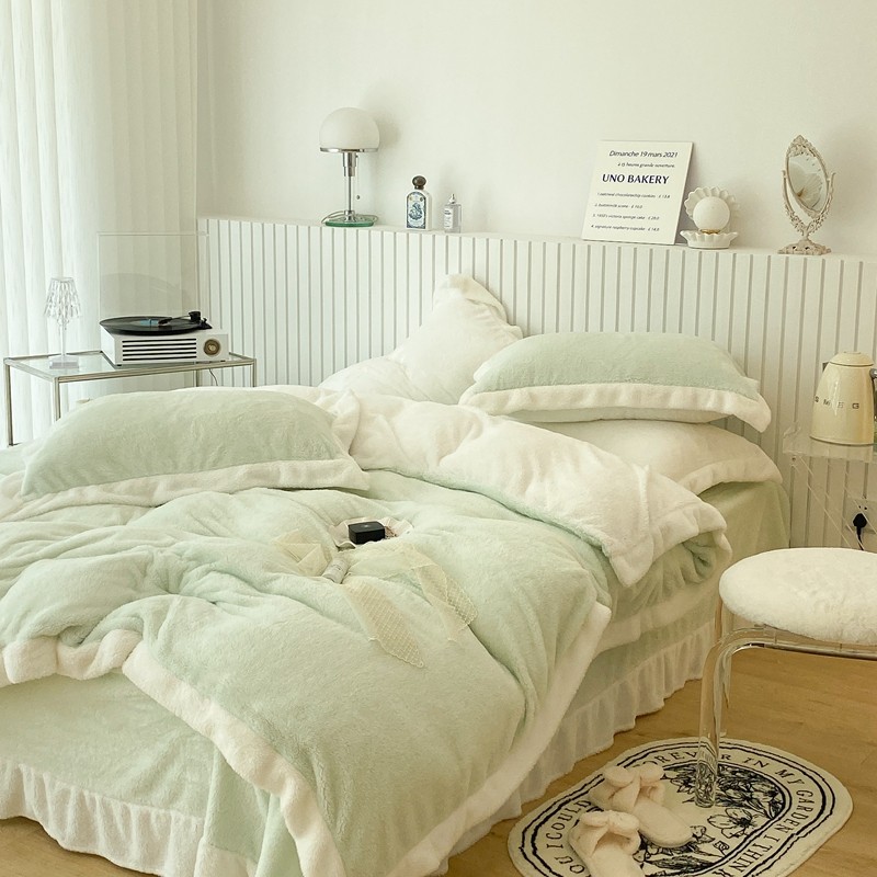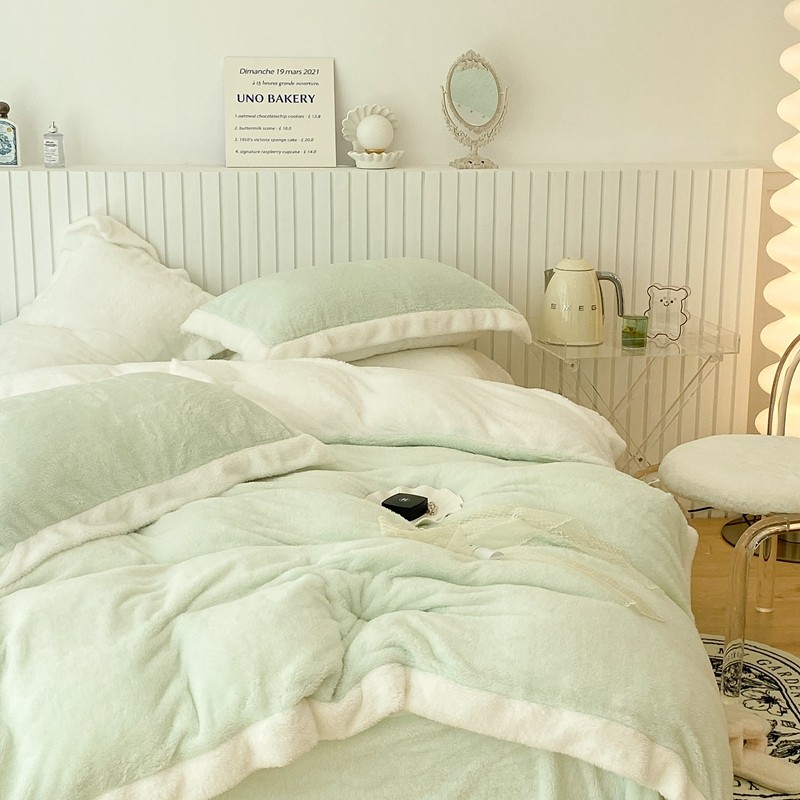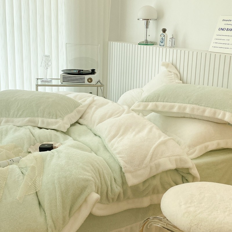 昔可家纺 2021新款泰迪绒马卡龙色四件套 牛油果绿