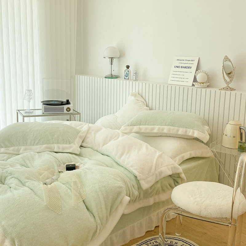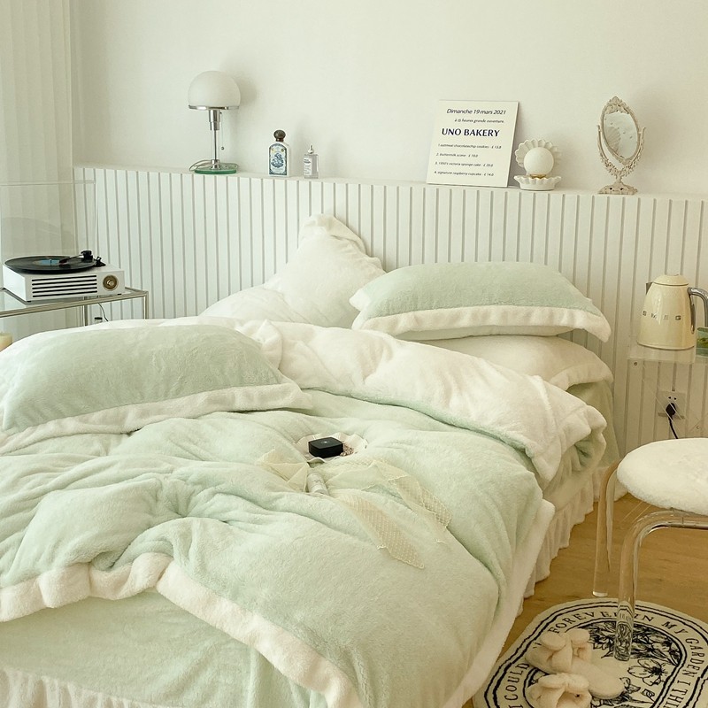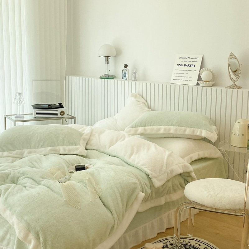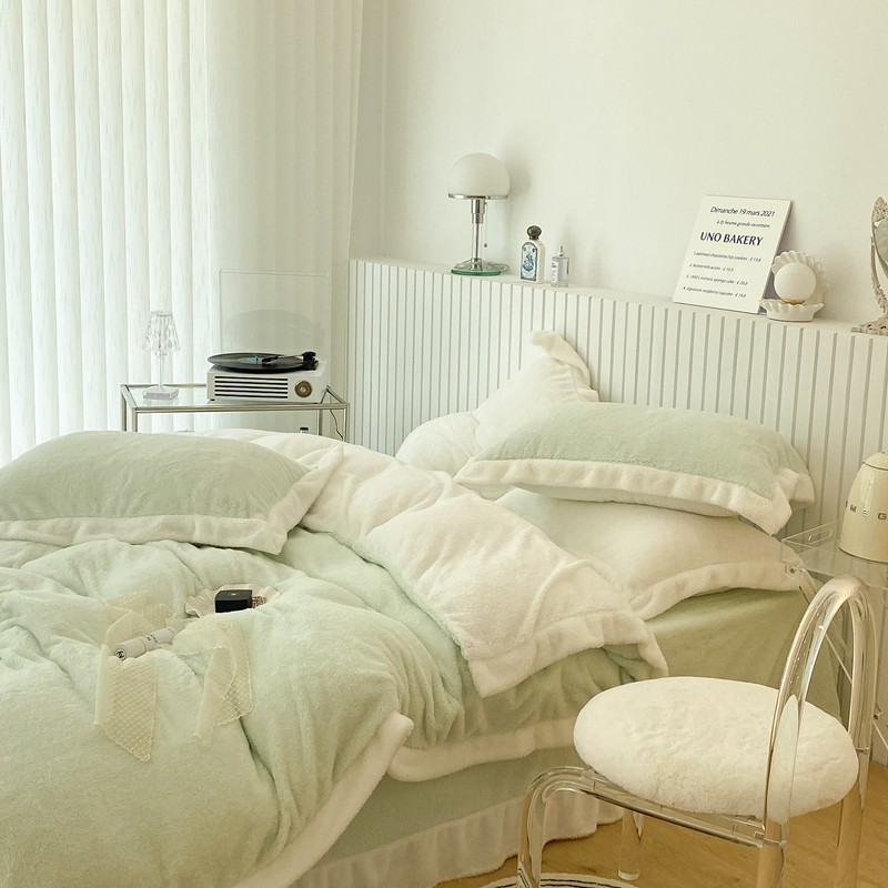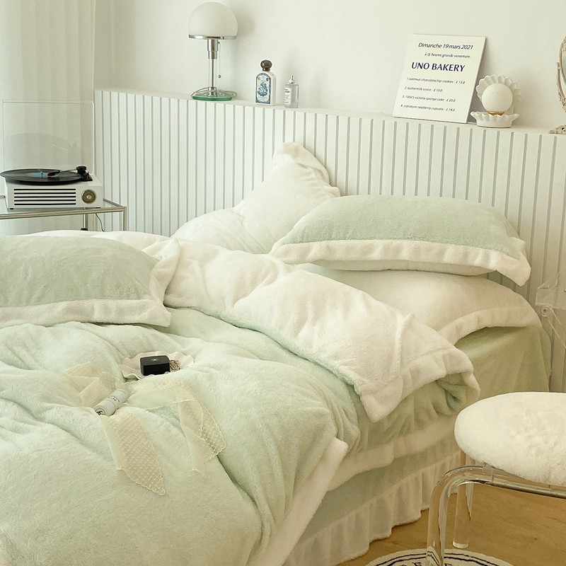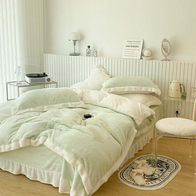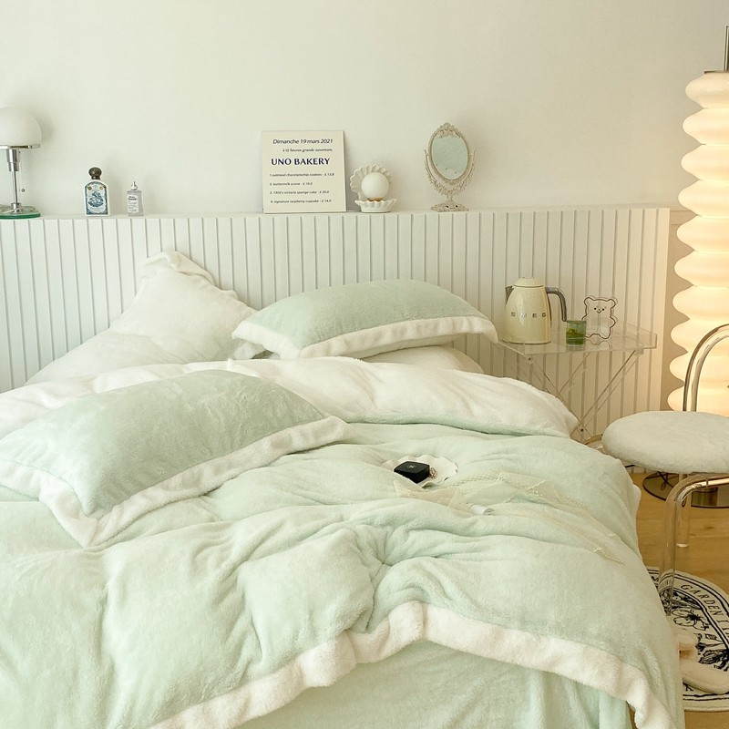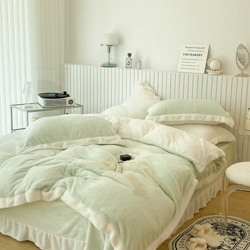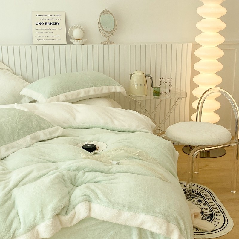 昔可家纺 2021新款泰迪绒马卡龙色四件套 牛油果绿