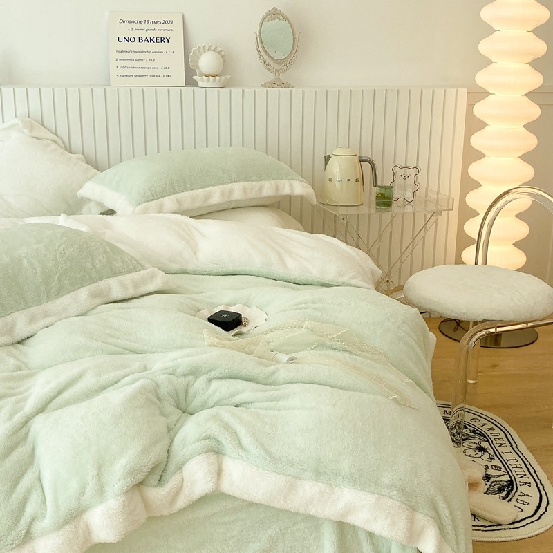 商品名称:昔可家纺 2021新款泰迪绒马卡龙色四件套 牛油果绿