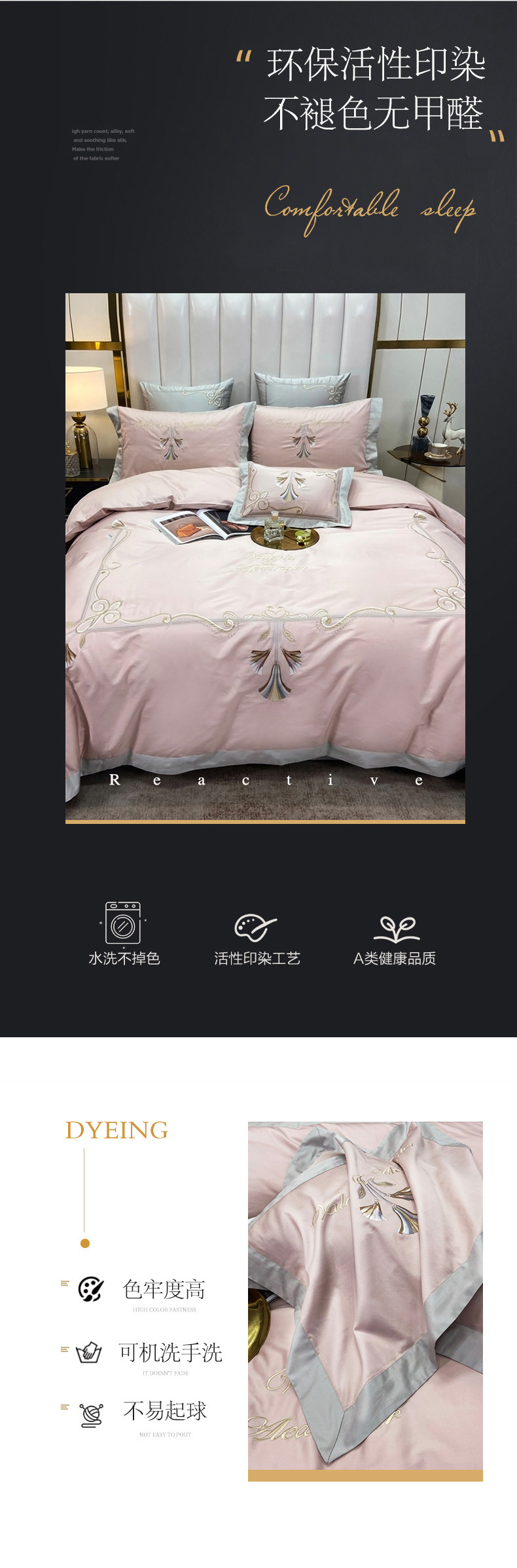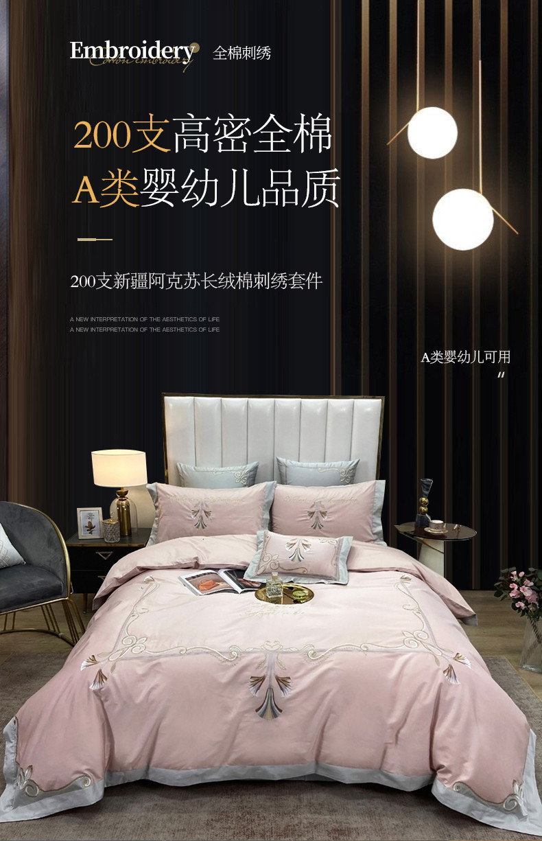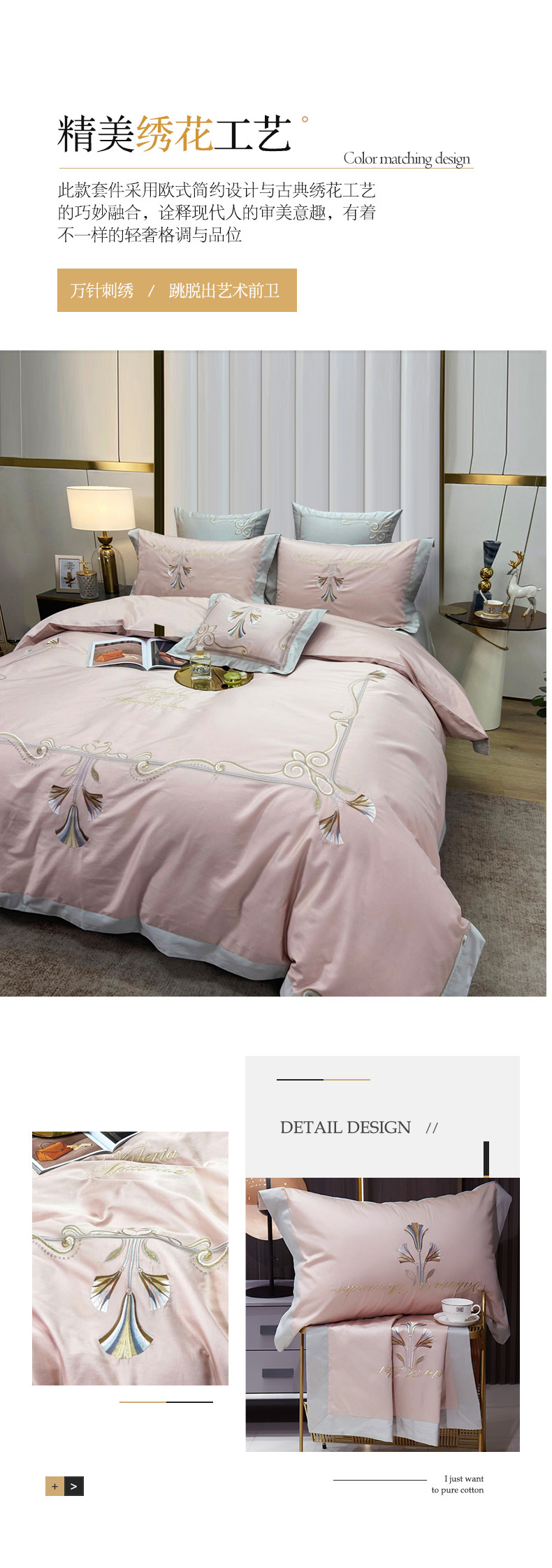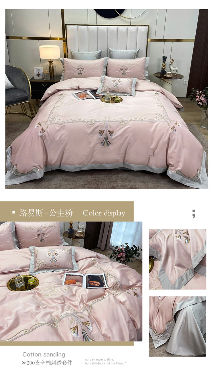 商品名称:家居1号2024新款新疆长绒棉刺绣四件套路易斯 路易斯-公主粉
